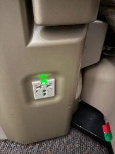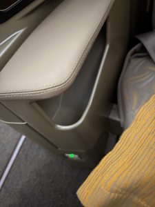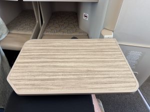 On top of the overhead reading lights, Asiana Airlines’ A330-300 Business Class seats are also fitted with a reading light between the two seats, which I find redundant. The brightness of these reading lights can be adjusted, but to turn them off, we had to cycle through all the lighting brightness settings. The seat table is stowed in the armrest and folded in half when in storage. It is quite large and sturdy when fully deployed, allowing passengers to work on their laptops. Apart from the seat table, Asiana Airlines designed two cocktail tables into their A330-300 Business Class seats. One uses the space on top of the armrests between the seats, and another is a flip-out small table located in the centre console between the seats. As an older aircraft, Asiana Airlines’ A330-300 Business Class seats did not come fitted with any USB charging ports, so we would have to rely solely on the international power outlets in the centre console to charge up our lifestyle devices.