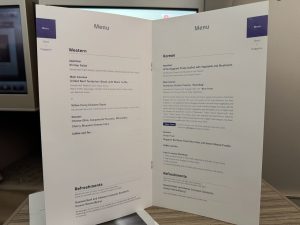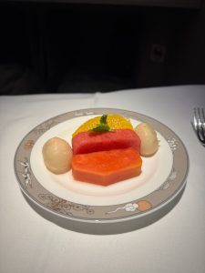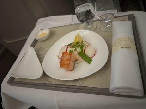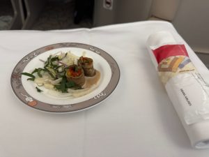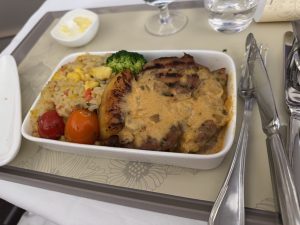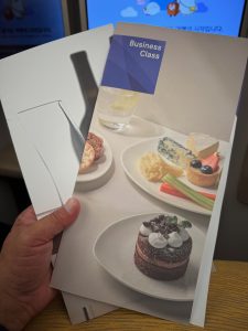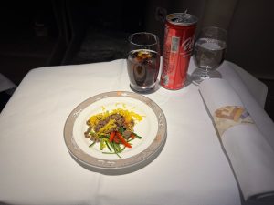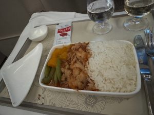 The only amenity available for this short flight is a pair of slippers and a couple of wet wipes, placed on our seats. Pillows and blankets are only available on request. As with my previous flight, Asiana Airlines did not serve welcome drinks to their Business Class passengers during boarding. However, the service onboard this flight is much better than my experience on the previous flight we just got off. The cabin crew were much friendlier and more willing to assist passengers. Apart from the standard greeting at the door, distributing the menu and taking orders for our choice, the cabin crew was observed to go above and beyond the standard procedures. They were seen ready to guide passengers to their seats and render assistance to passengers with stowing their luggage in the overhead bin. The cabin crew were seen working as a team, like clockwork, elevating each other’s work so that passengers could receive the service befitting of Business Class. I was pleasantly surprised when the cabin manager went around the cabin introducing herself to every passenger and thanking us for flying with Asiana Airlines. This is something we no longer see today, even among the highly acclaimed so-called 5-star airlines. The cabin crew were observed to be diligent and frequently patrolled the cabin, checking if passengers required any assistance. They were also efficient when it came to distributing meals and ensuring they had sufficient time to finish.