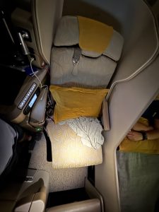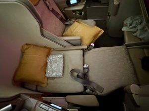 Asiana Airlines A330-300 Business class seat fully reclined, though not flatbed, but still very comfortable
