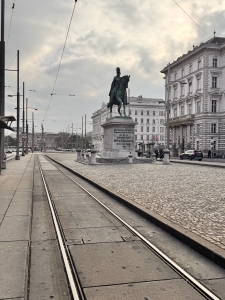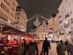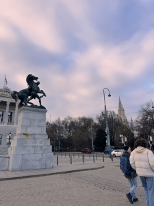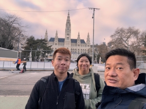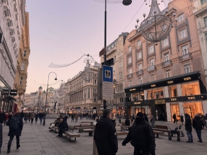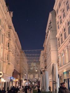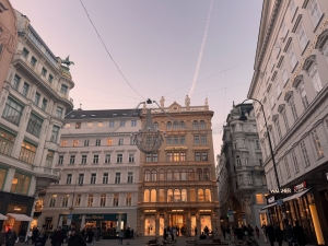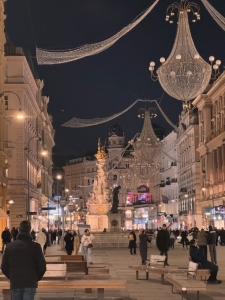 After the tour, we had the option of visiting St Charle’s church and then Naschmarkt. However, based on what we were told in Innsbruck, shops in Austria usually close on Sundays and close early on Saturdays. As we did not want to miss out on the shopping in Vienna, we swapped things around and went shopping in Graben near Stephansplatz. From Parliament, we took a bus to Graben. As we walked towards the bus stop, we walked by the Vienna City Hall, next to the Parliament Austria. The neo-gothic building houses the office of the Mayor of Vienna and the city council’s chambers. The City Hall also conducts a complimentary tour of the building on weekdays, and the tickets are distributed at 10 am on site (we cannot book through their webpage). According to my correspondence with the City Hall, I was told that all tickets are usually distributed by 10.30 am. We only arrived in Vienna at 11 pm, so we missed the chance to go for the tour. There is a square in front of the City Hall, where Christmas markets are usually held. However, the Rathuasplatz was out of bounds during our visit. We can only take pictures outside the fenced-up area with the City Hall in the distance.