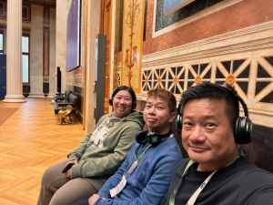Our final stop at the Vienna State Opera was the Great Hall, the auditorium of the building. The Great Hall, decked with red velvets on the walls, looked grand and elegant. We were led to the front row of the horseshoe-shaped auditorium, where our guide told us about the different seating options and some standing rooms on the uppermost floor of the Great Hall. From where we were seated, we could see the orchestra pit lowered before our eyes (not sure if we were there at the right time or if it was raised and lowered as part of the tour). Our guide also told us that there are different performances daily, so the crew had to constantly change the setting of the stage daily. Our guided tour of the Vienna State Opera ended after the Great Hall, where we were led back to the foyer. Having gone through a guided tour of Parliament Austria, we expected the State Opera tour to be informative and insightful. However, we thought the tour was not as enjoyable. Due to the many tours taking place at the same time and the soft voice of our guide, we missed out on the narrations of our guide most of the time. While the tour of Parliament Austria issued each tour member a wireless headset to hear the guide better, the Vienna State Opera did not.