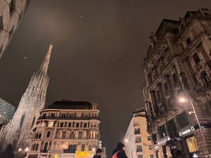 We got our tickets from the ticketing counter at the entrance of the lift to the viewing platform on the north tower. A short lift ride later, we were transported to the top of the north tower. The platform is not very large; we were able to walk from one end to the other in under 3 minutes. The first thing that caught our eyes from here was the two eagle mosaics on the cathedral’s roof, symbolising the Habsburg empire. We could see Vienna from a vantage point, from the Stephansplatz below to the Vienna Giant Ferris Wheel afar. The view up here is indeed breathtaking. A giant bell is installed at the top of the north tower. My friend and I attempted to wait for the half-hour mark to hear the bell strike. However, it did not happen. As the winter breeze was cold and we had seen what we had come here for, we headed back down and returned to our hotel to pack for our departure tomorrow.