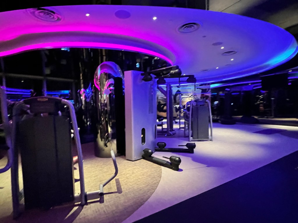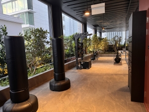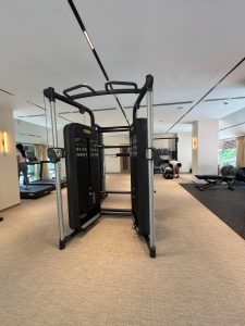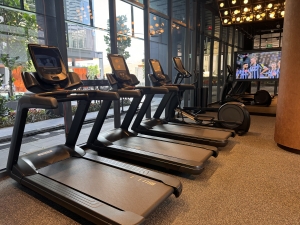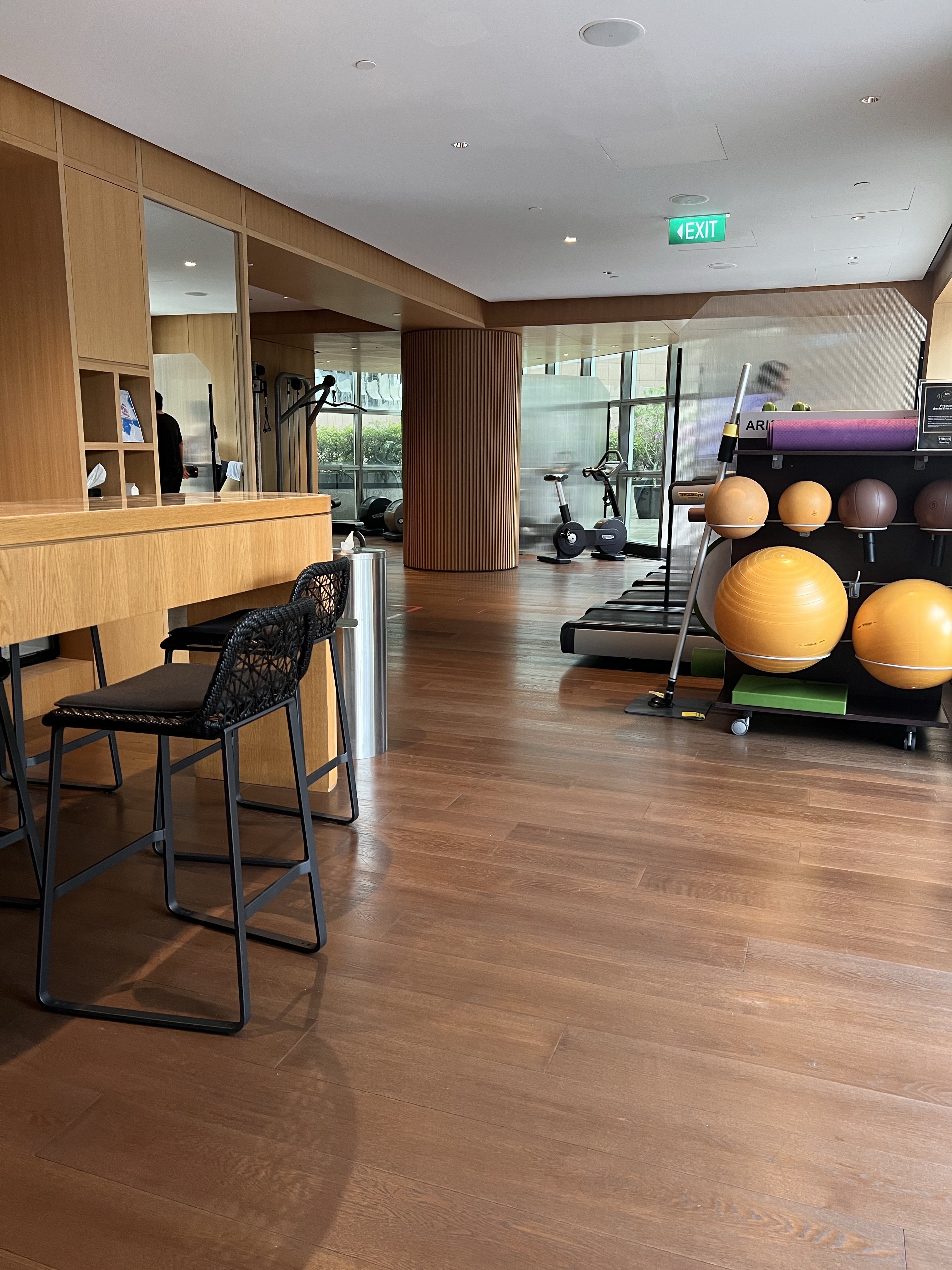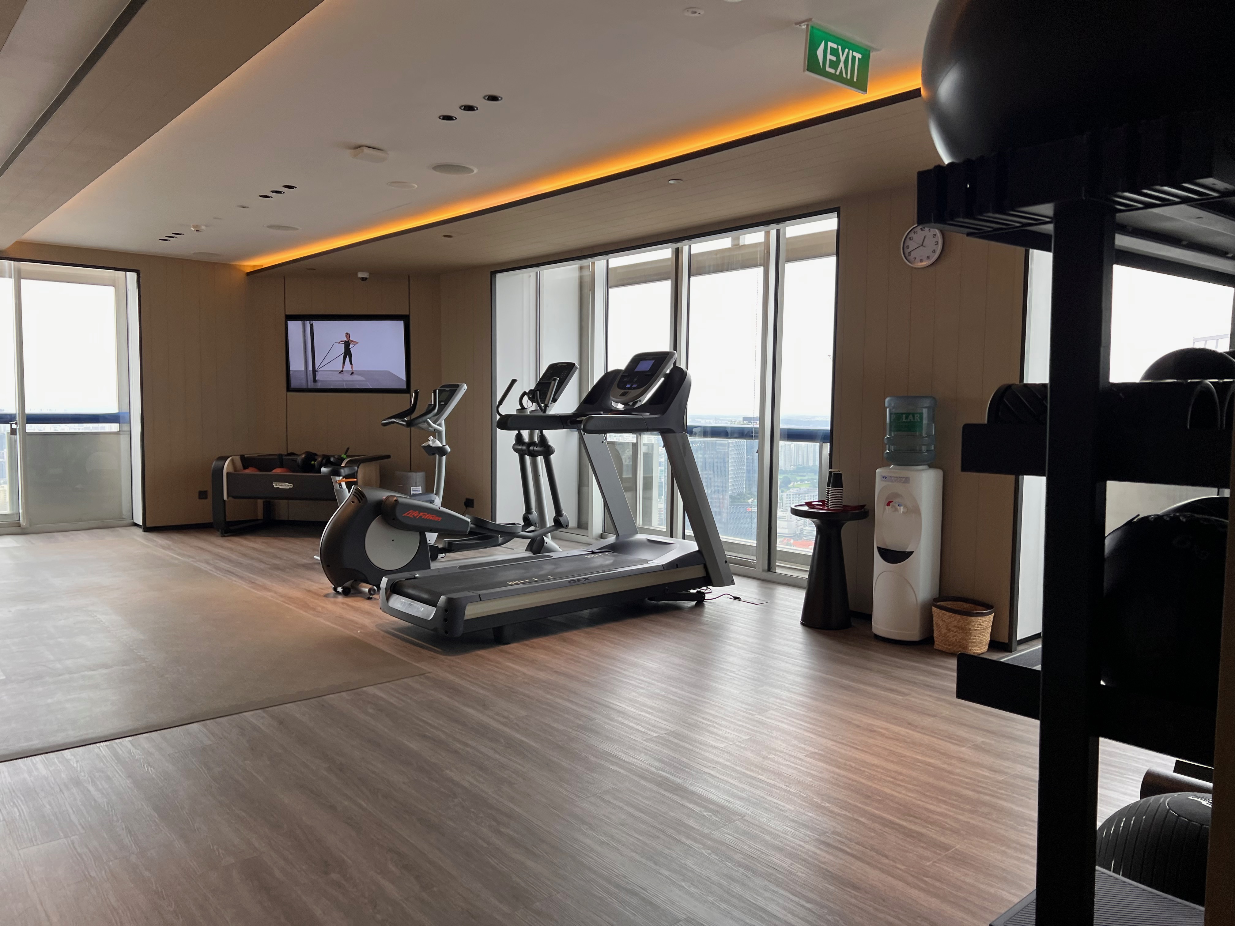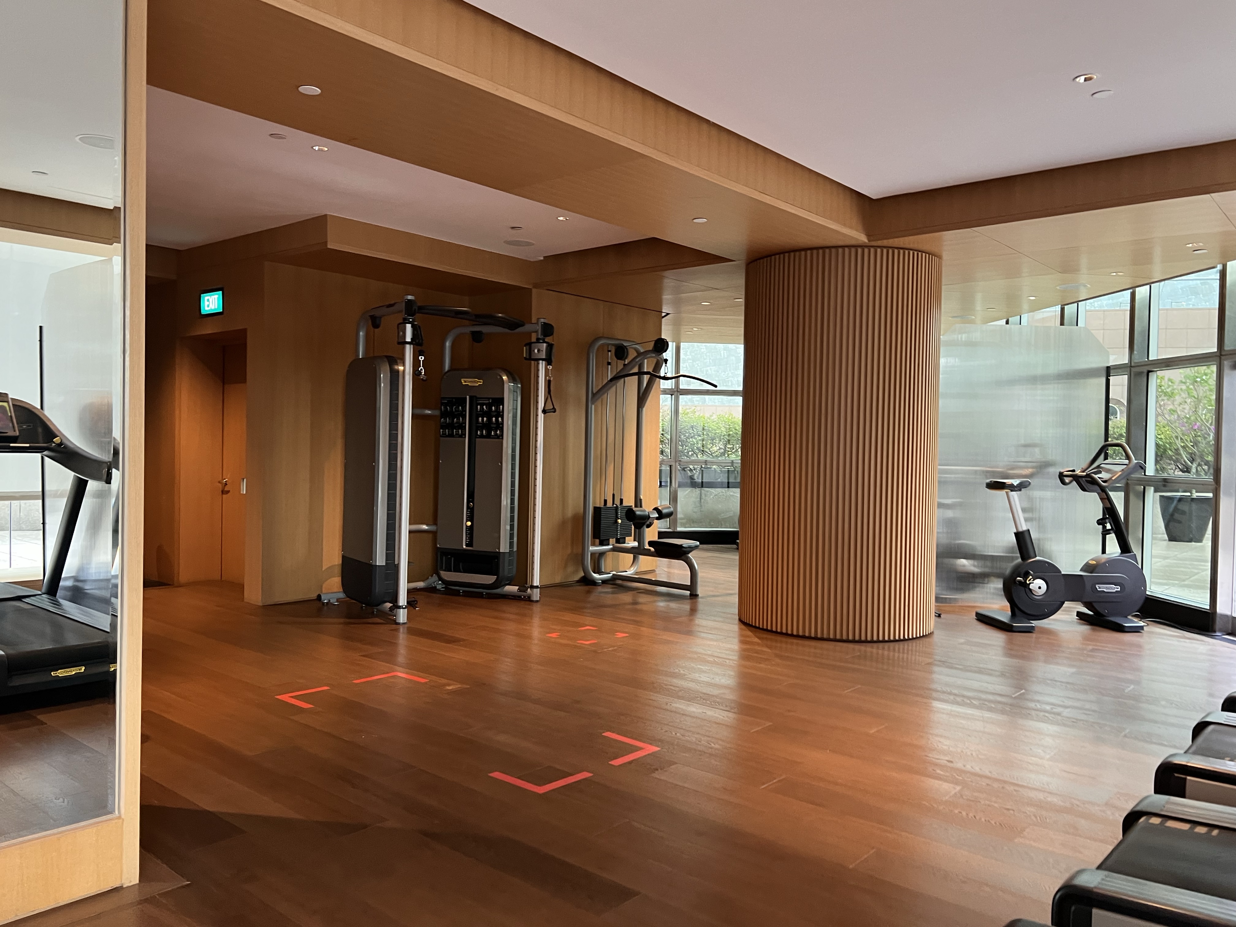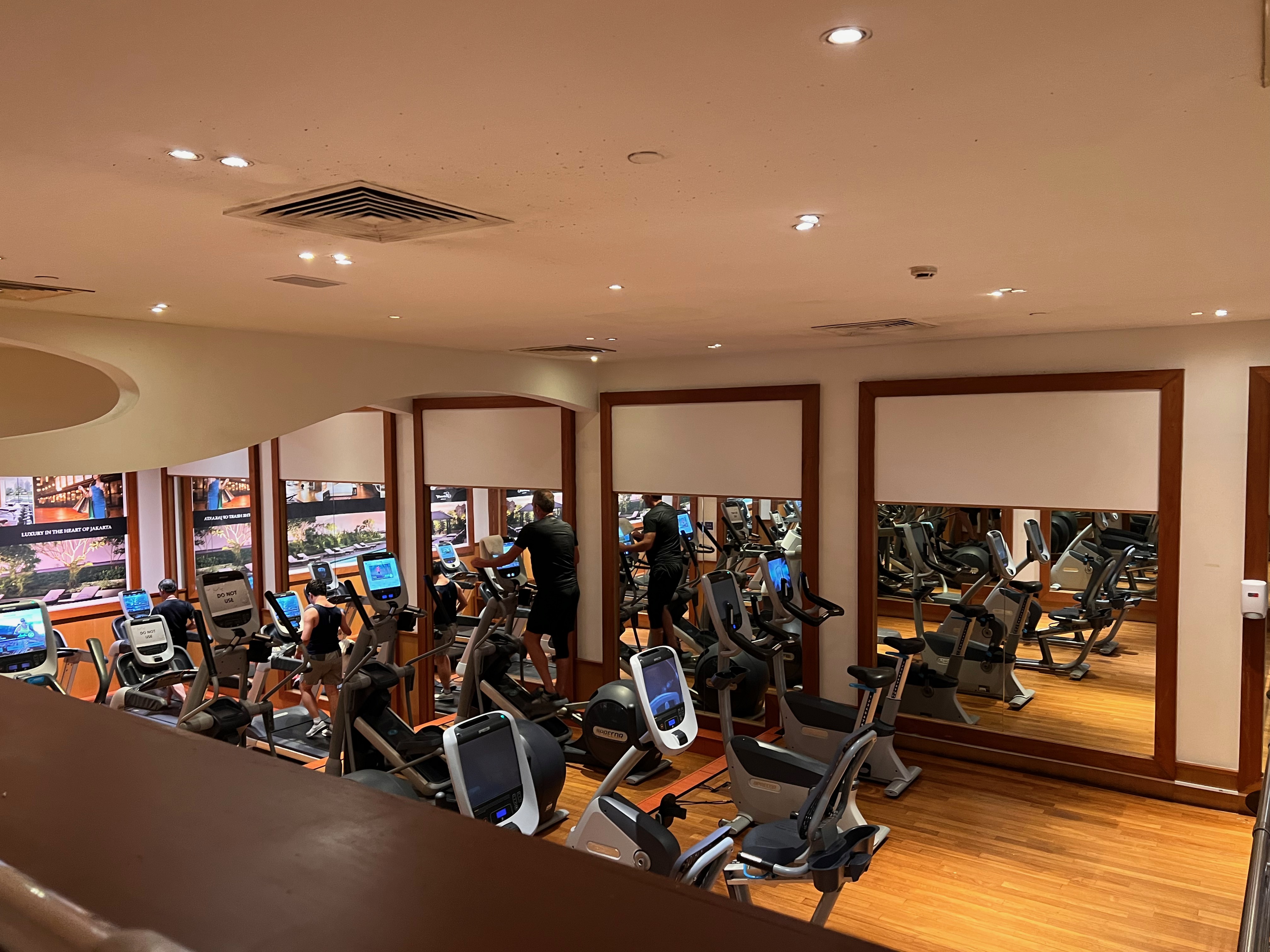 The fitness centre in Raffles Sentosa Singapore is housed in a separate colonial building near the Royal China restaurant. The fitness centre has a small setup located on the second level of the building. The centre is only equipped with one strength workout machine, some free weights, and a handful of cardio workout machines. The placement of this fitness equipment made the centre look empty.