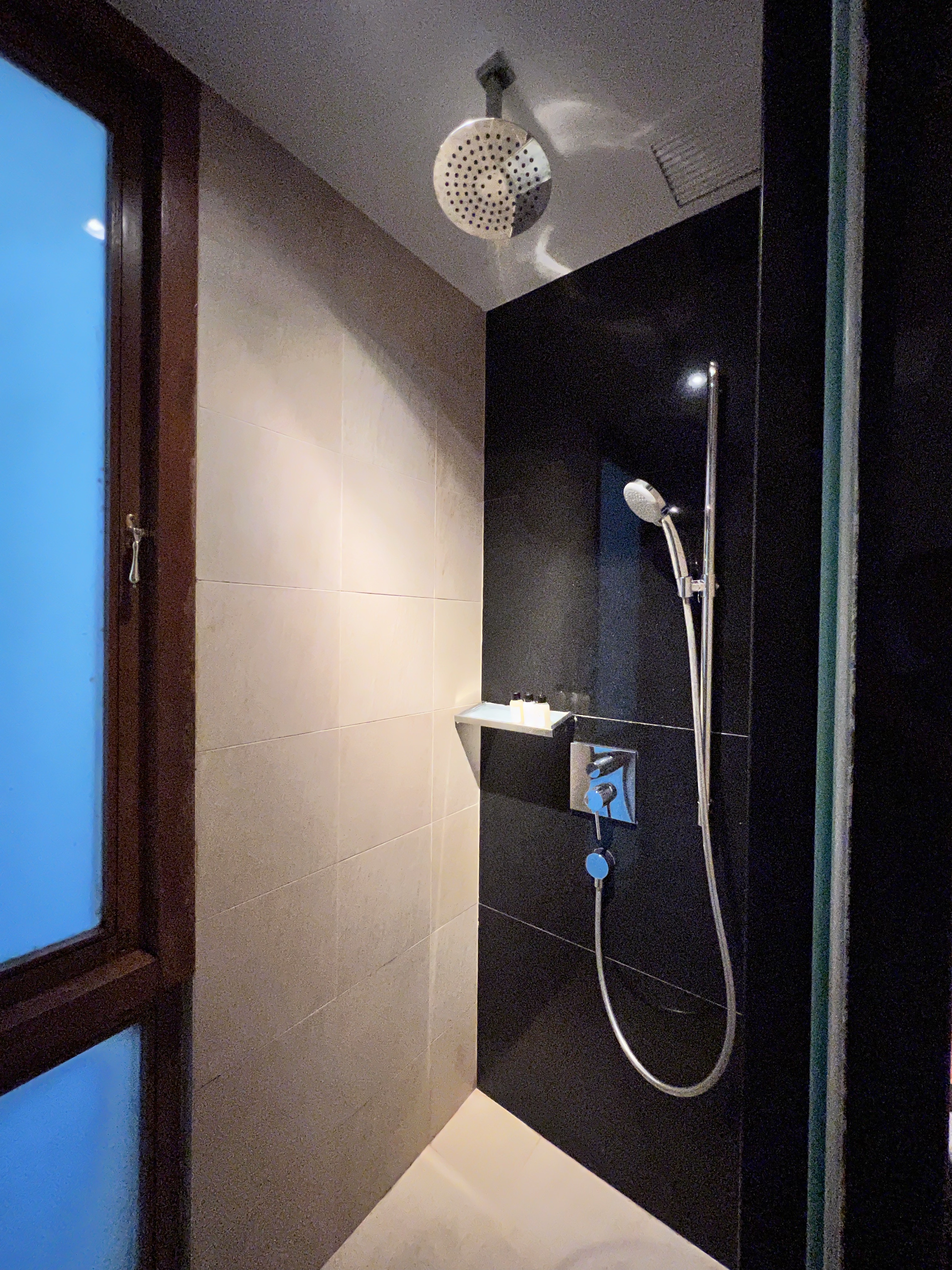 Besides the cabana, the pool terrace is also furnished with outdoor furniture. The three-seater couch and the accompanying single-seater armchair placed in front of the bathroom of the bedroom pavilion gave us the option of enjoying the outdoors in the day or basking under the moon in the evenings. The dining table with two chairs in the opposite corner of the terrace gave us a place to dine from the room service menu. However, the outdoor placement of this dining table, without any shelters, also meant that dining here was not possible when it rained. We spotted a lot of millipedes and other creepy crawlies during our stay on our private terrace, especially in the mornings.