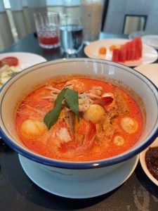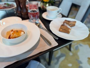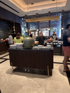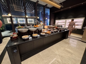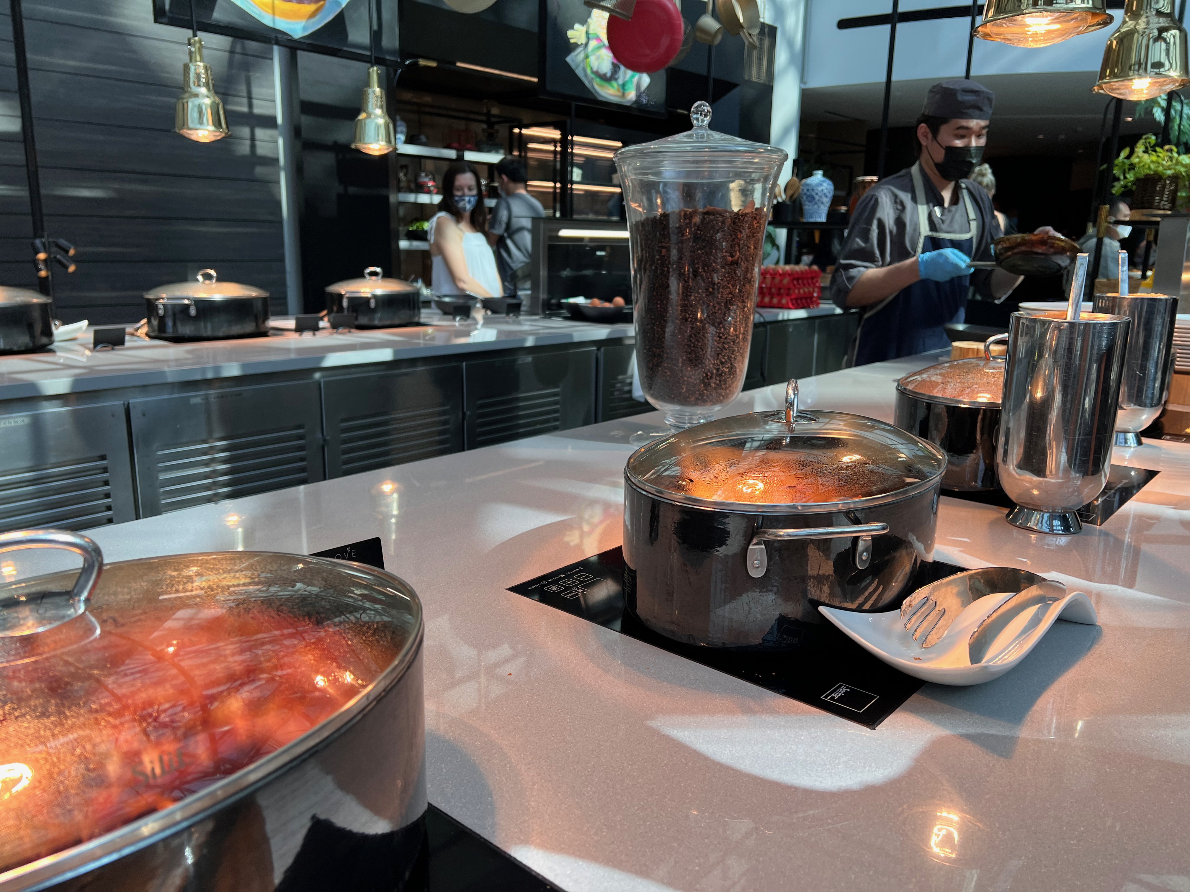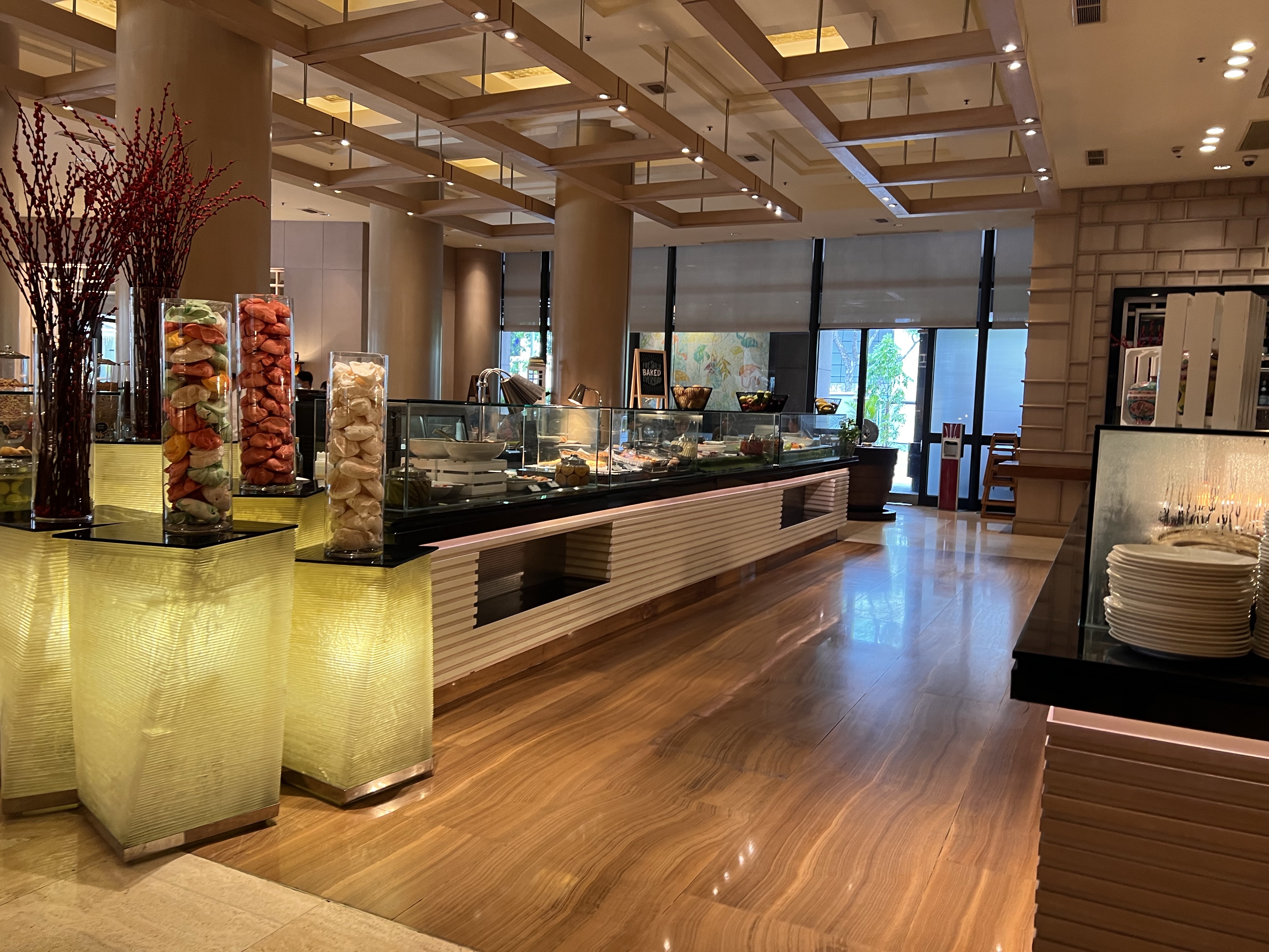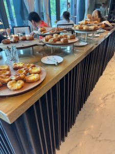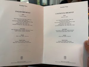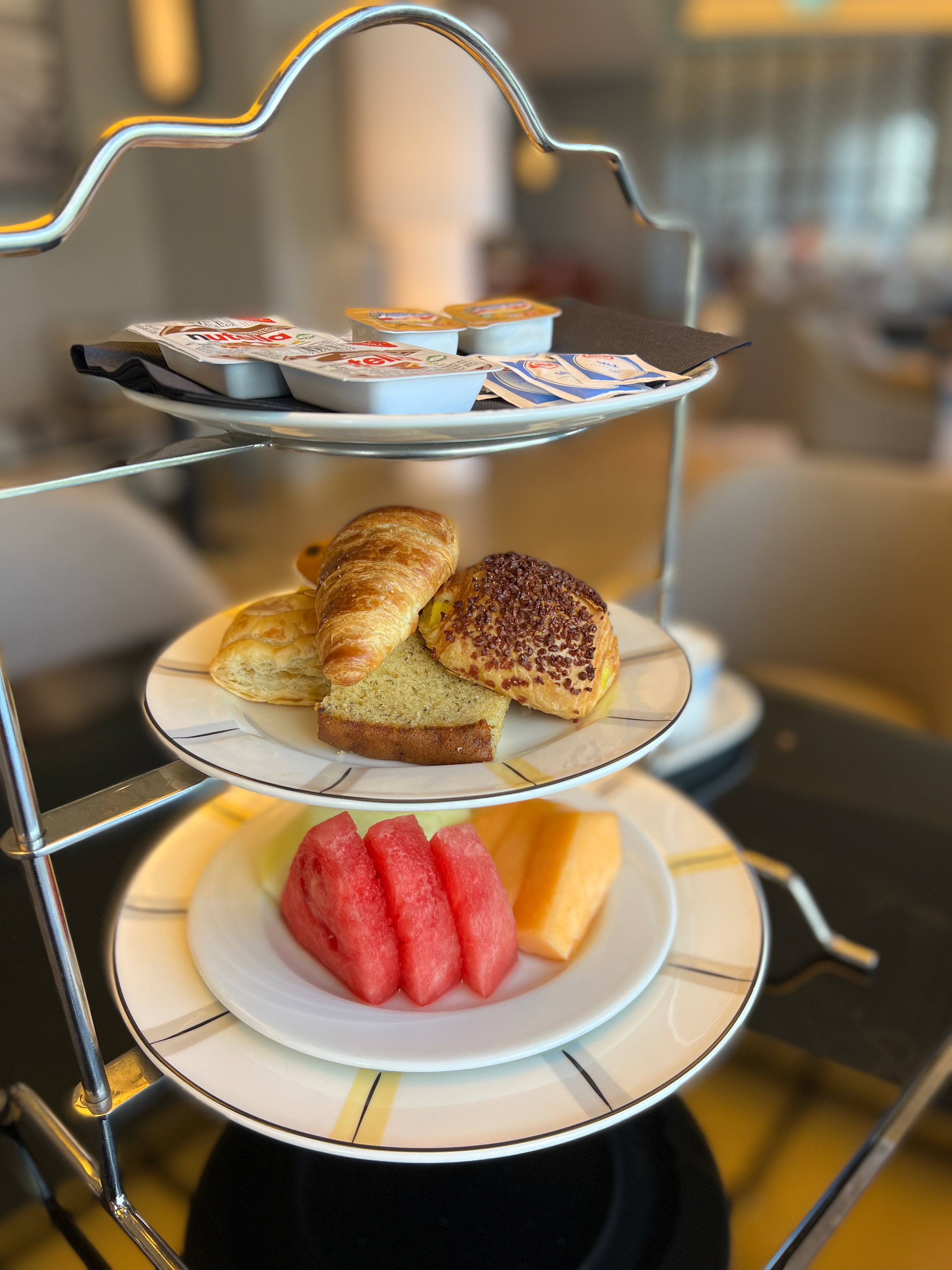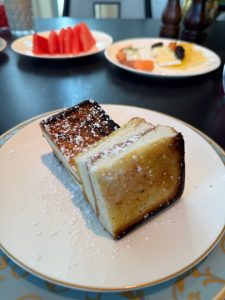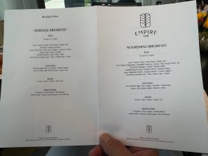 Breakfast at Raffles Sentosa Singapore is usually served in the poolside Empire Grill restaurant. However, due to a private event, breakfast was shifted to the Royal China restaurant. Breakfast was served in a semi à la carte buffet manner, where the pastries were served buffet style, and the main courses were served in an à la carte buffet arrangement. I thought the breakfast was a little limited, as we were given four set choices for breakfast on top of the pastry buffet. These set choices came with a three-tier cheese and cold cuts platter. There wasn’t much local selection for breakfast other than a kaya and peanut butter set. We thought the breakfast tasted decent and was nothing memorable. The menu for breakfast stayed the same throughout our two-night stay at the resort.