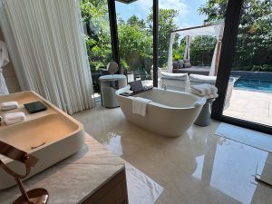 Raffles Sentosa Singapore is an all-villa resort in the central part of Sentosa Island, a tourist island south of Singapore. The resort was slated to open in 2020, but the pandemic delayed completion. The resort’s opening was pushed back several times and finally soft-launched in March 2025. Despite its central location, the resort is a tad far from most of the attractions on the island, which are mainly located on the eastern part of the island. The isolated location also meant the resort is far from most amenities, such as eateries and convenience stores. Guests who wanted to use this resort as a base to explore Singapore would spend more time transferring between transportation modes to access other attractions on mainland Singapore. The isolated location of the resort also meant guests could enjoy a tranquil stay away from the hustle and bustle of the city.