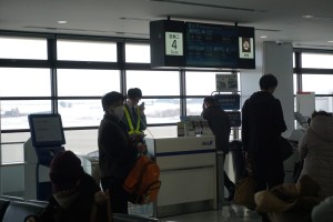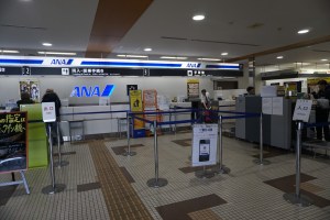 There are only 2 airlines that fly from Memanbetsu Airport – ANA and JAL. The check-in for ANA in Memanbetsu Airport is located on the 1st floor of the terminal building, on the leftmost side of the airport. There are 3 ANA check-in counters in Memanbetsu, with counter 3 being the counter that takes check-in luggage. We did not have to wait for our turn to check-in as there is no one in the queue. ANA has a straight to gate service for passengers without check-in luggage, which could be the reason for no one at the queue for check-in. Checking-in was very fast, after the staff at the counter verified our names on the system, she handed over our boarding passes to us. We were also briefed on which gate to go to and the boarding time for the short 50 min flight to New Chitose Airport. As we have luggage to be checked in, the staff at the ANA counter invited us to the x-ray machine in front of counter 3. After our luggage has been scanned by airport security, the ANA staff at counter 3 took over our luggage for checking-in.
