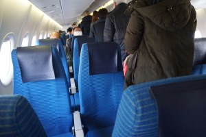 | The seats onboard ANA DHC8-Q400 is very basic but does the job for a short domestic flight |