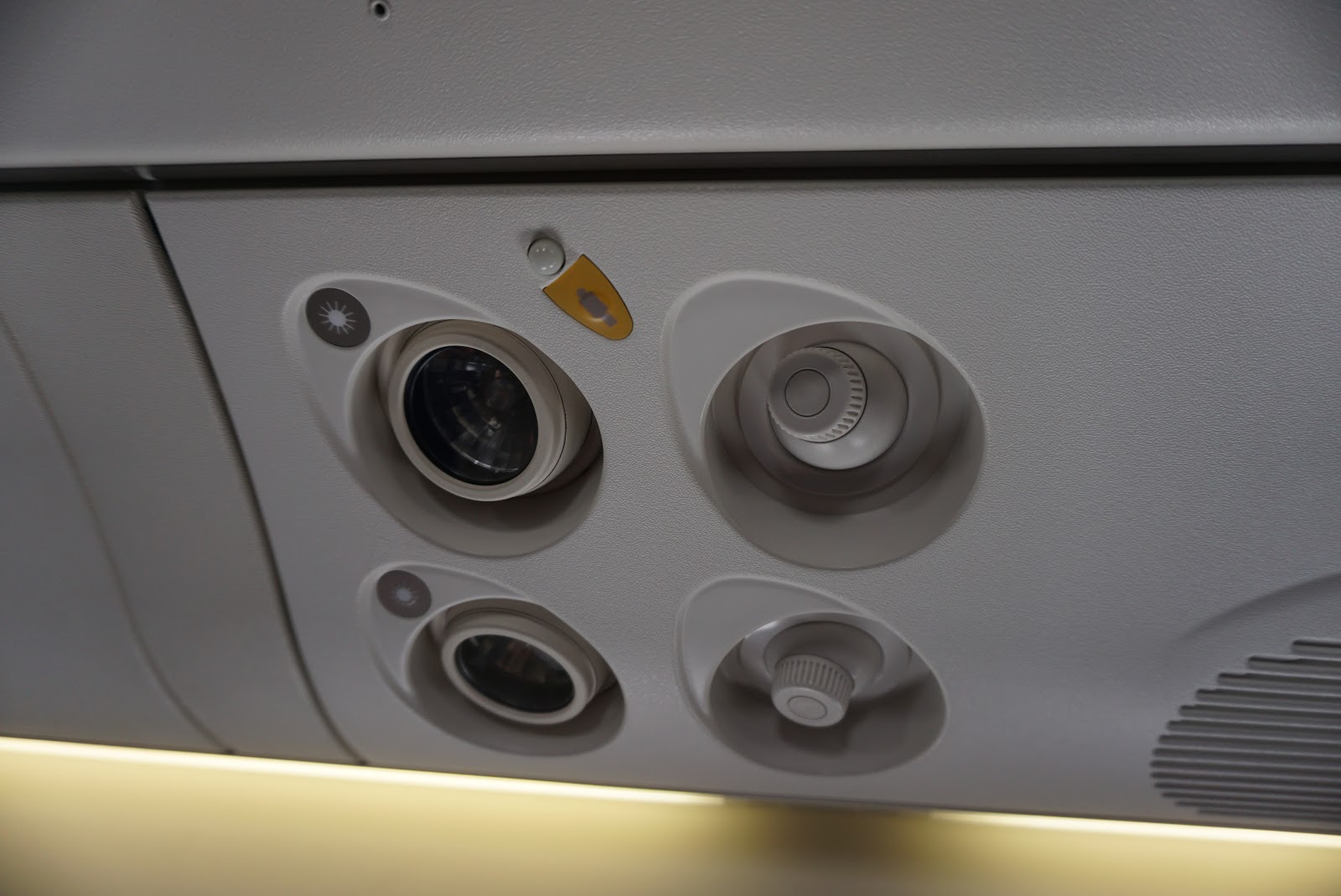 | Aircon duct and light controls are located on the ceiling above the seats |