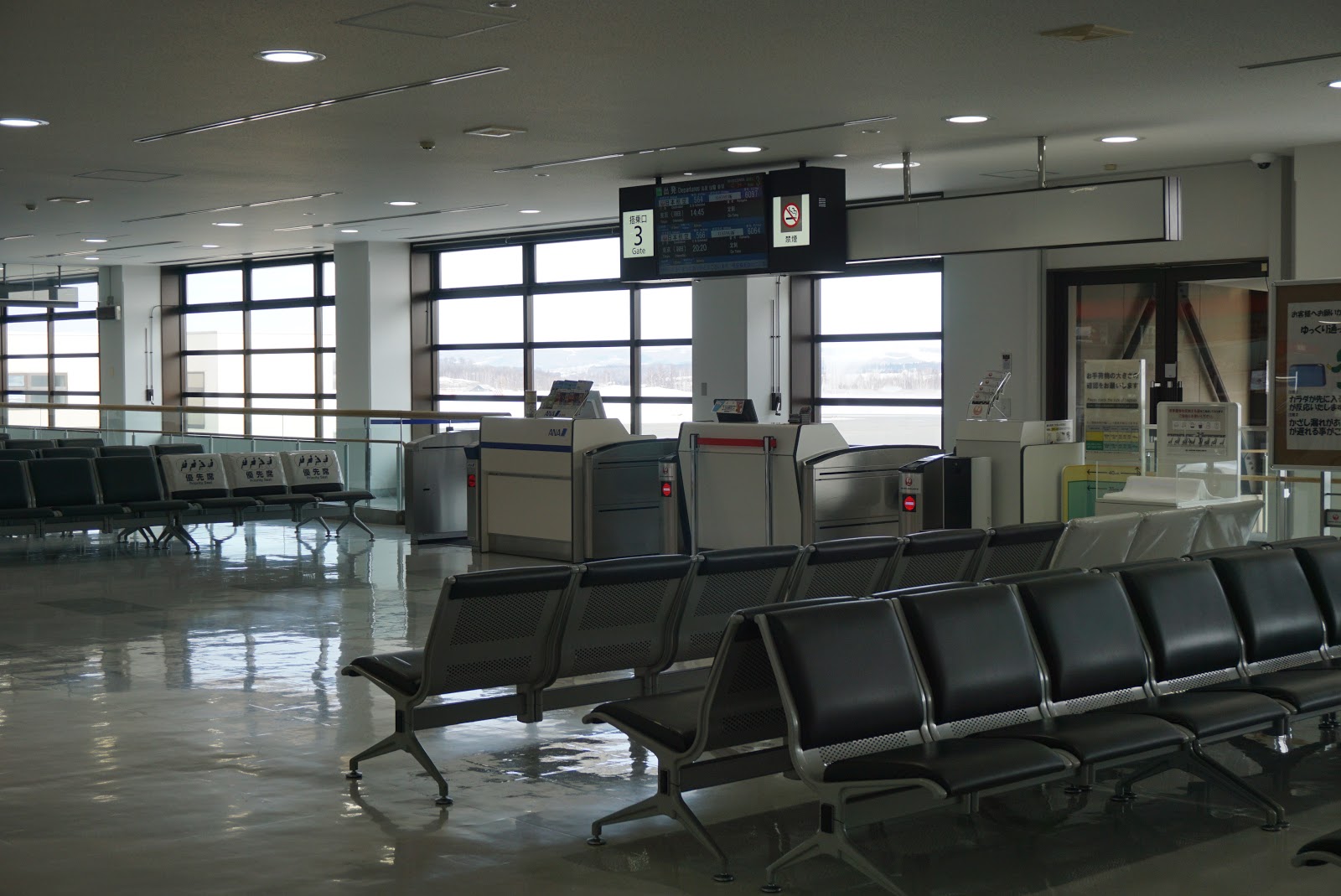 There are only 2 airlines that fly from Memanbetsu Airport – ANA and JAL. The check-in for ANA in Memanbetsu Airport is located on the 1st floor of the terminal building, on the leftmost side of the airport. There are 3 ANA check-in counters in Memanbetsu, with counter 3 being the counter that takes check-in luggage. We did not have to wait for our turn to check-in as there is no one in the queue. ANA has a straight to gate service for passengers without check-in luggage, which could be the reason for no one at the queue for check-in. Checking-in was very fast, after the staff at the counter verified our names on the system, she handed over our boarding passes to us. We were also briefed on which gate to go to and the boarding time for the short 50 min flight to New Chitose Airport. As we have luggage to be checked in, the staff at the ANA counter invited us to the x-ray machine in front of counter 3. After our luggage has been scanned by airport security, the ANA staff at counter 3 took over our luggage for checking-in.