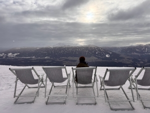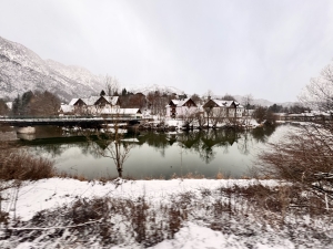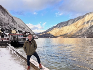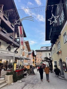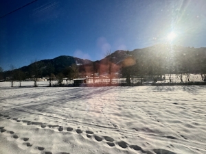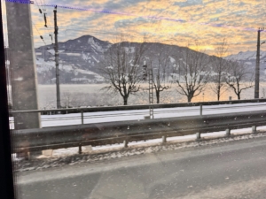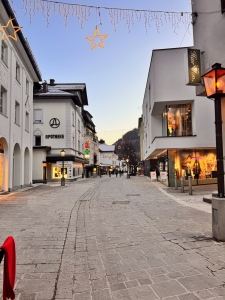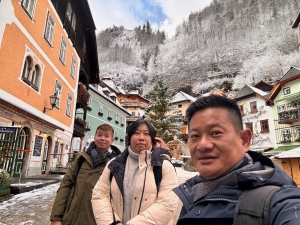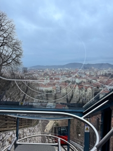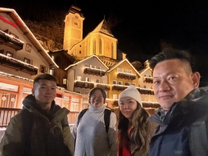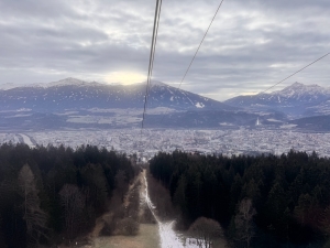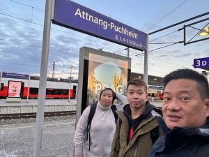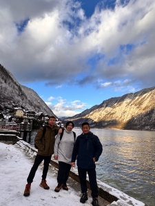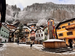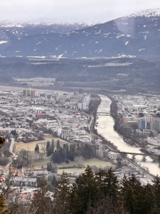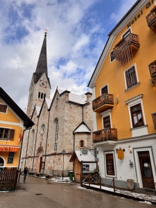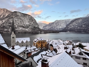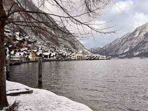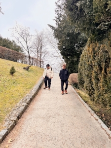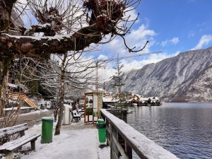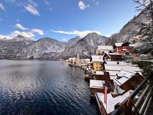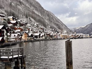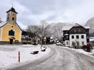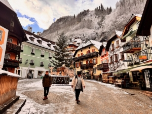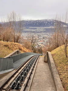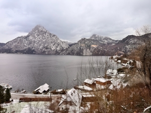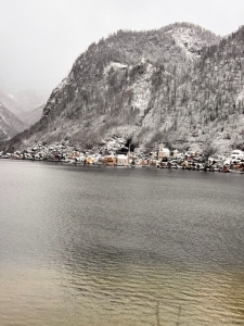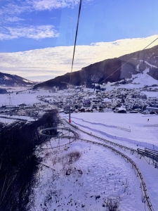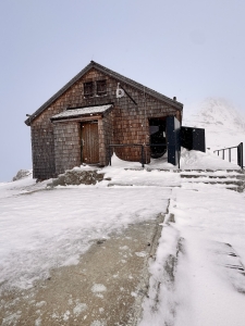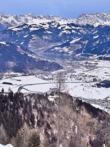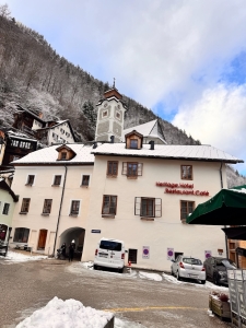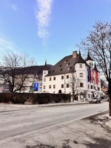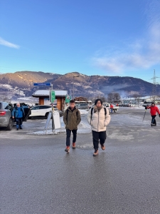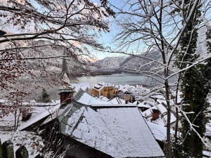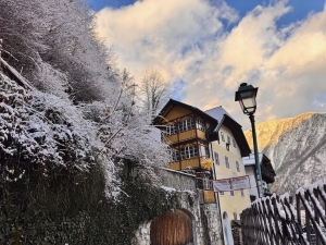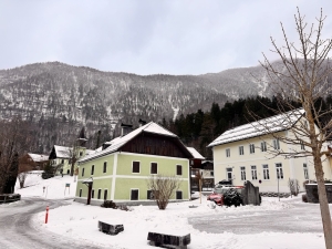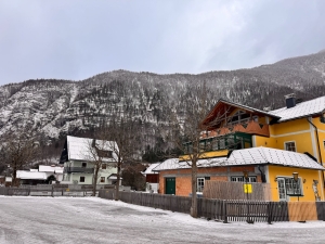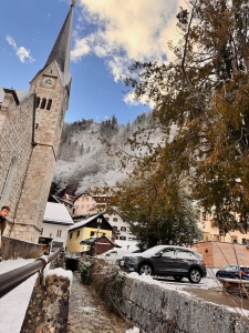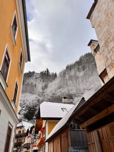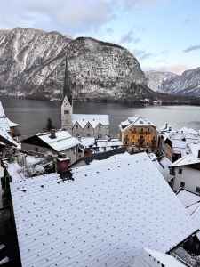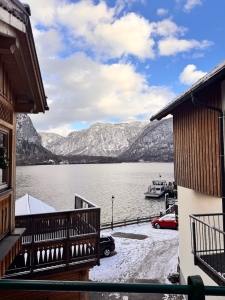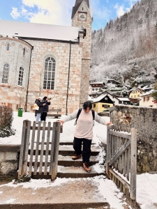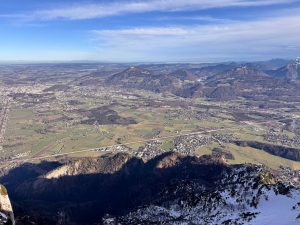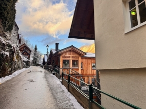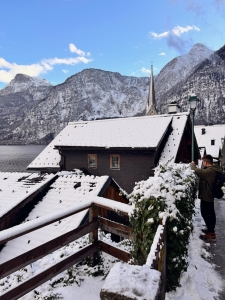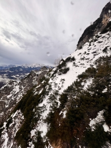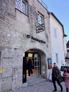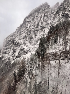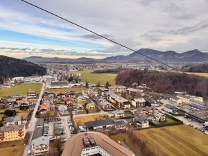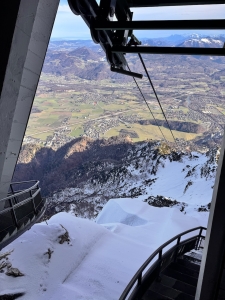 There weren’t many facilities in the Untersbergbahn summit station, other than the cable car, and only one restaurant called home here. We couldn’t hold our excitement at the sighting of snow and made our way outside. The view outside the station was breathtaking. We were treated to a vast landscape beyond the snowy grounds we were standing on. We could see Salzburg city and the nearby Salzburg airport from where we stood. However, the lack of railings and our uncertainty about the path prevented us from getting close to the mountain’s edge. There seem to be some trails that would lead us to a cross on top of the summit station. Having that in mind, we slowly navigated our way. The first few steps out of the station covered in snow were fine, but the icy path as we walked further uphill along the trail was slippery. There weren’t any railings around that we could use to ease our trek up the slope. We saw a wooden lodge housing a restaurant not far from the summit station that we had just exited. We carefully navigated our way to the cross above the cable car station, looking for the next step that did not result in us sliding backwards. Soon, we came to a crosspoint; the way up to the cross was steep, and with the icy path, we were not confident we could make it up. Or we could take a right on what seems to be an easier path up and down some slopes to another cross in the distance. We opted for this path. As we were walking up the slope, it became the icy path proved to be challenging. After the first slope, we thought it might be too challenging to press on despite seeing some groups easily passing us. We made a U-turn and headed back to the cable car station at the peak of the first slope (partly due to more sights we wanted to visit in the day).
