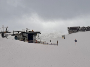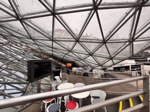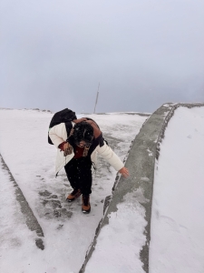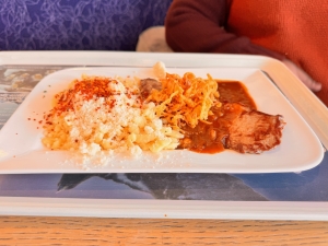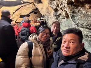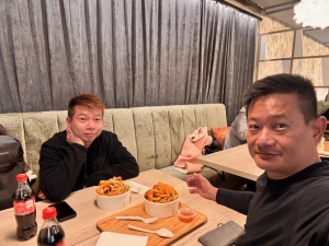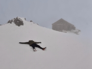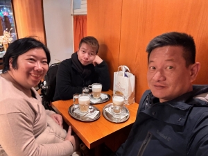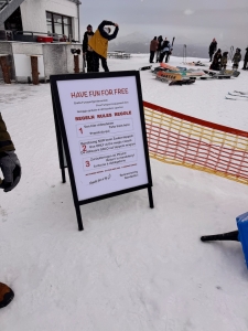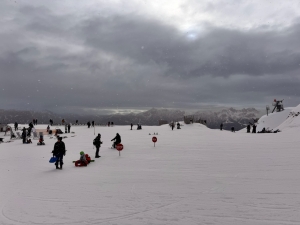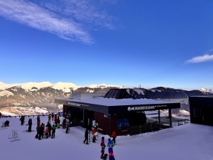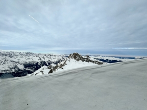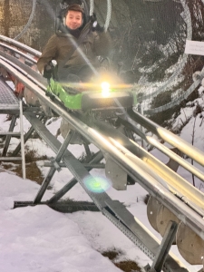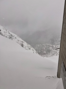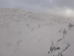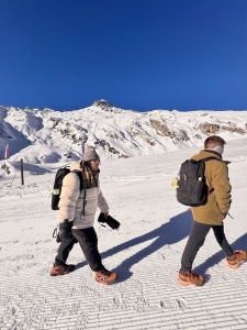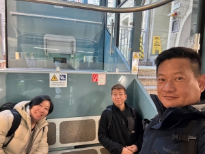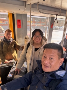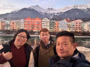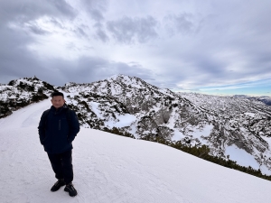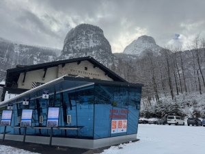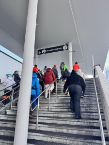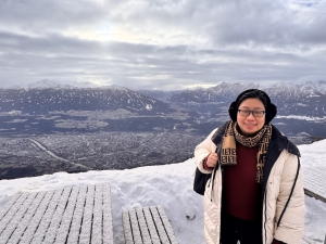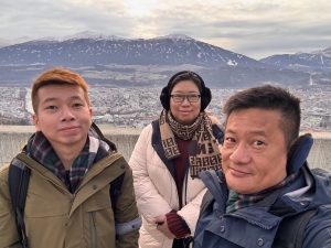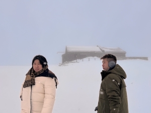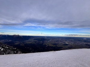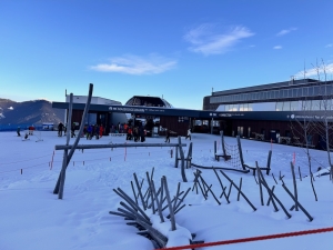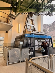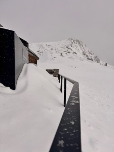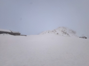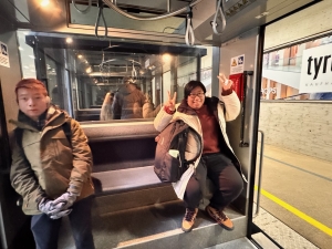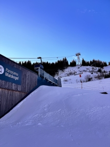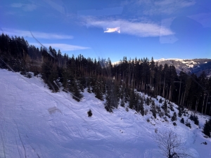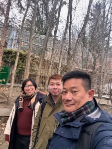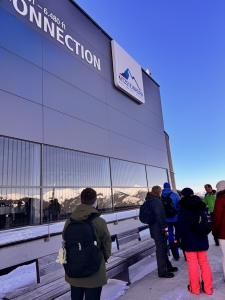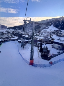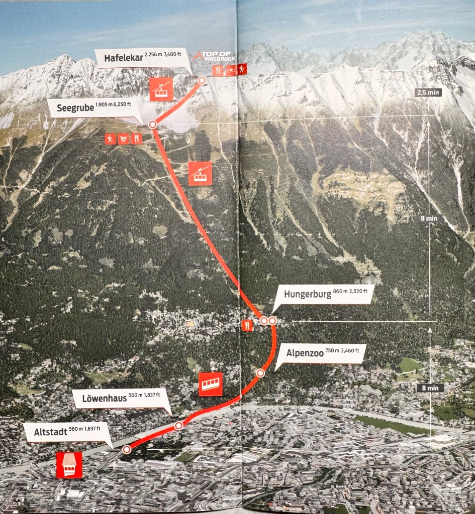 The walk back downslope on the icy path was very challenging. We were unsure if the next step would result in us tumbling down the slope or, worse, down the mountains. We thought the way down was exhausting, both psychologically and physically. After a few minutes of mental challenge in taking our next small step down, my friend and I decided to slide down the slope. It felt safer, but our bums suffered. Soon, we were at the same wooden lodge we had seen earlier and knew we were close to the summit station. The final stretch downslope to the summit station was very icy and slippery. Fortunately, we saw a path leading to the station’s terrace deck (the second floor), which was easier to walk on. We finally made it back to the station and had lunch in the restaurant to reward our efforts (partly because we were hungry) while waiting for the next cable car down (cable cars depart the station at the quarter of the hour).