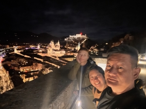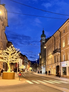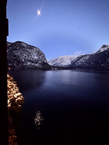 One of the places for the best night view of Salzburg (or so I read online) was the Mönchsberg, one of the five mountains in Salzburg. Mönchsberg is a popular local recreational area with nature and forest footpaths. At the top of Mönchsberg sits the Museum der Moderne, which was closed upon our arrival. However, we did not come for the museum but for the night view. The viewing platform is just outside the museum, accessible by an open elevator till 11 pm (costs €4.40 up and down and is included in the Salzburg Card). True to the recommendations I saw online, we were treated to a great night view of Altstadt and Hohensalzburg Fortress from afar. We could even see the Salzach River from up here. The warm night lighting cast upon the buildings in the Altstadt made them look like the city was built out of gold. The Hohensalzburg Fortress, sitting on the hill above Altstadt, looked as if it was guarding the city. The view was breathtaking, and to add icing to the cake, there weren’t many people around. After taking some pictures of the beautiful night view of the city, we left Mönchsberg for dinner near our hotel and returned to rest for the night. We have an early start tomorrow visiting the fairy tale town of Hallstatt.