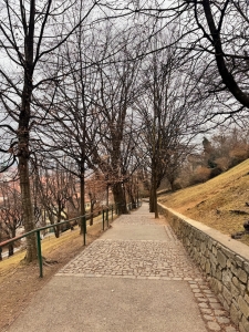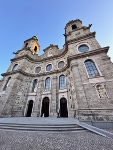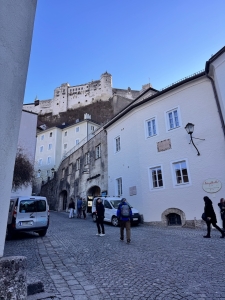 After Mozart’s Birthplace, St Peter’s Abbey is a mere 5-minute walk away. St Peter’s Abbey is one of the oldest monasteries in the German-speaking world, founded in the 7th century. The abbey is famous for its cemetery and catacomb, built into the mountain behind it. St. Peter’s Abbey seemed closed when we arrived, where we were met with a huge closed door that wouldn’t budge when we tried pushing it. We headed to a shop nearby and were told the abbey was still open, the friendly staff at the shop told us we just had to just more strength and pull the entrance door. We headed back and did what we were told, and we were able to let ourselves into the church. Once inside, the cathedral was not brightly lit, and no one was in the building. We could see the elaborate baroque-style carvings on the walls and the altar from the dim lighting. We couldn’t seem to find the entrance to the cemetery, and since there wasn’t much going on here, we left the abbey for our final sight of the day.