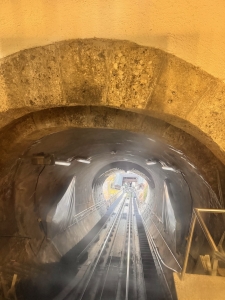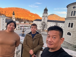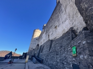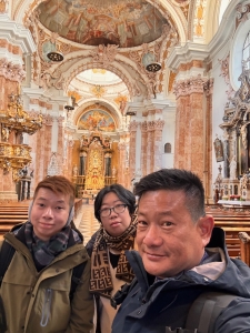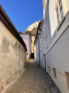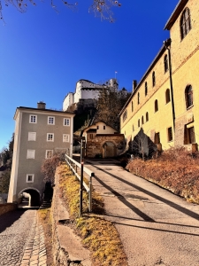 Since we did not have time to visit Hohensalzburg Fortress yesterday, we prioritised it after visiting Untersberg. Hohensalzburg Fortress is an 11th-century fortress that stood guard over Salzburg, perched on the 506m Festungsberg. The Fortress was initially built to protect the political interests of the archbishop of Salzburg. It was expanded over the next 600 years. The more significant expansion was in 1500 when the archbishop angered his people through his authoritarian ruling style by turning the Fortress from a defensive structure into a self-sufficient residence. Armed with our Salzburg card, which not only grants us the Basic Pathway tickets (€11.20 per pax) to the Fortress (which includes entrance to the castle area, the Panorama Tour and several fortress museums) but also includes a return ride on the FestungsBahn (€6 return). We took bus #25 from Untersburgbhahn base station to Petersbrunnstraße, and from the bus stop, we took a 16-minute walk upslope to the funicular station. The walk took us to the back of Altstadt, where we could see the old town from a different perspective. Along the walk, we saw St. Erhard church, a masterpiece of Salzburg architecture originating in a period dominated by the Italian baroque style and the Salzburg Cathedral, towering over the old town buildings.