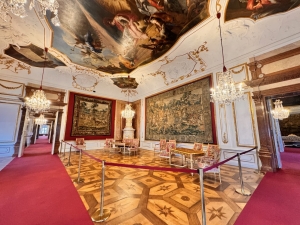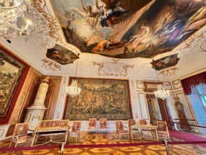 DomQuartier is a museum complex (€15 for full access) that displays secular and sacred art collections centred around the Salzburg Cathedral and Cathedral Square. The State Rooms, Archway Terrace, Salzburg Cathedral Organ loft, and the Cathedral Museum are the main parts of DomQuartier. Entrance to the DomQuartier required us to show our Salzburg Card to the ticketing counter in exchange for a ticket. A flight of stairs led us to a huge hall, the Carabinieri Hall, where another staff briefed us on using the audio guide from our phone as we walked through the State Rooms. The Carabinieri Hall was the largest room in the Residenz and was donned with impressive frescos painted on the ceiling. It seemed to serve as a concert hall today as we saw a small stage and some chairs in the centre of the hall. This is where we started and ended our tour of the DomQuartier.