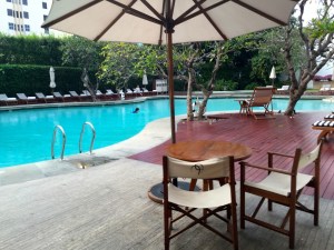 The hotel has a fairly large swimming pool located on the 5th floor. The free-form pool allows one to dip in and cool off in the hot Bangkok sun. There are a large number of deck chairs to go around and most of them are not situated under trees or any form of shades, providing guests with good spots for tanning. There is a poolside restaurant providing snacks and refreshments for guests.