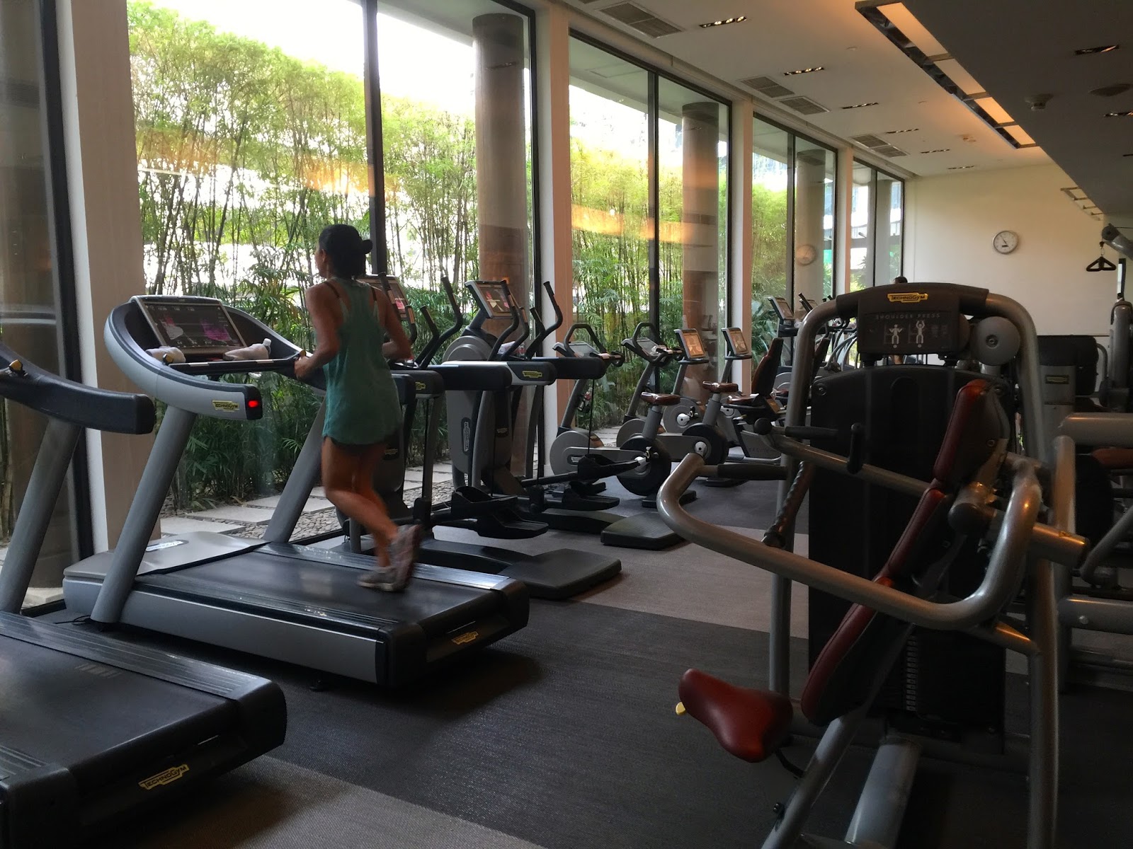 The gym is also located on the 5th floor of the hotel. The gym is quite well equipped with treadmills, press machines. There is a small counter serving drinks and complimentary bottled water next to the gym. Towels are available on the shelves outside the gym.
