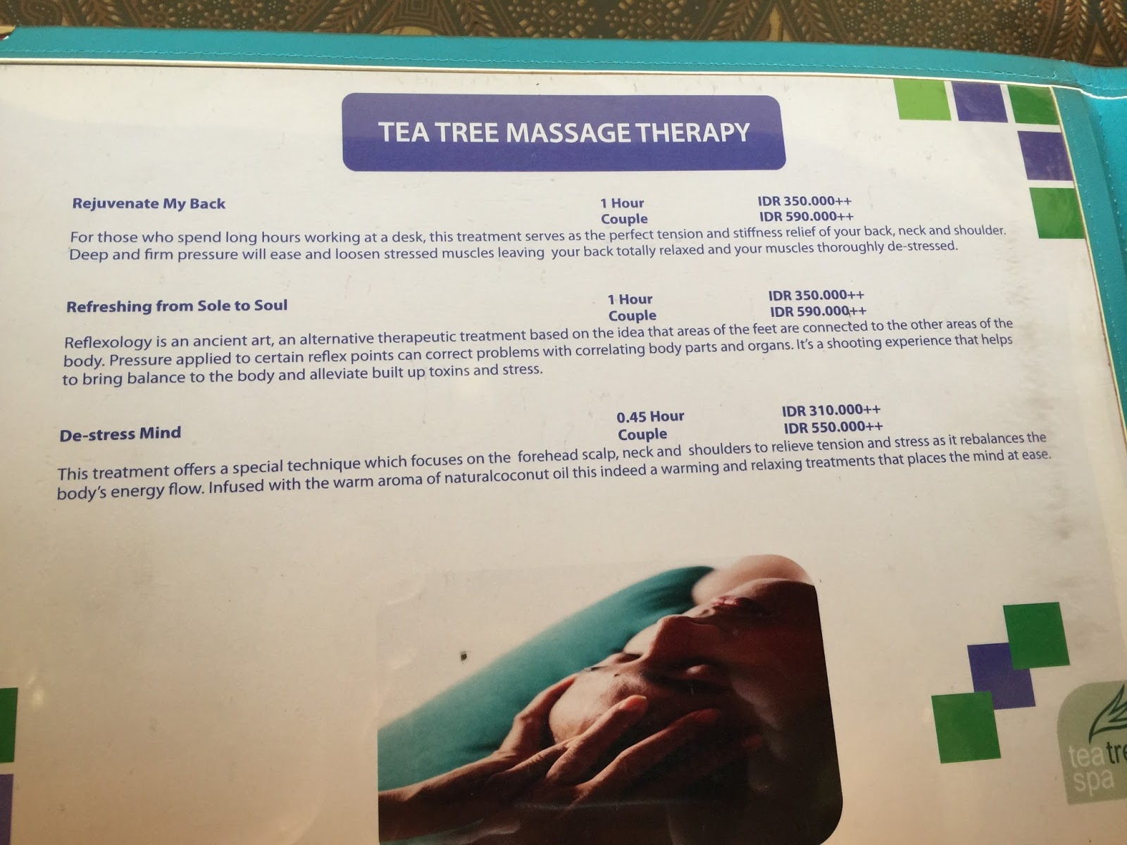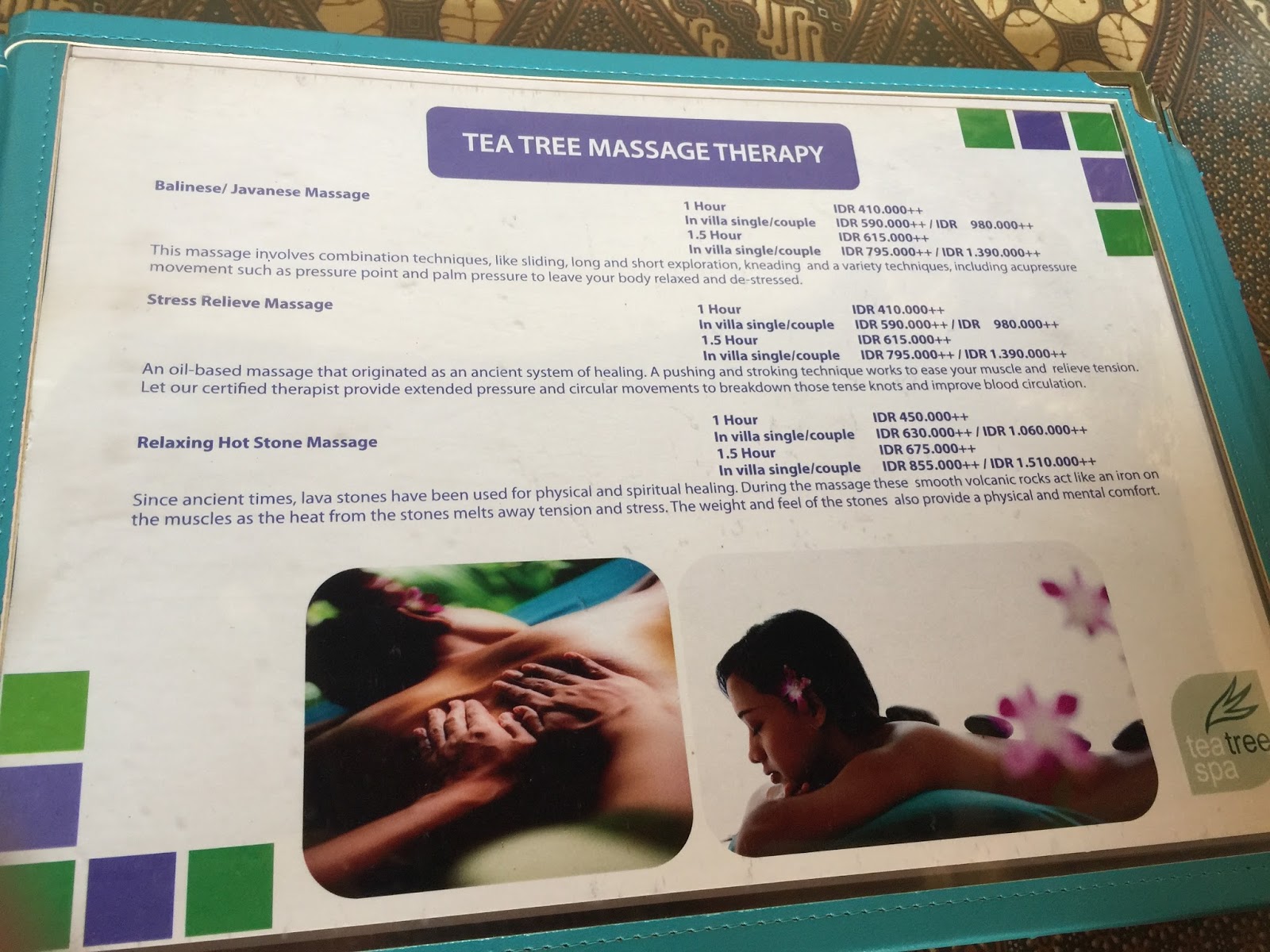 | Massage menu |