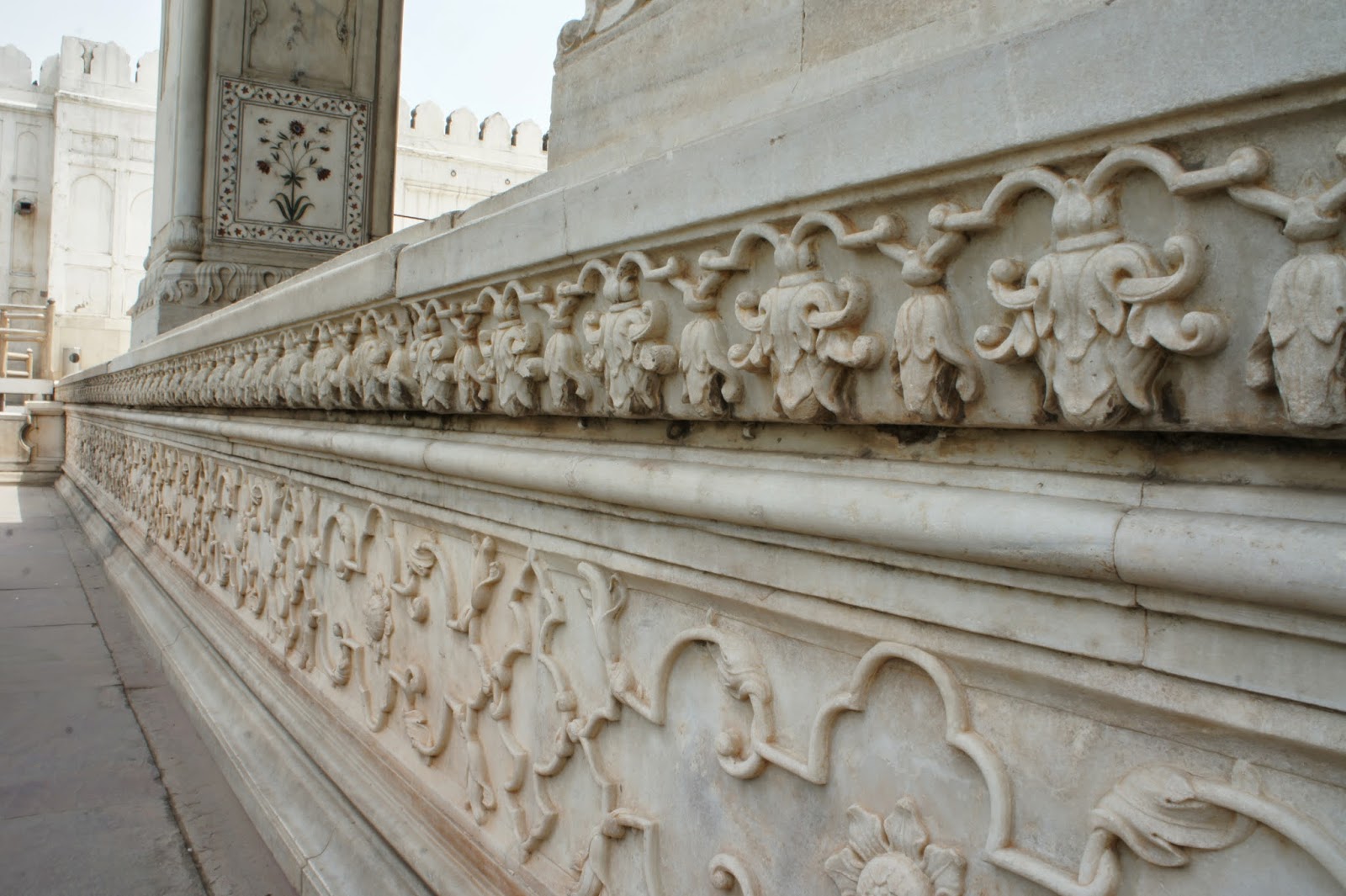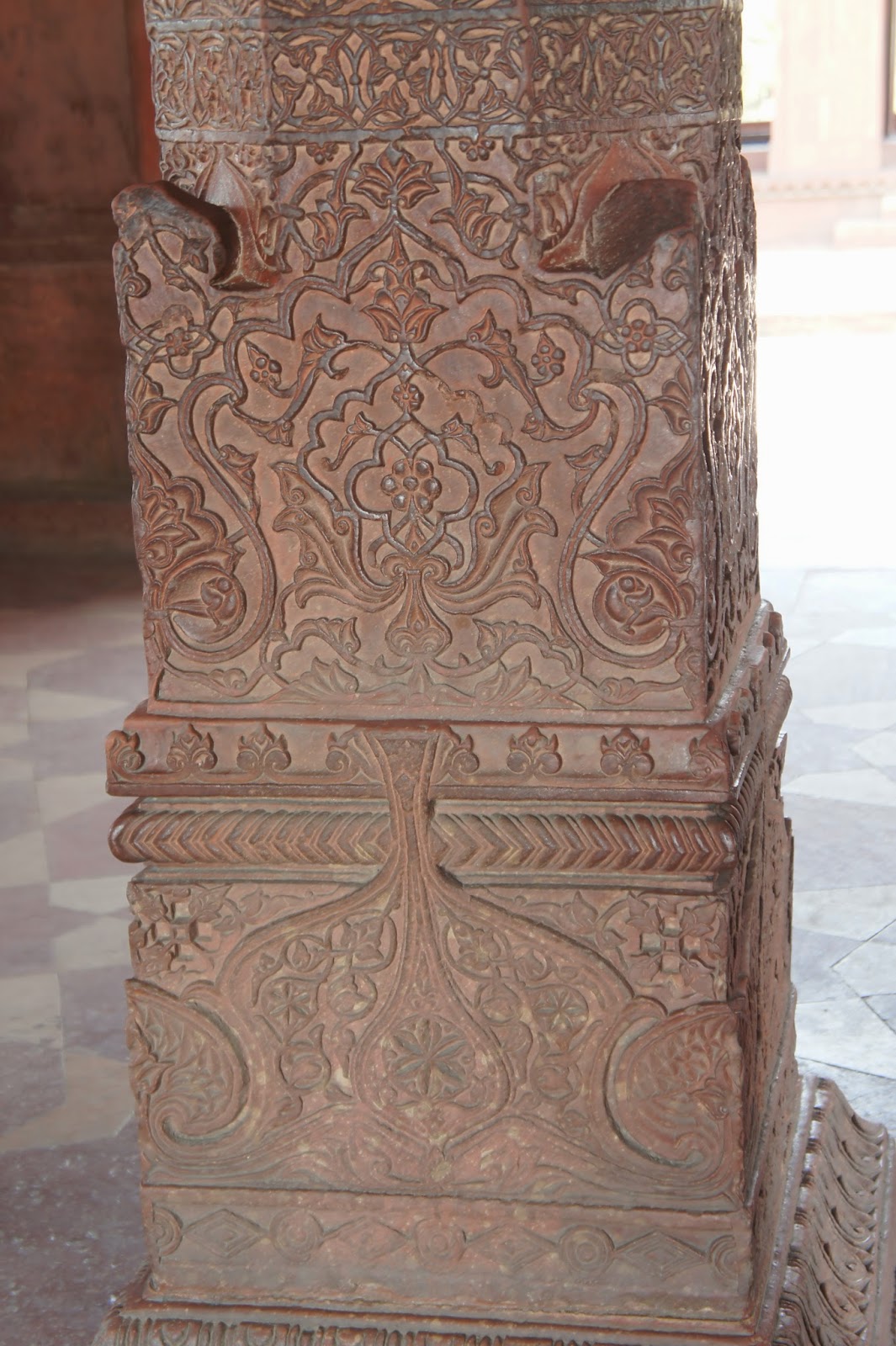 | Carvings on one of the pillars in Diwan-i-Khas |