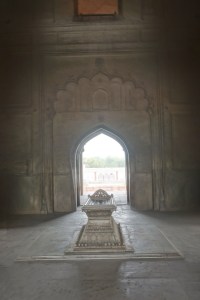 The temperature seemed to cool off after a couple of hours later, I decided to head to Itimad-ud-Daulah, commonly known as the Baby Taj as it was the first Mughal building to be built entirely of white marble. This building is where the father-in-law of the king was buried. As I entered the grounds, there was a sandstone gate facing the main entrance. The design of this gate is very similar to the mosque in Fatehpur Sikri, except that it does not have the 3 domes on it, and its height was not as tall. Still, this is an exquisitely designed gate with flowers painted in white carved on its walls. Right through this gate was the Baby Taj, sitting on top of 1m tall platform.