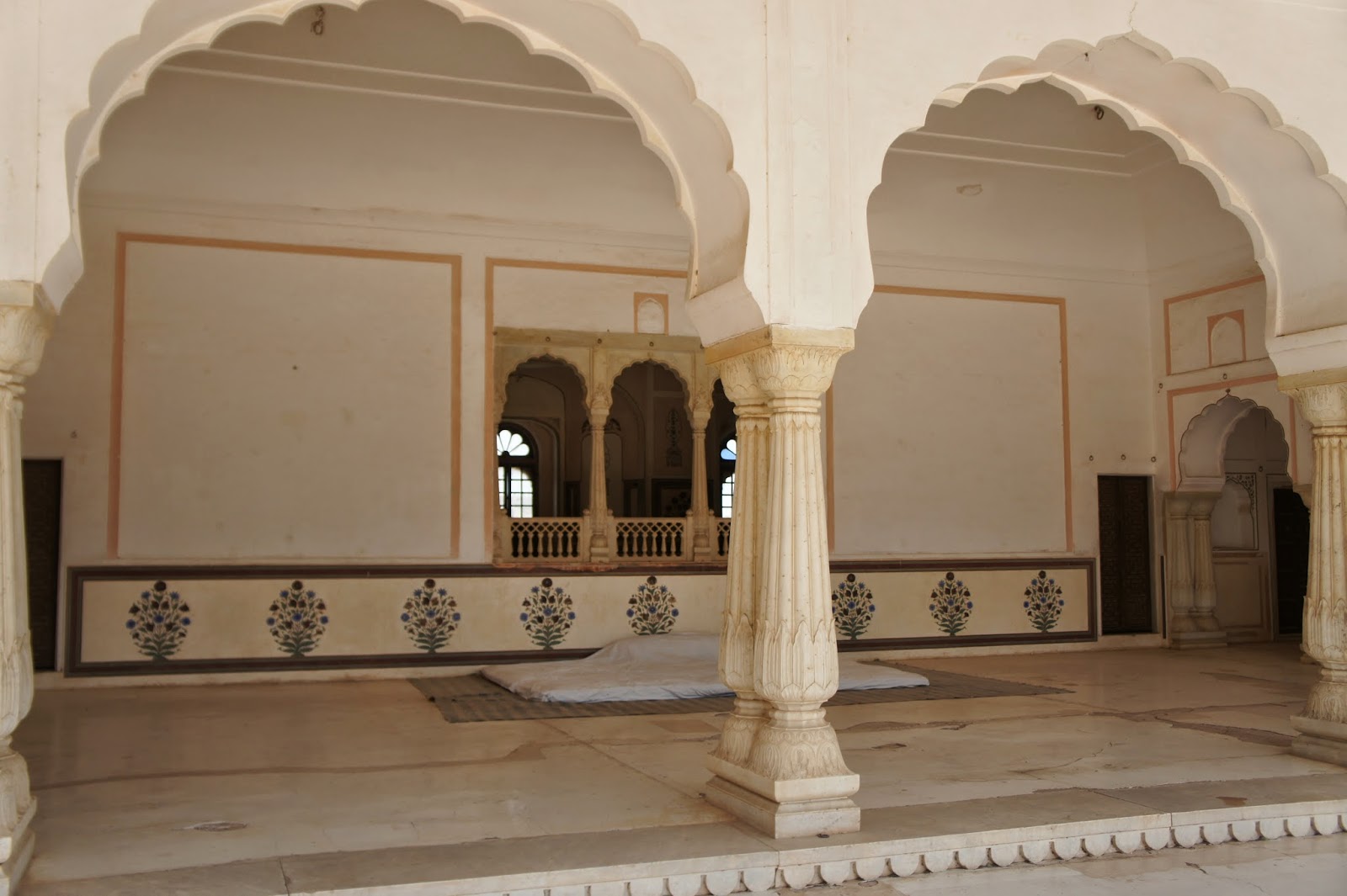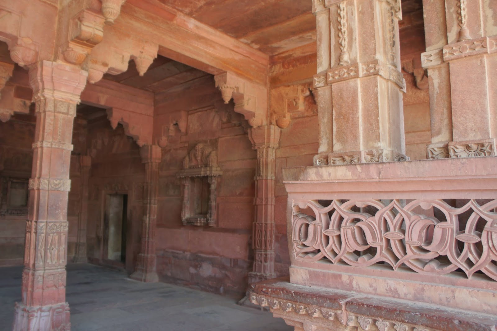 After getting the tickets for the palace entrance, another man approached me claiming to be an authorised guide. He showed me his pass and started to ask for 450 rupees for his services. I rejected him flat and told him I just want to visit the place by myself. The man then left me alone, seeing that big “no sale” expression on my face and told me if I needed a guide come to look for him. After freeing myself from all the touts, I was glad I was able to roam around myself. The first building that greeted me was Jodbhai’s Palace. This building has a rather large courtyard in the centre and rooms on the sides and each room seemed to have a small balcony. This is where it was believed that the king made as his living quarters. The Sandstone building was rather elaborate in terms of size and the designs on the pillars and walls. At the centre building (facing the entrance), there seemed to be a throne room or at least a place where the king would grant private audience to people who he trusts. The attaching side buildings are symmetrical in terms of design and the number of rooms. I left this building after snapping some pictures for the other parts of this palace.