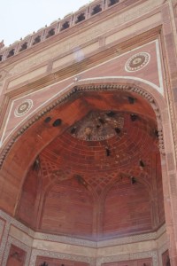 I walked towards the entrance and headed for the Jama Masjid mosque. The entrance of the mosque closest to the palace was rather ordinary. It looked like any other mosque entrance, however, the main entrance is the more impressive ones. I walked towards the main entrance to be greeted by some self-appointed guides. Thinking they might ask for a ridiculous amount of tips after their service, I rejected a few. One of them is rather persistent and started to volunteer information about the top of the stairs where the main entrance stands. He mentioned that underneath the stairs was hollow, supported by pillars beneath. The guide brought me to one of the gaps to prove his point. After that, I strongly rejected his service and headed towards the entrance to take pictures. The main entrance was tall and very eye-catching as one rides the bus towards the palace. The 54m tall entrance has 3 main domes on the topmost floor. As I was taking pictures of the interior at the entrance, more touts offered to take me inside the mosque. Well, I did learn my lesson in Delhi some days ago, I brushed them off and told them I do not want to go inside (to be frank I was rather lazy to take off my shoes and carry them around, plus the hot hot weather is unbearable). After taking some pictures, I headed back towards the entrance of the palace to wait for the bus, which will take me to the carpark where my auto-rickshaw was waiting for me. I did not stay at Fatehpur Sikri for very long (about 1 hr) as the weather is getting to me, all I want at this point was to get back to the hotel and cool off. After meeting up with the driver, he drove me back to the hotel, where I rested for another couple of hours.