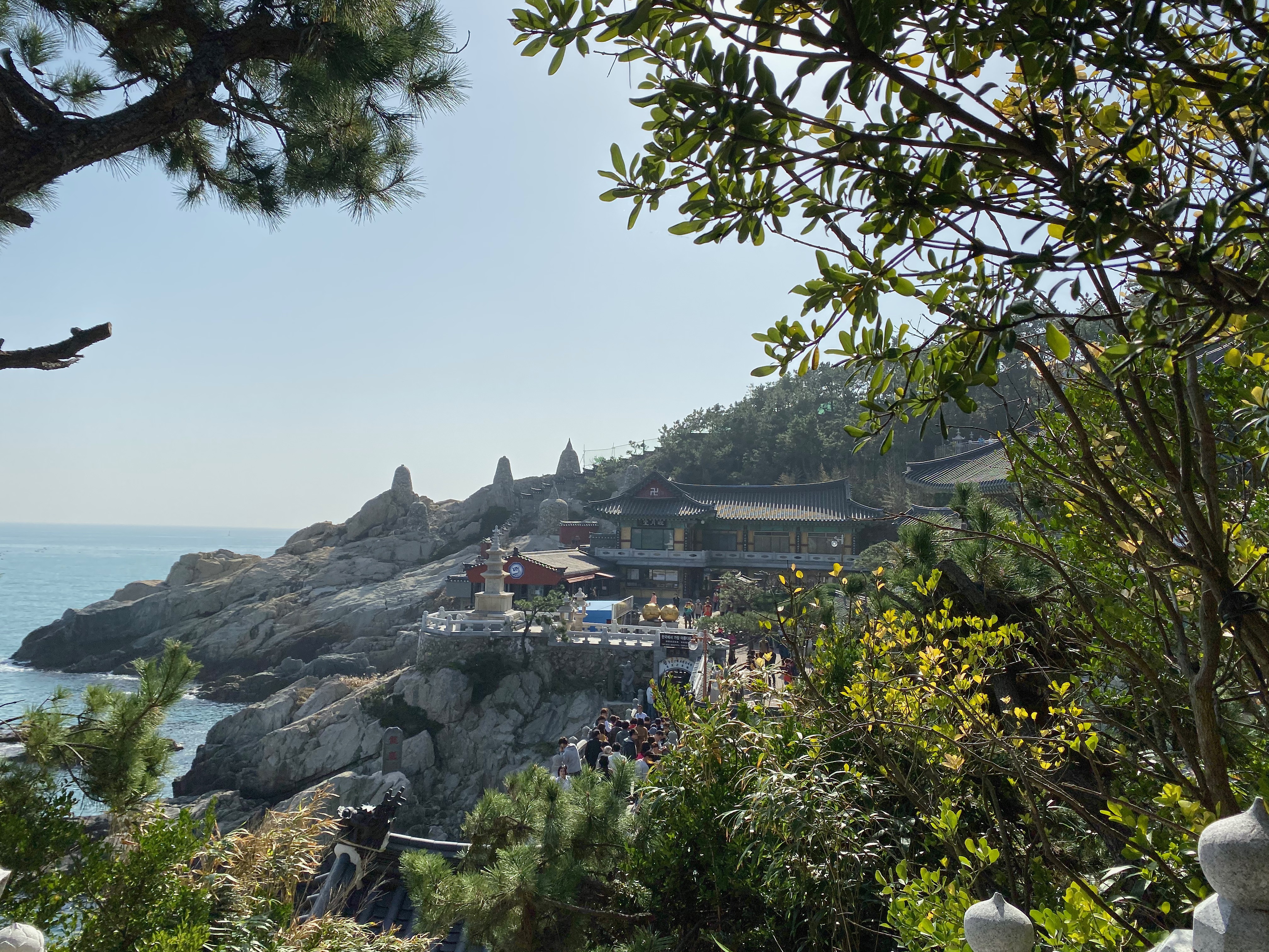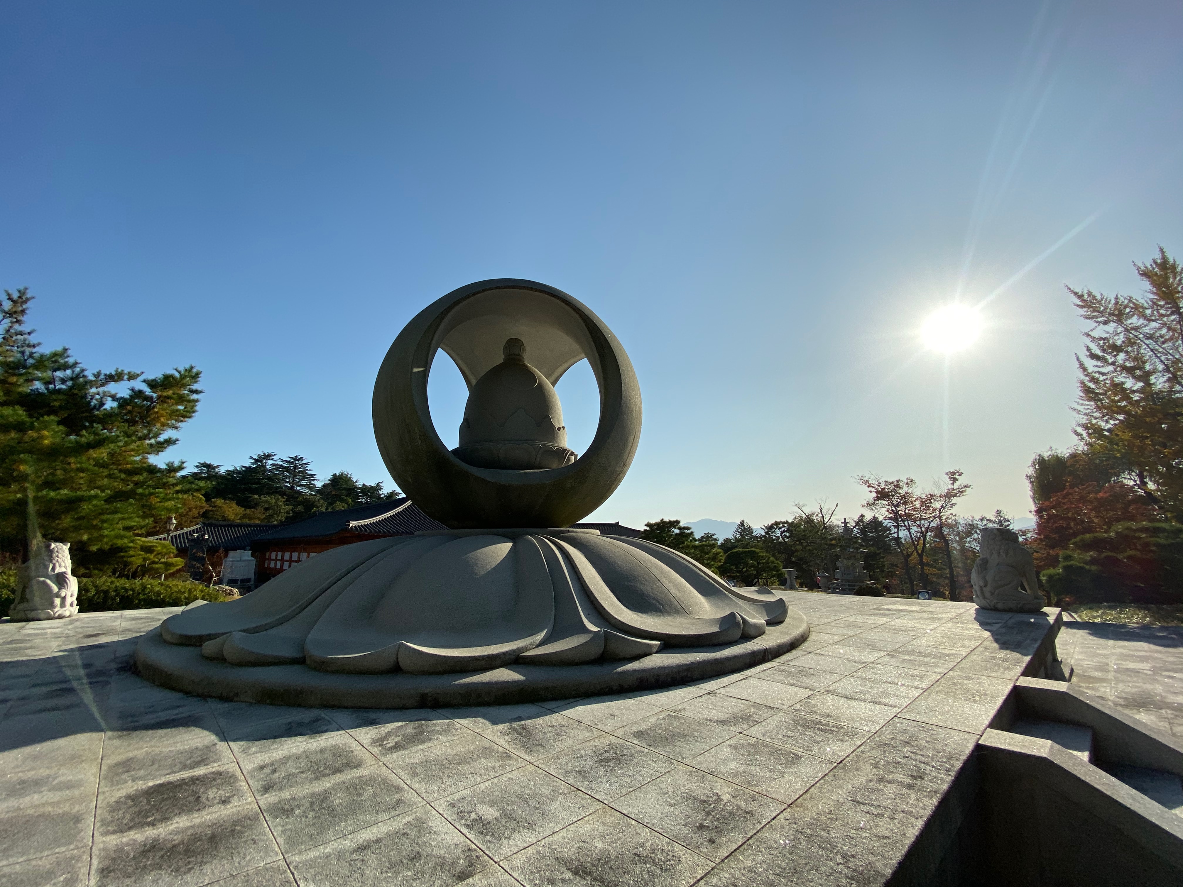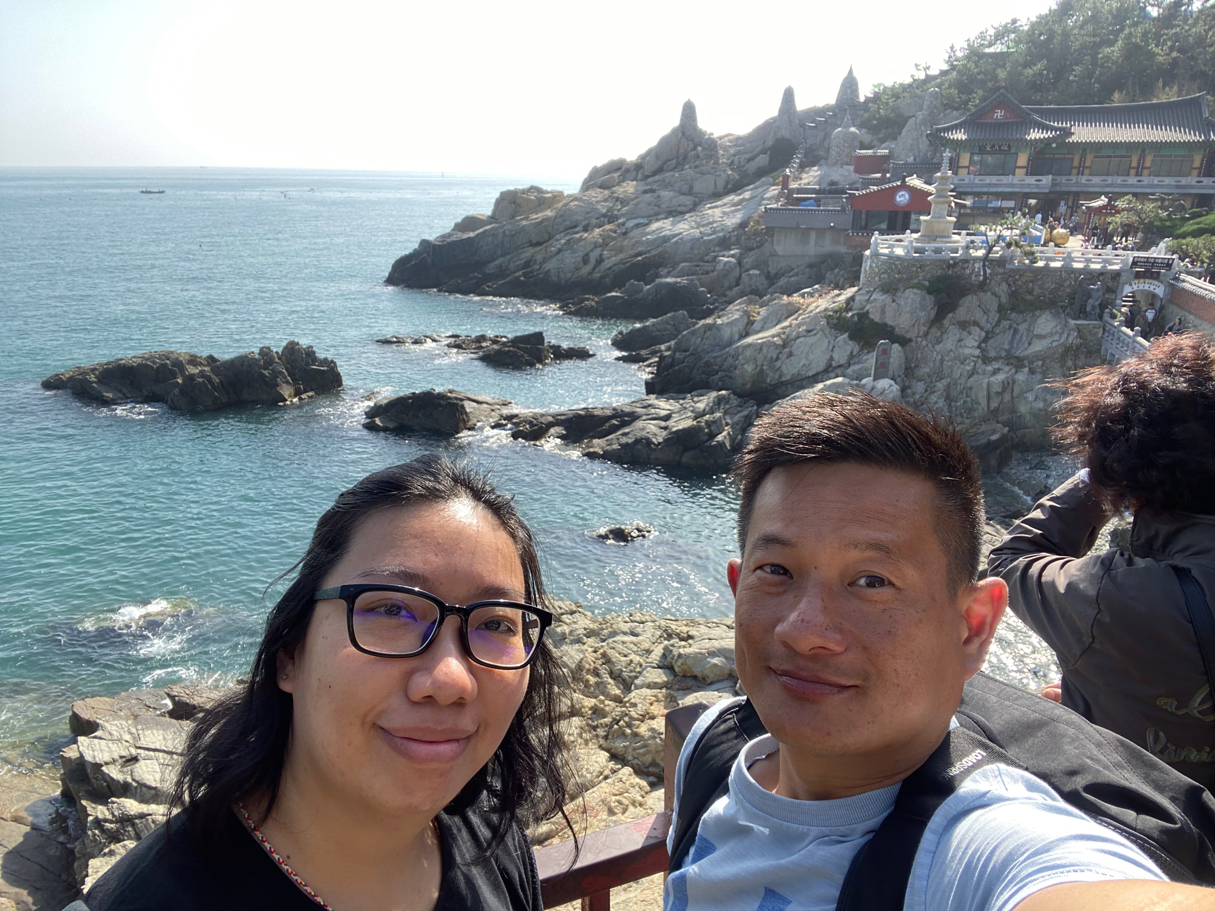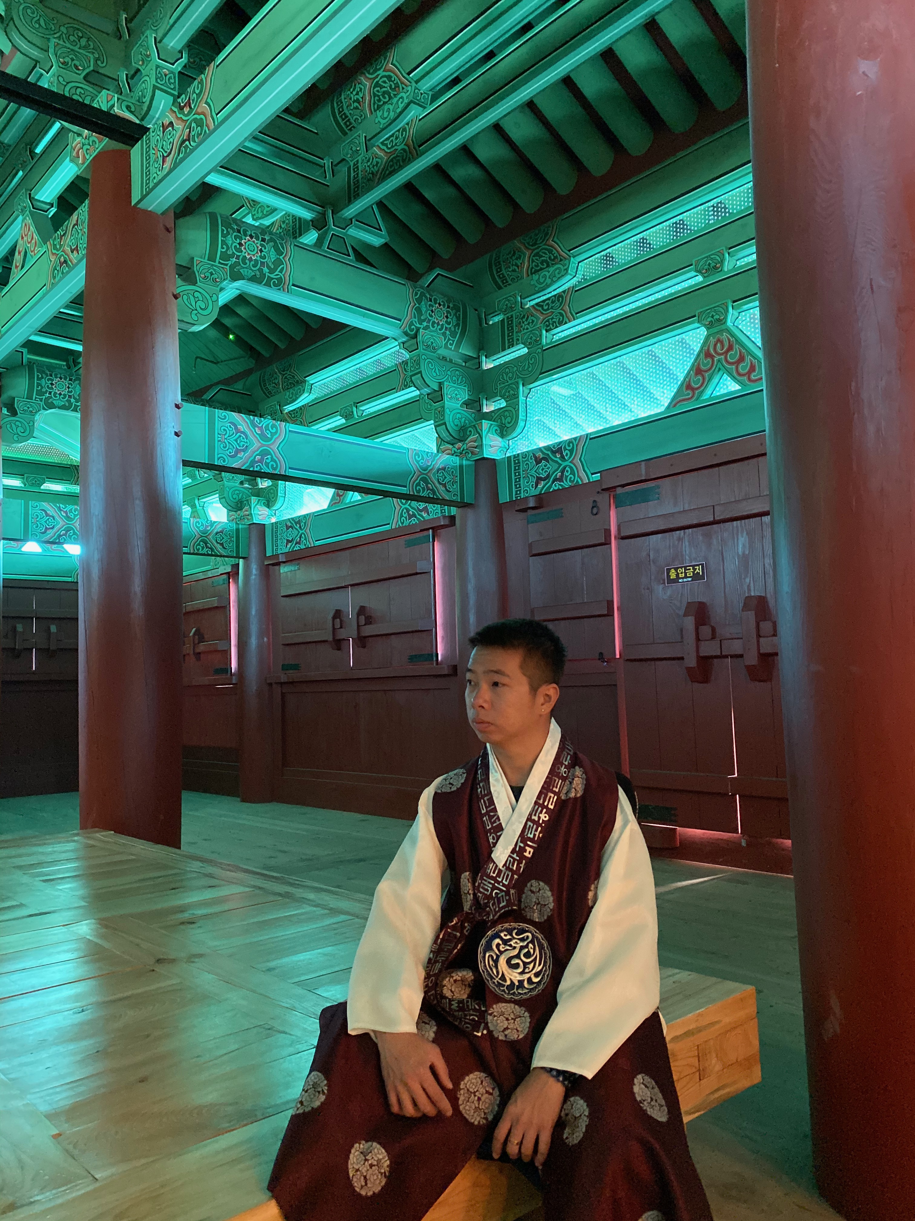 Taking a wefie in the pavilion with Hwaseomun in the background