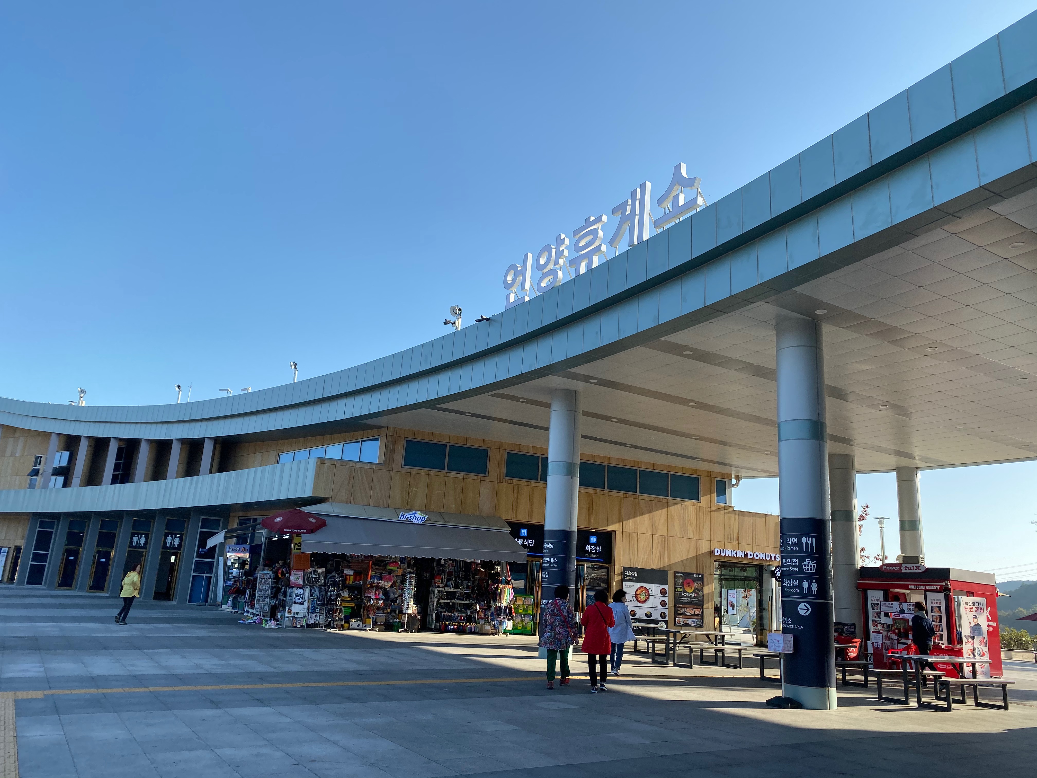 It is another 2 mins walk from the crossbow platform to our final destination on Hwaseong Fortress – Changnyongmun. Changnyongmun is one of the four gates into Suwon city and this marks the end of our 2 hrs stroll along Hwaseong Fortress. Similar to Hwaseomun, Changnyongmun is a smaller gate and has a semi-circular wall with an opening in front of the gate outside the fortress. The architecture is very similar to Hwaseomun, decked with a wooden building on top of the stone fortress wall. The wooden building in Changnyongmun is painted with the familiar green and mahogany colour, prevalent in most ancient Korean buildings we have seen so far on this trip. We went outside of Hwaseong Fortress at Changnyongmun. The gate looks almost hidden and the entrance is difficult to spot from the front of the gate outside of the fortress. After some photos, my friend and I went through Changnyongmun and headed to the bus stop between Changnyongmun and Dongjangdae where we caught the next bus to Suwon Station and headed back to Seoul.
