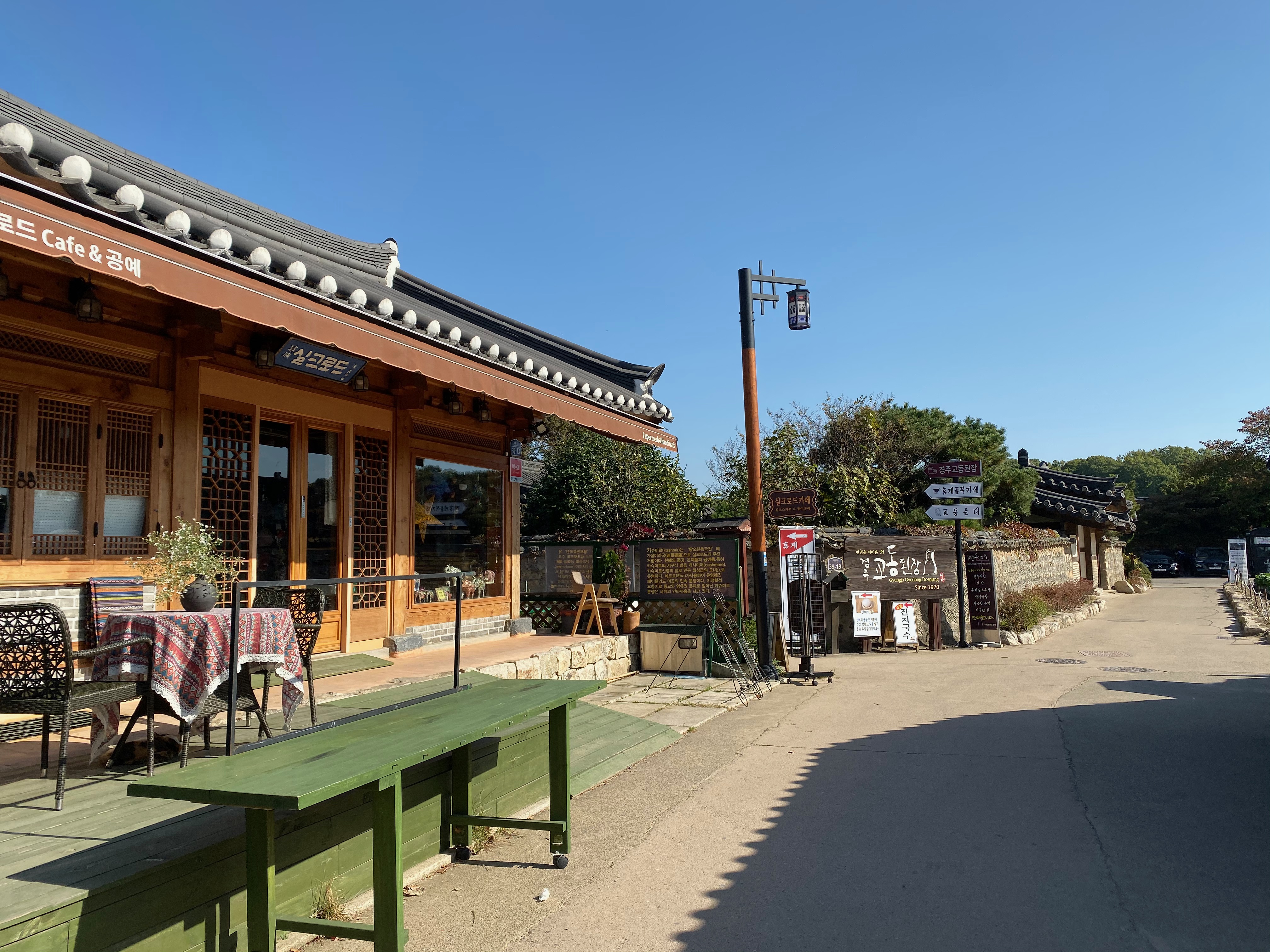 Just went we thought we were done with Hwaseong Haenggung, we spotted an exit that leads us to the annexe of Hwaseong Haenggung. This is part of Hwaseong Haenggung mainly houses the main sleeping chamber of the king and the queen whenever they visited the palace. The biggest building in the annexe of the palace is used for morning assemblies with his officials when the king visited. Similar to the main palace grounds, some buildings were used as sleeping quarters for the palace workers. Most of these buildings have their doors shut or are left empty which did not give us a good context what these buildings are meant for. My friends and I did however enjoyed the autumn scenery around Hwaseong Haenggung, especially the annexe. The annexe to the palace is relatively open and less crowded, giving us a good view of the hills behind Hwaseong Haenggung. The annexe is also a great place to take pictures with the trees growing in the palace grounds and on the hill donned on their red autumn gowns. As the palace was closing, my friends and I left Hwaseong Haenggung. We wanted to wait for dusk to visit Hwaseong Fortress and since it is still early, we decided to go for early dinner. Three years ago when we visited, we chanced into a local restaurant and wanted to go back there. However, we were disappointed to know that it was closed down. My friends and I ended up in a nearby cafe for a drink while waiting for the sun to set.