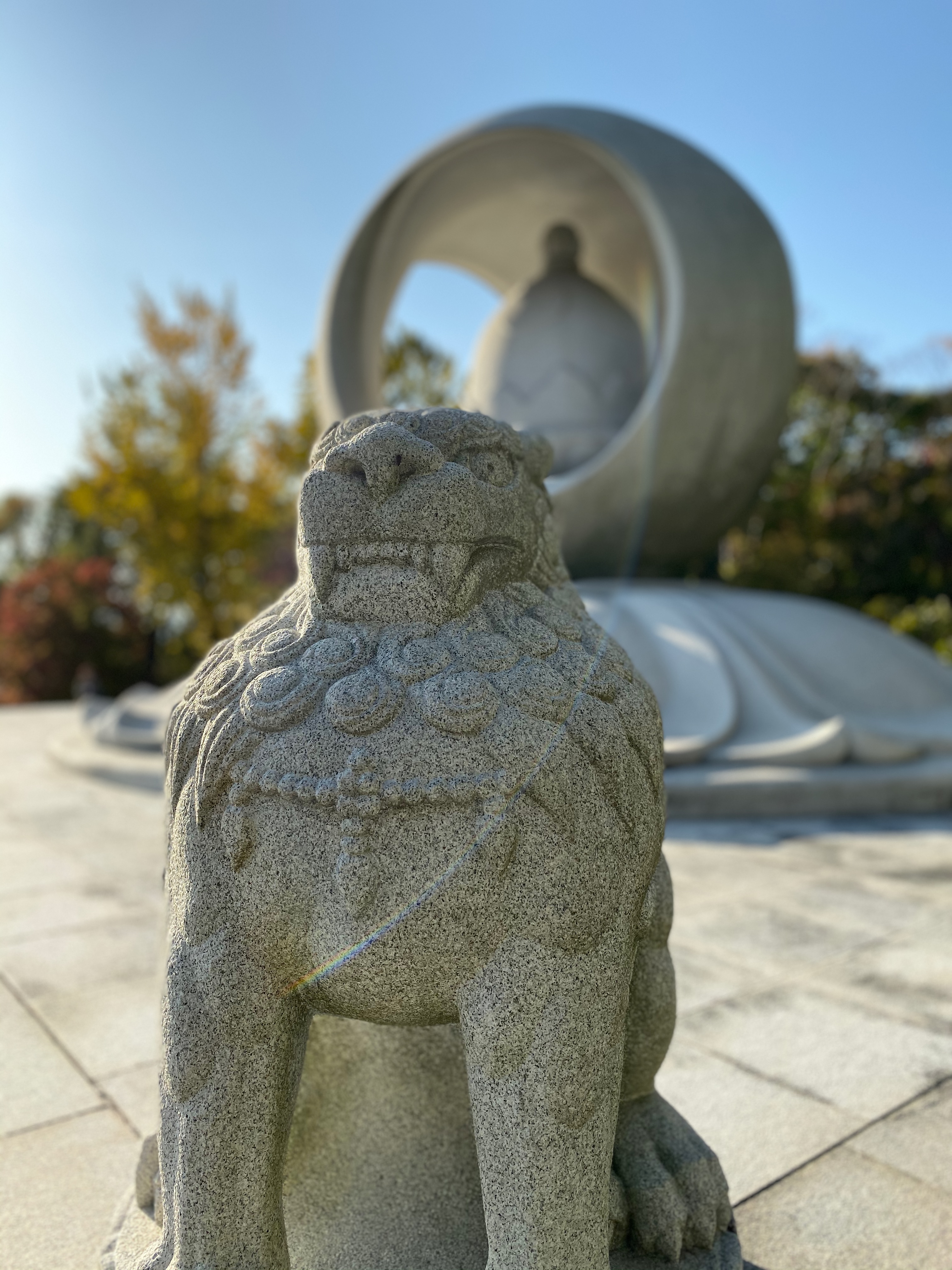 Namdaemun Gate, one of the eight gates along with the ancient fortress of Seoul in Joseon Dynasty, is only 5 mins walk from Namdaemun Market. Since we are in the vicinity, we decided to pop by Namdaemun Gate to take a look. There are signs along the road that leads visitors to Namdaemun Gate, which is the largest of the eight stone gates in Seoul. The double-tiered roof Namdaemun Gate was built in 1398 and was restored in 2013 following the infamous arson of the gate in 2008. The gate sits majestically in the southern part of Seoul, relinquishing its role from the main gate that welcomes the King’s return to the city in the ancient days to serving as a symbol of the Korean history. Visitors can get up close to Namdaemun Gate, walking through the gates like how previous Kings has done. However, the top levels of the gate are closed to visitors. Going up close to Namdaemun Gate, we can see the intricacies in the design of Namdaemun Gate, the top tiers of the gate are made of wood, brightly painted in traditional colours of green and mahogany found in Korean Palaces. There are some stone carvings of animals sitting on each of the two roofs of Namdaemun Gate, visible from the arch. We were in time for the change of guard ceremony at the time of our visit when we saw three Koreans dressed up in ancient guard uniforms crossing the road and heading towards Namdaemun Gate. As soon as they arrived, these guards matched towards the gate waiting for their colleagues to take over guarding of the gate. We stayed a little, wanting to watch the ceremony. But later learnt that the guards are not stationed at Namdaemun Gate, unlike those in Palaces such as Gyeongbokgung or Deoksugung. Moreover, the change of guard ceremony feels more like a show to entertain visitors with no commentaries, we decided not to wait for the change of guard ceremony and left for Suwon.
