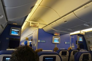 The KLM flight to Bali is the Boeing 777-300ER, which has only 2 classes. The seats in the Economy Class is decked in blue colour, which gives one a refreshing feel. The cabin looks clean and vibrant with the colour chosen.