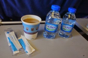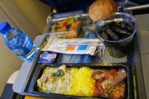 The meal is fairly tasty and is being served around 30 minutes after taking off. The pursuers will come round in their food cart asking passengers which option they prefer for a meal. Meals comprises of salad as the appetiser, a bun and a main meal. I opted for chicken curry rice, the spicy level of the curry is mild however the rice is rather tasty. Coffee or tea is being served after the meal trays are being collected for guests to enjoy.