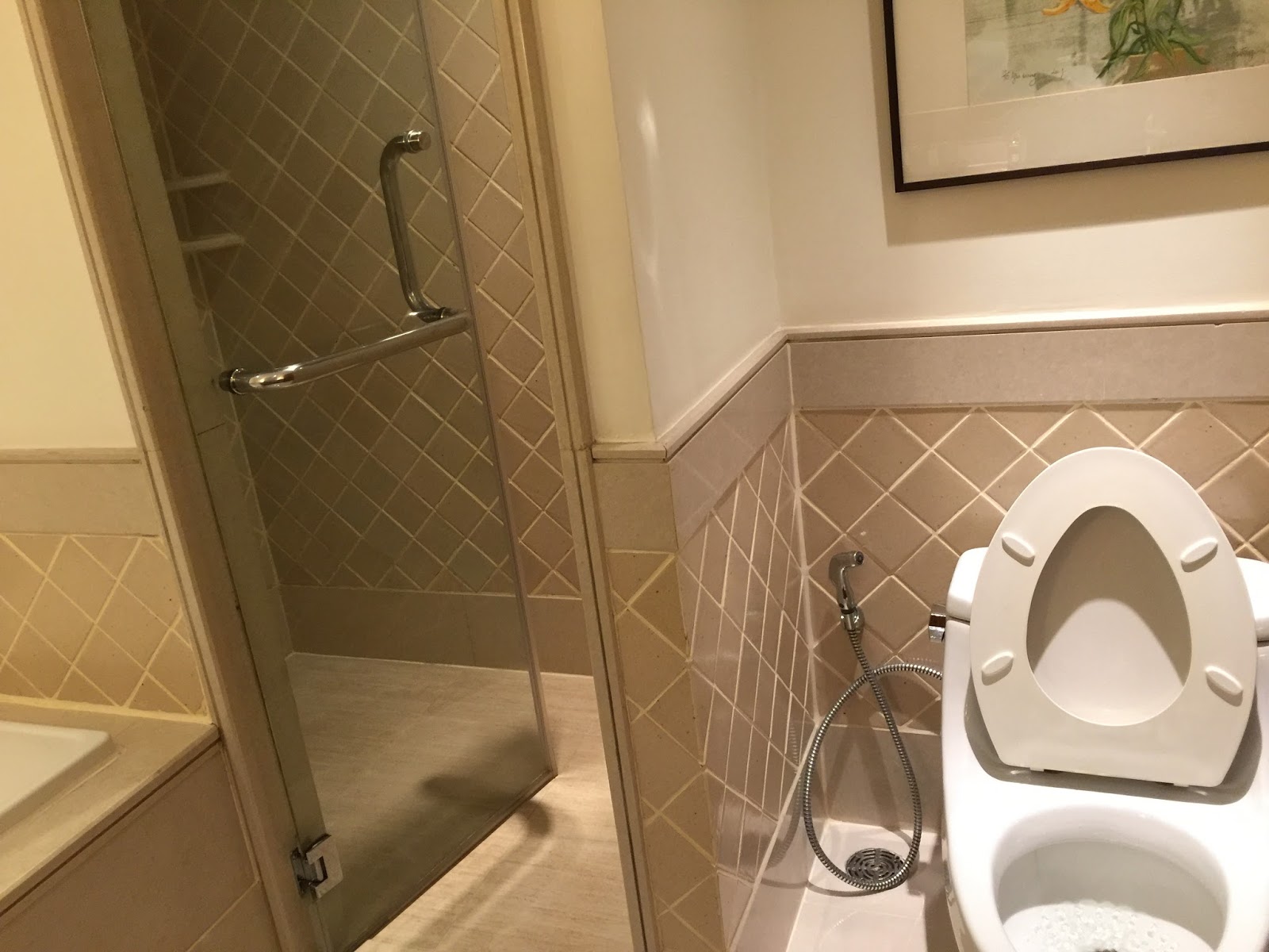 There are two bathrooms in this Mayfair Bangkok 2-bedroom apartment. One of the bathrooms is located inside the Master Bedroom. This is the bigger of the two bathrooms. What caught my eyes as I enter this bathroom is the bathtub, placed at one end, next to the sink area. The Bathtub is rather small and shallow, but does the job of providing one with a good soak. The sink area is next to the door. There is only one sink, sitting on the marble laid counter top. It is rather roomy at the sink area for guests to place additional toiletries. Opposite the sink area, and in a rather weird place is the toilet bowl. When one open the door to the bathroom, the toilet bowl looks somewhat hidden behind the door. There is also a walk-in shower that comes with a rainshower head and a regular shower head, separated by a glass door, which segregates the wet and the dry area.
