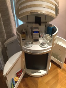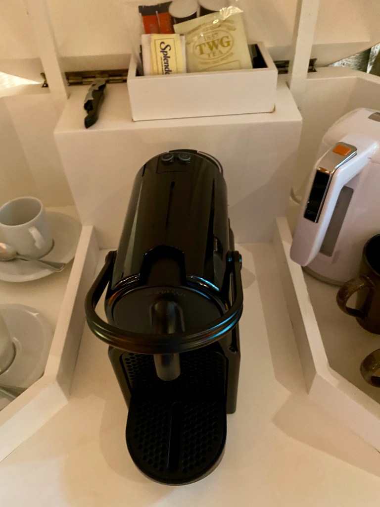Unlike Villa 2, where we stayed last year (click here for my post on Villa 2), which has the pantry as a separate room next to the dining area, the pantry in this villa (4) adopts an open concept and is integrated into the living room. A bar counter separates the pantry from the dining area and gives us space to stow some of the snacks we brought. The pantry also housed the mini bar, where we found the top-of-the-range Nespresso Coffee machine, an electric kettle with all the complimentary coffee pods and tea bags, and the mini fridge hidden in the cabinet at the pantry. The pantry has a kitchen sink, giving us the convenience of simple washing. However, the resort does not provide dishwashing detergents.