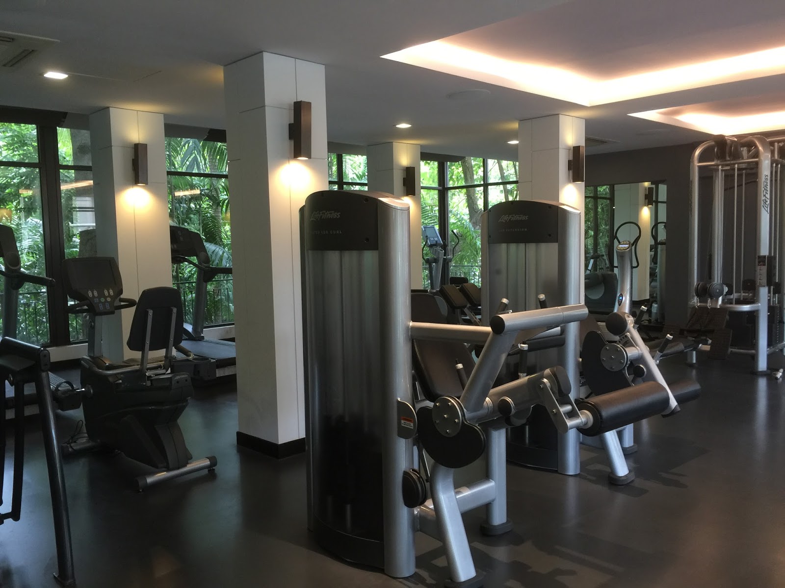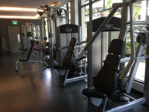 A small gym in Sofitel Sentosa Resort & Spa is next to the swimming pool and is open 24 hours a day. The resort used to have a relatively large gym off-site, next to the spa area. However, the land has been allocated for the development of Raffles Sentosa. Despite its small size, the gym has a good mix of cardio and strength training machines.