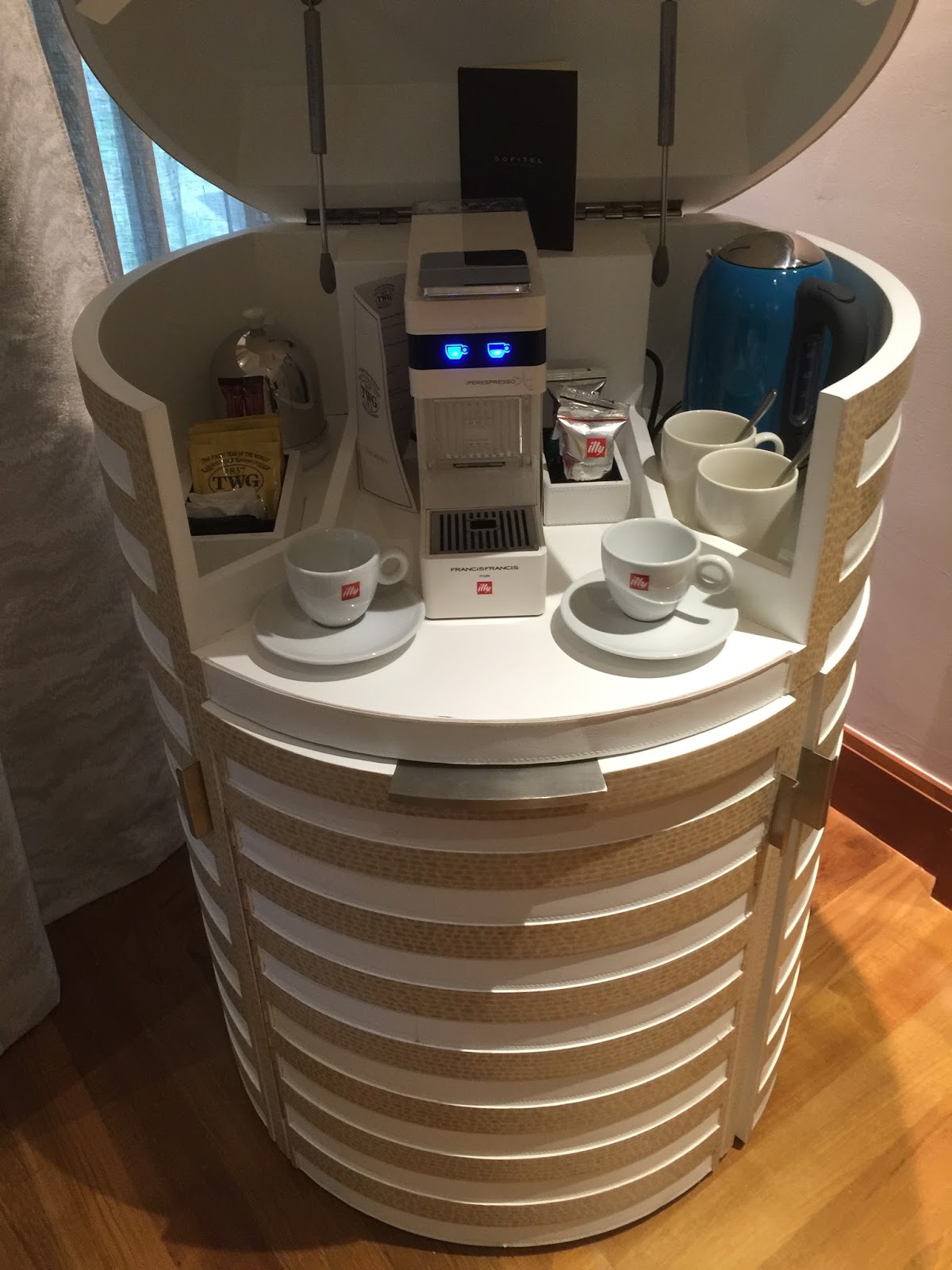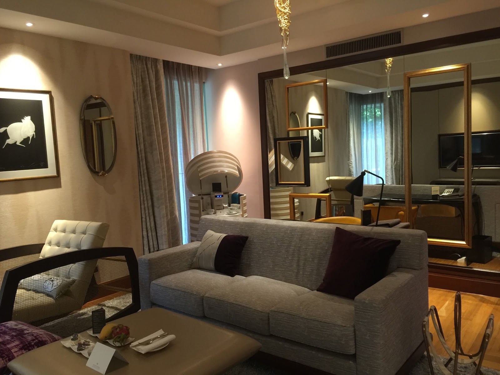 Sofitel Sentosa Resort & Spa furnished its Villa du Jardin with a round dining table that can sit up to four pax, providing us with a space to dine properly. Despite the simple furnishing, the artistic chandelier above the dining table reinforces the French flair in this part of the living room. I find the size of the dining table just for four pax to dine. But if the villa is occupied to its full capacity of six, there will be insufficient space for all six occupants to dine at the same time.