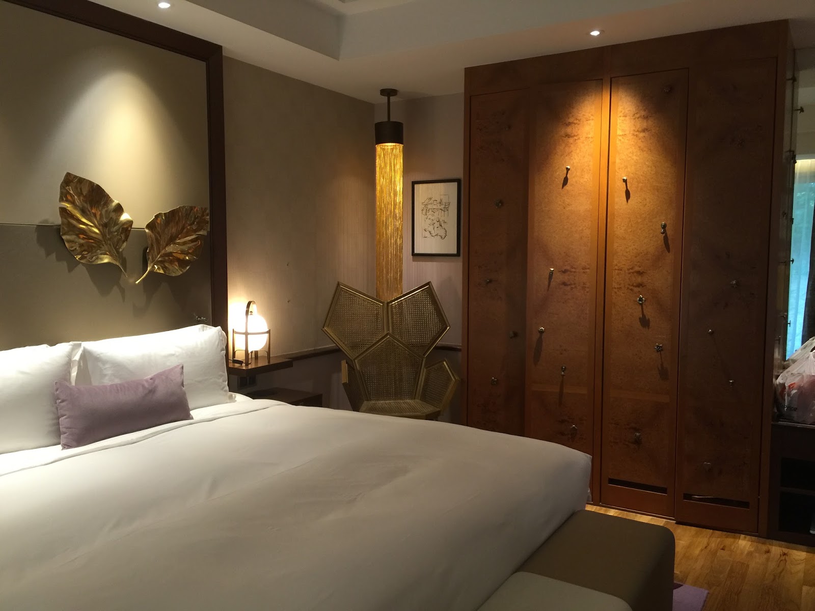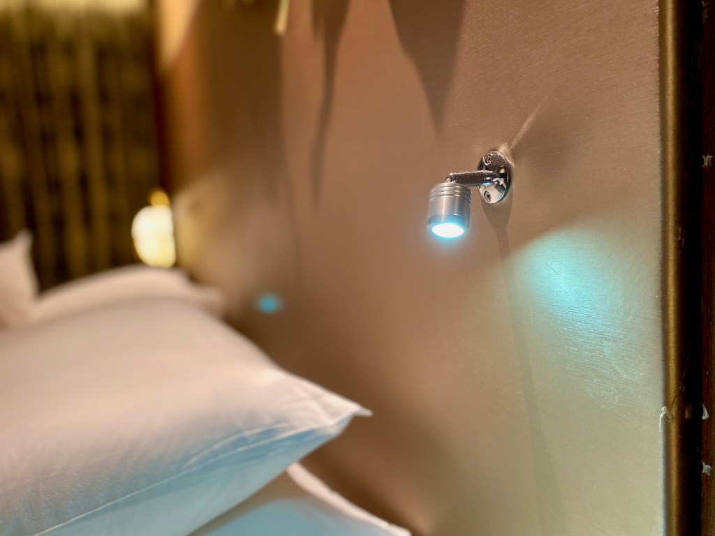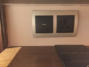 The two bedrooms in the Villa du Jardin occupy the living room space at both ends. The master bedroom occupies the wing to the left of the living room from the villa’s main entrance. The master bedroom has a contemporary French decor, using mainly dark tones with hints of soft colour, giving this room a comfortable and relaxing vibe. The king bed sits in the centre of the master bedroom. Topped with a thick, firm mattress, the king bed produces excellent sleep quality. I find it weird that only the side nearer to the bathroom has a bedside table mounted onto the wall of the bedroom. Despite having a bedside table, only light switches were fitted onto this side of the bedroom. Instead, power outlets and charging ports were found on the side, which was not furnished with a bedside table.