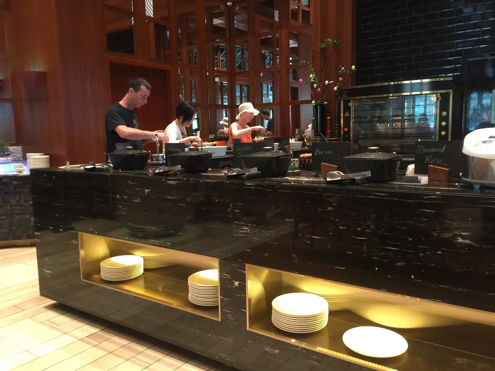 Service at the restaurant is generally good. We were warmly welcomed by the staff at the entrance and prompted to our seats. The servers were attentive despite the busy morning breakfast rush hour, and our plates were cleared every time we left to grab more food. However, I observe somewhat inconsistent service. We were not asked if we wanted coffee when we were seated at our table, but I observed the same server asking guests at other tables for their choice of beverage when sitting. While plates are cleared promptly, somehow, the staff will always leave one or two empty plates on the table.