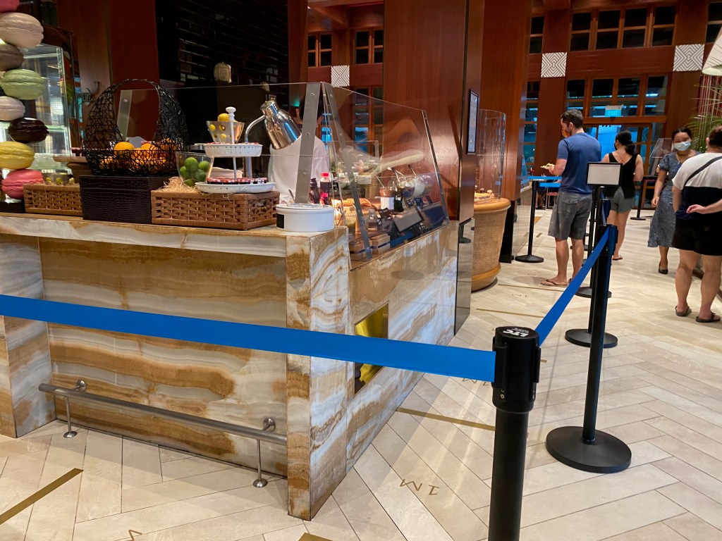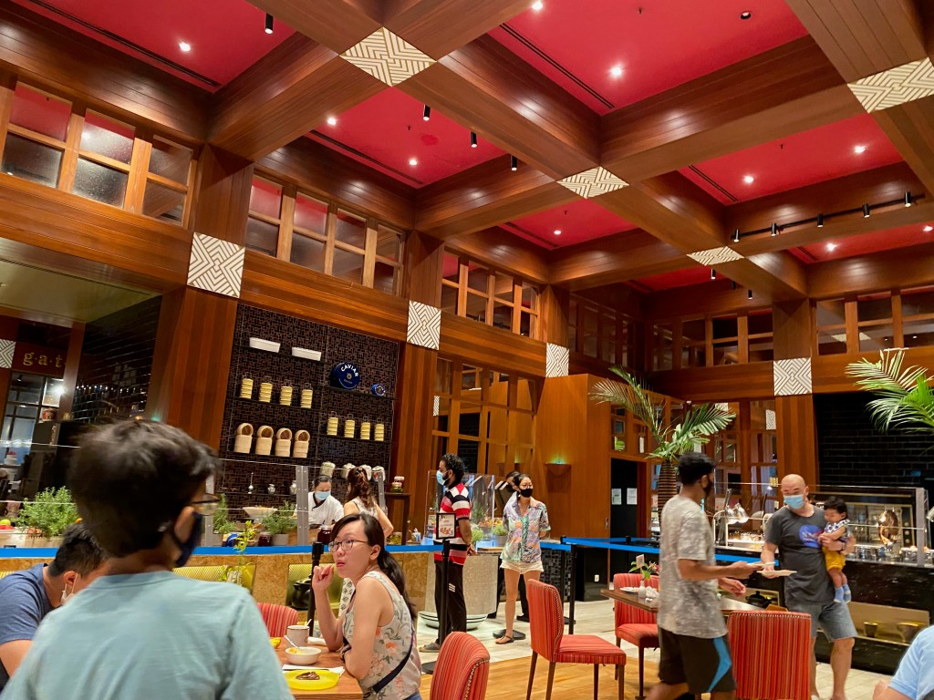 Breakfast is available in the resort’s main restaurant – Kwee Zin, opposite the reception. Breakfast consists of a mix of Western and local flavours. The buffet breakfast is served both indoors and outdoors. A bulk of the food, such as pastries, egg stations and salads, to name a few, are found in the indoor buffet section. A small section of local flavours like the laksa, noodles and congee are served in the outdoor buffet line. The food served during breakfast was tasty, and the staff topped up the food constantly. I highly recommend laksa, which is flavourful with strong hints of coconut. Seatings likewise are segregated indoors and outdoors, with indoors having fewer seatings. I prefer the indoor table as the resort is pet-friendly; guests would bring their pets for breakfast. Guests allergic to dog fur should insist on sitting at the door. Perhaps due to the busyness during breakfast, the restaurant staff might be unable to check if nearby guests are allergic to dog fur.
