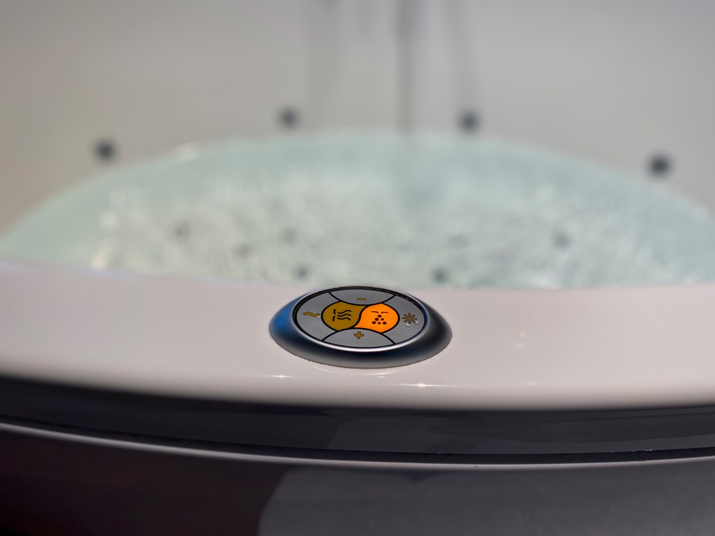 Further into the bathroom, it is difficult to ignore the standalone bathtub sitting at the end of the master bathroom. This jacuzzi tub is huge, and the bubbles produced by the jets are powerful. Soaking in this tub melts any fatigue away. There is another outdoor shower accessible via the glass door on the right of the tub. Between the bathtub and the sinks are the shower and toilet cubicles sitting across each other. I find the space in these cubicles to be sufficiently large. The shower cubicle was installed with both a rain and regular shower head.