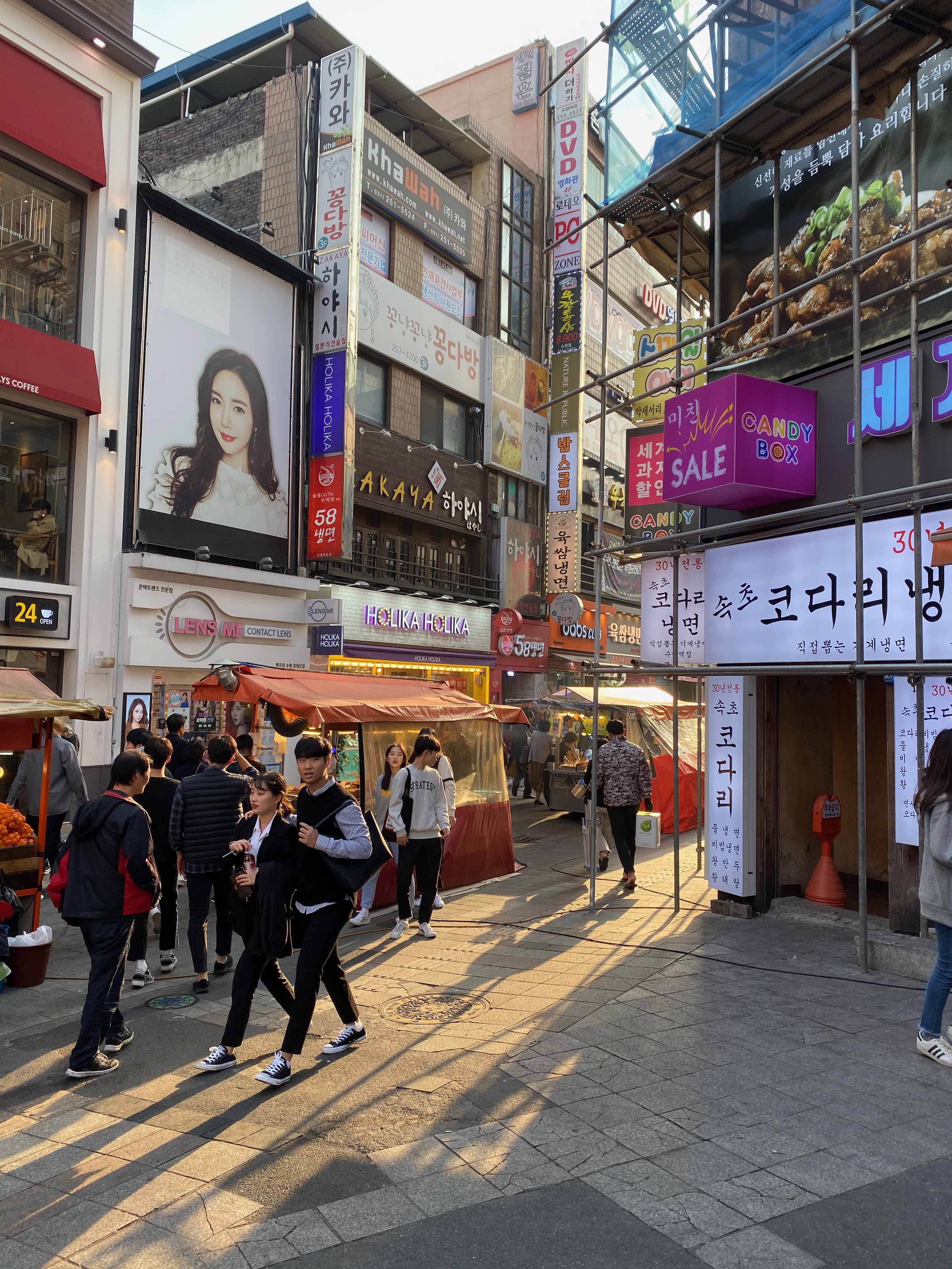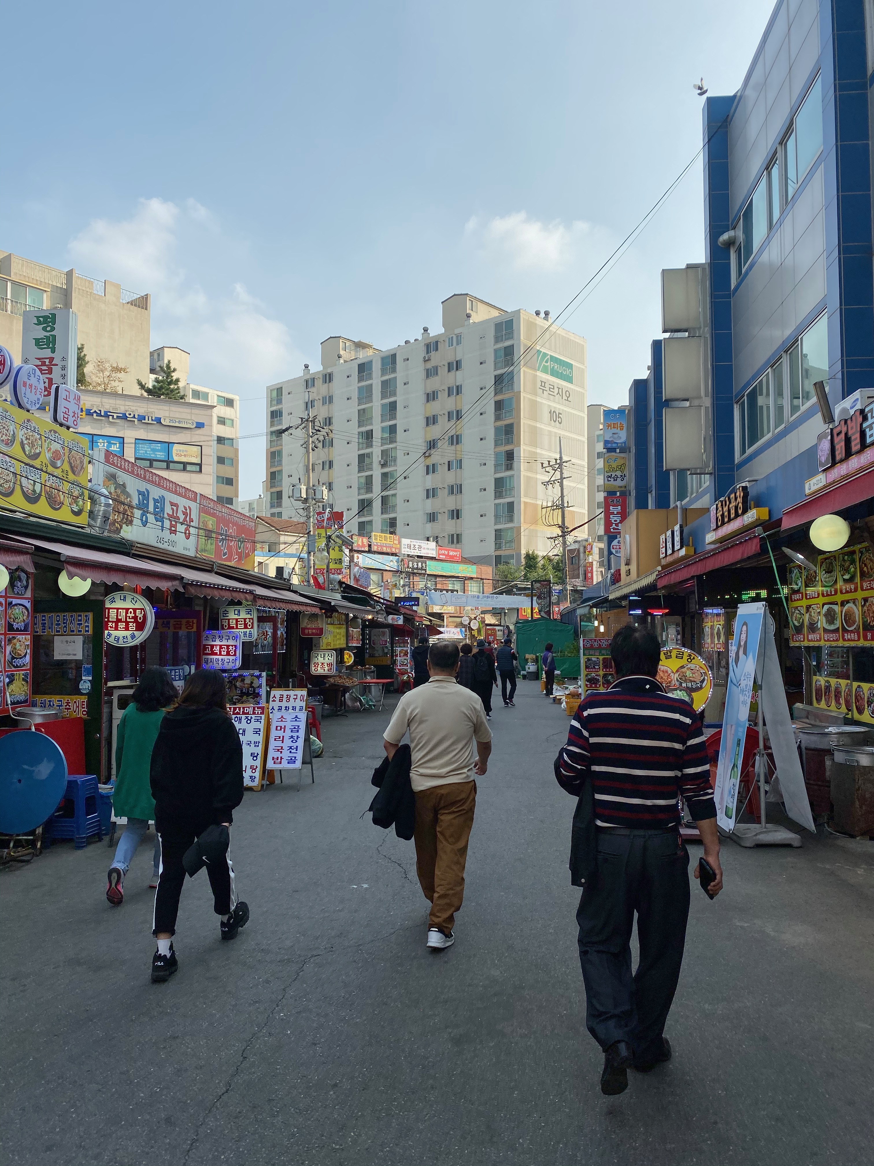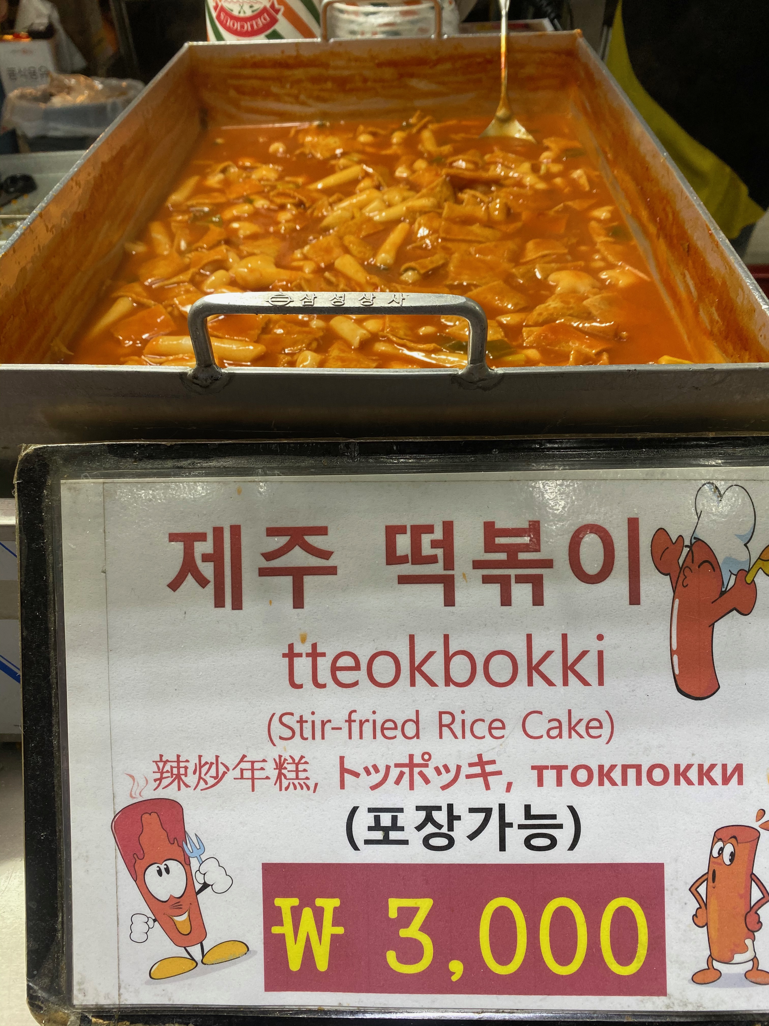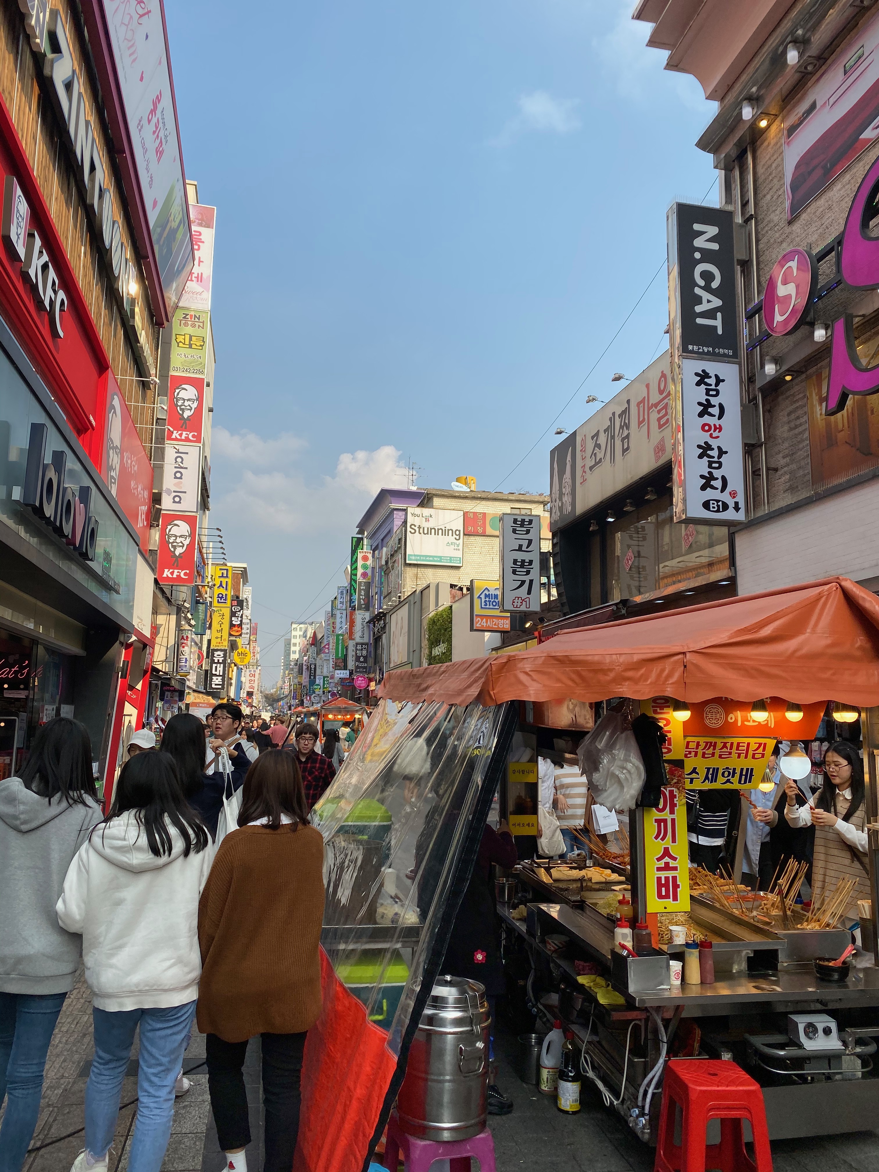 There is a shopping street opposite Suwon Station with push carts selling street food