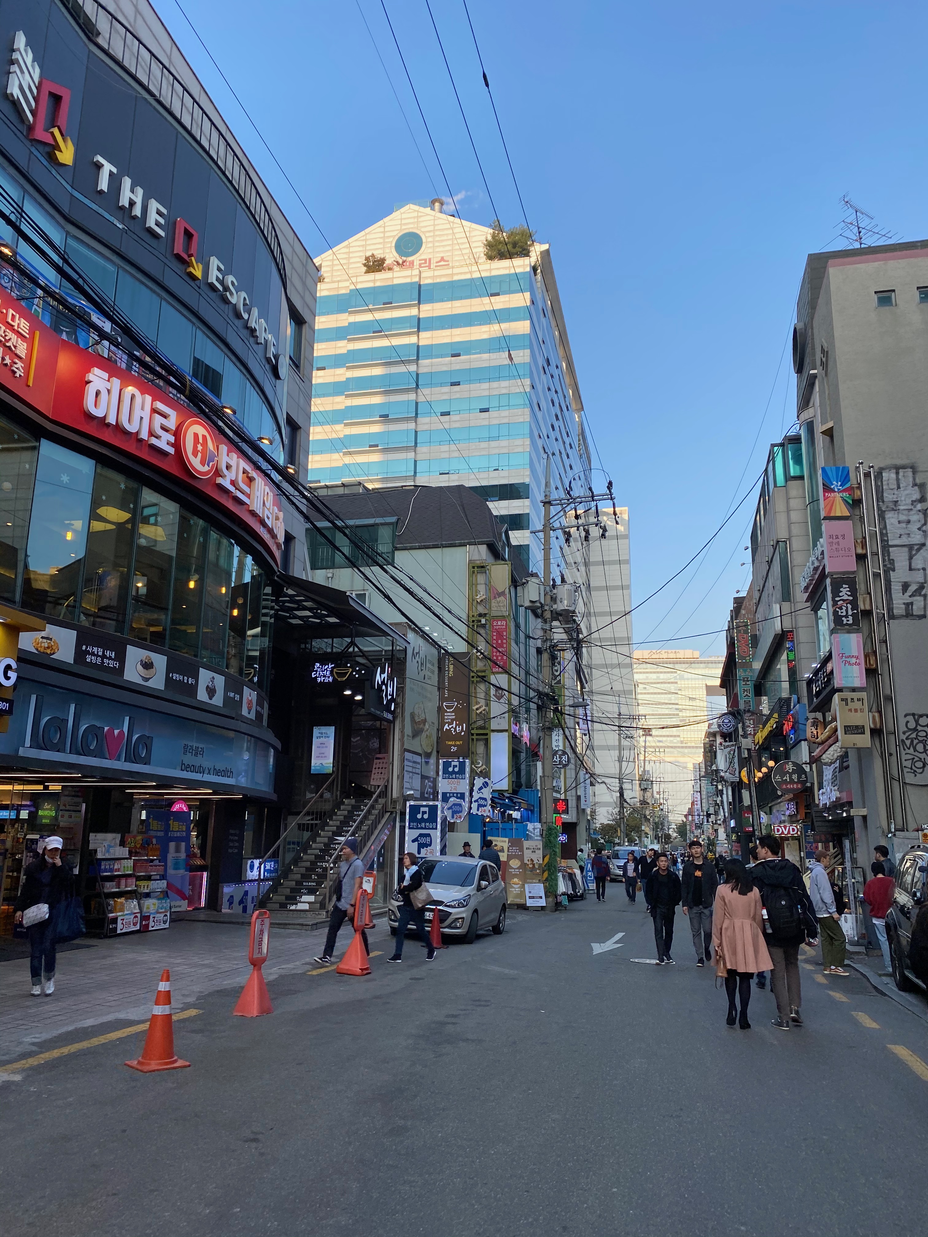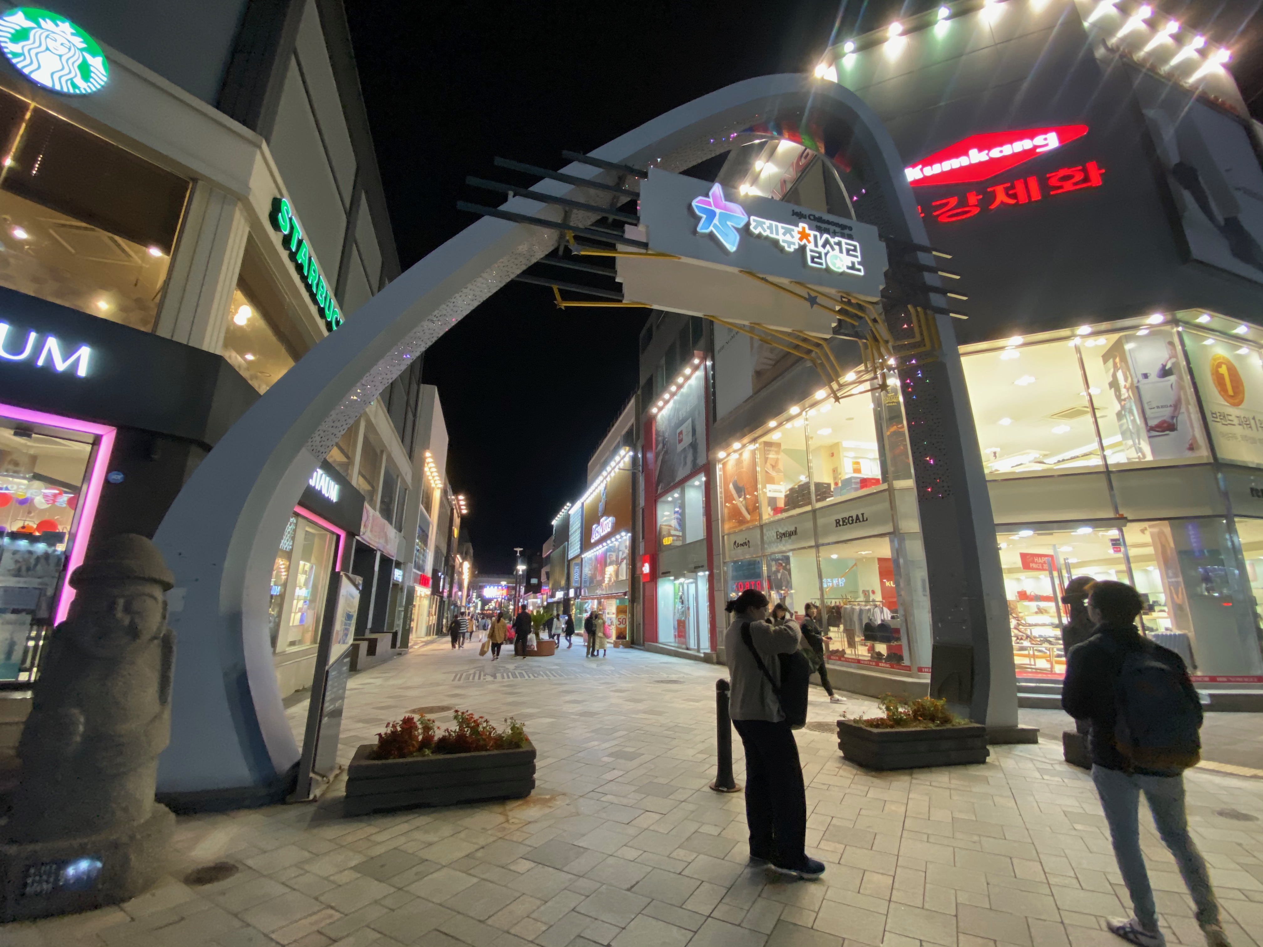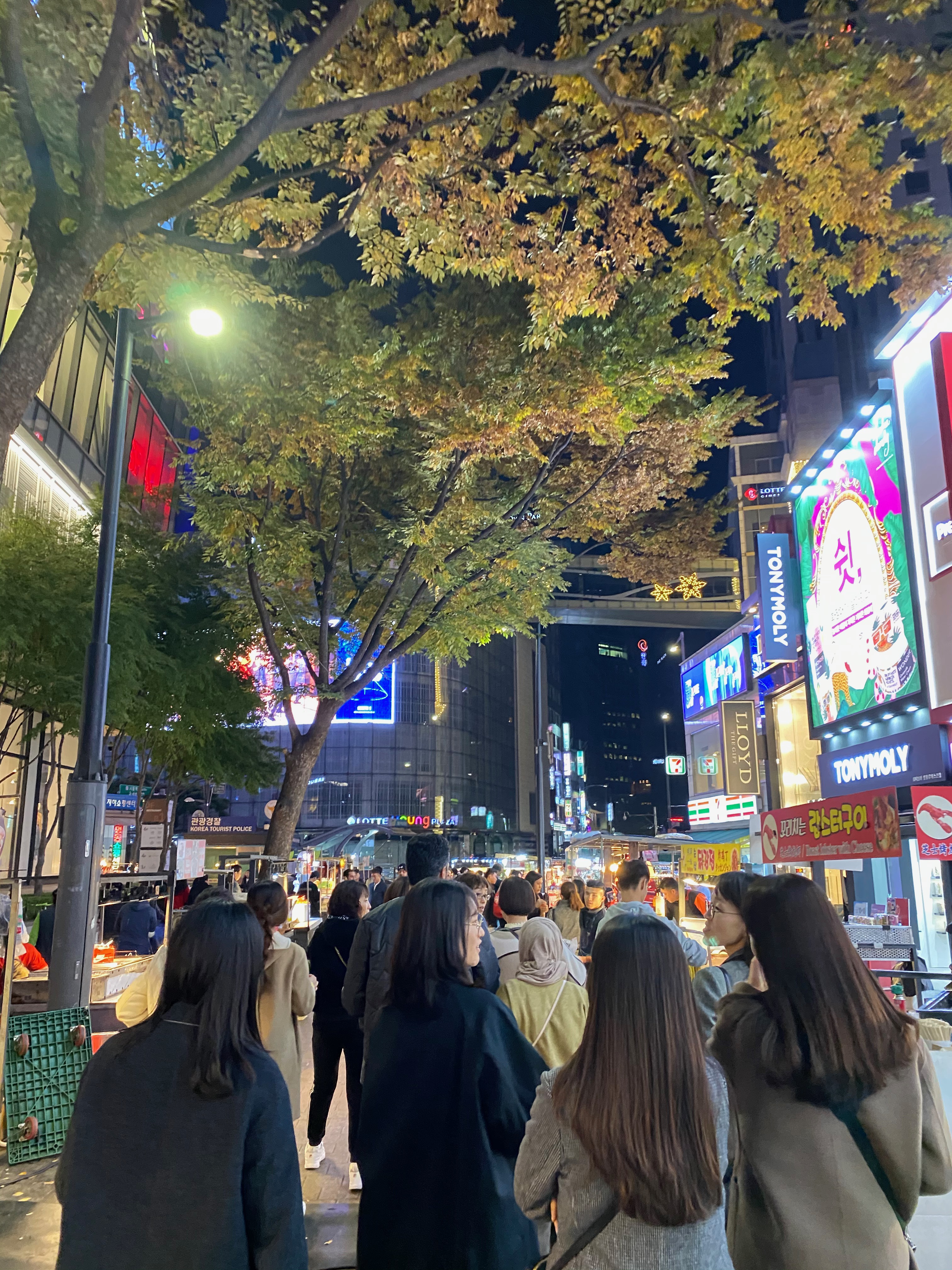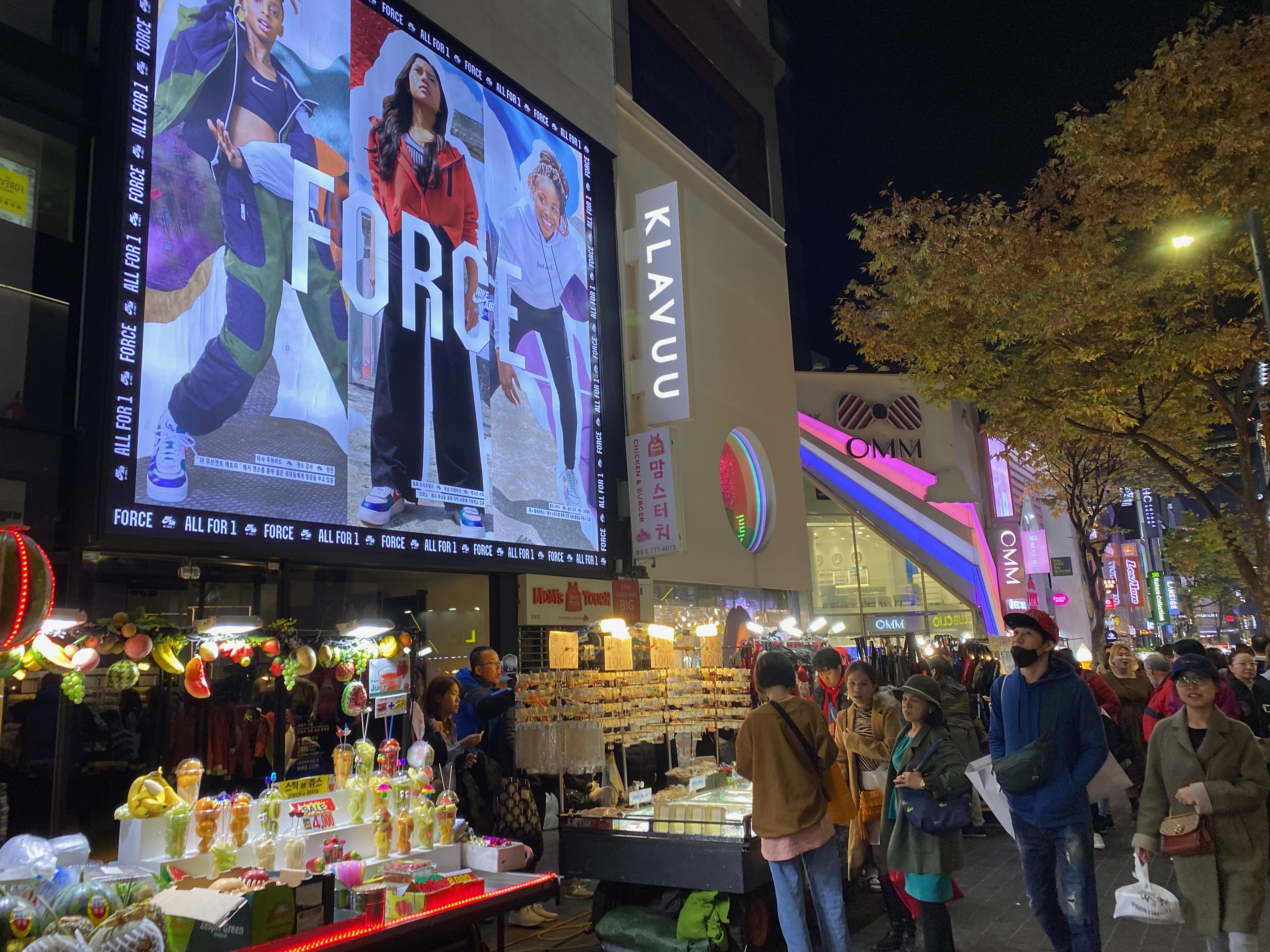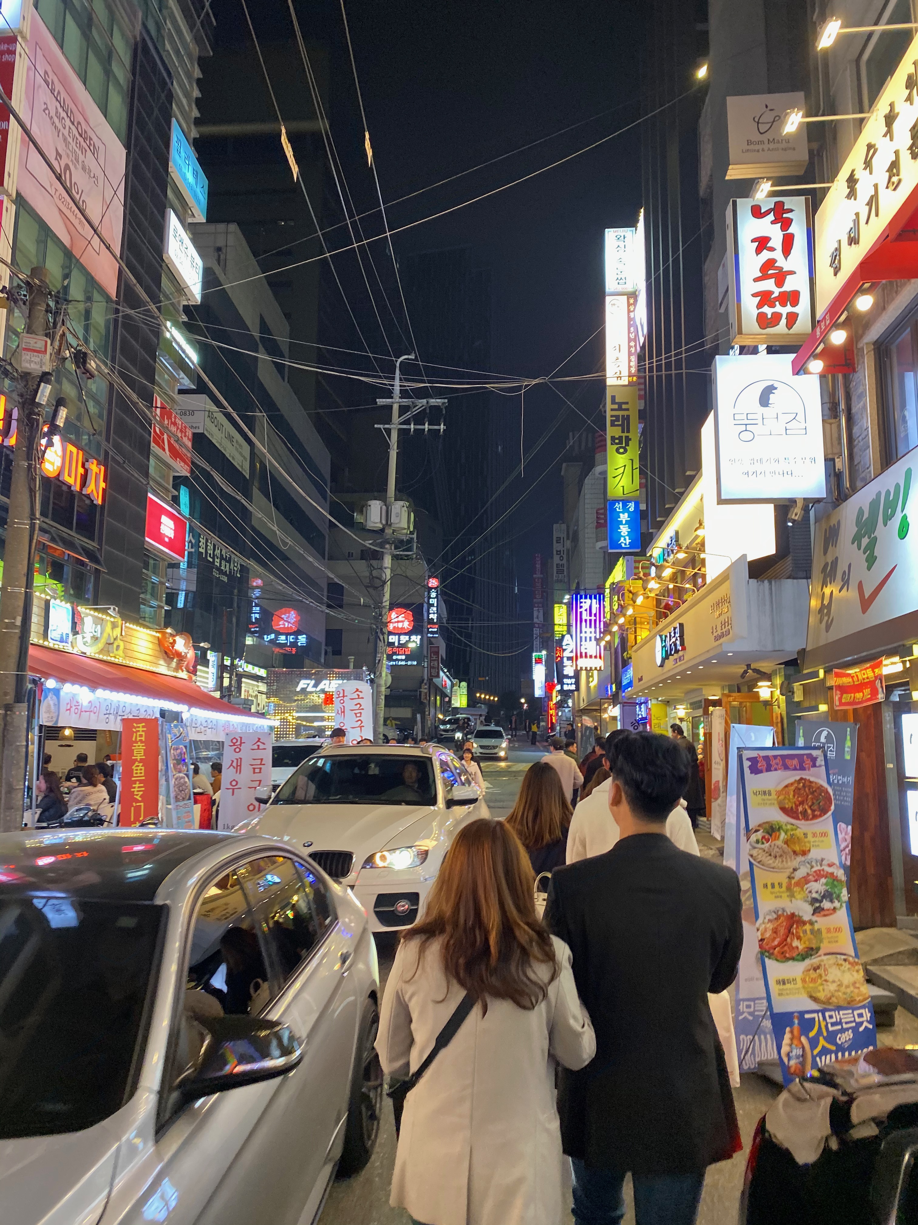 There is a shopping street opposite Suwon Station with push carts selling street food