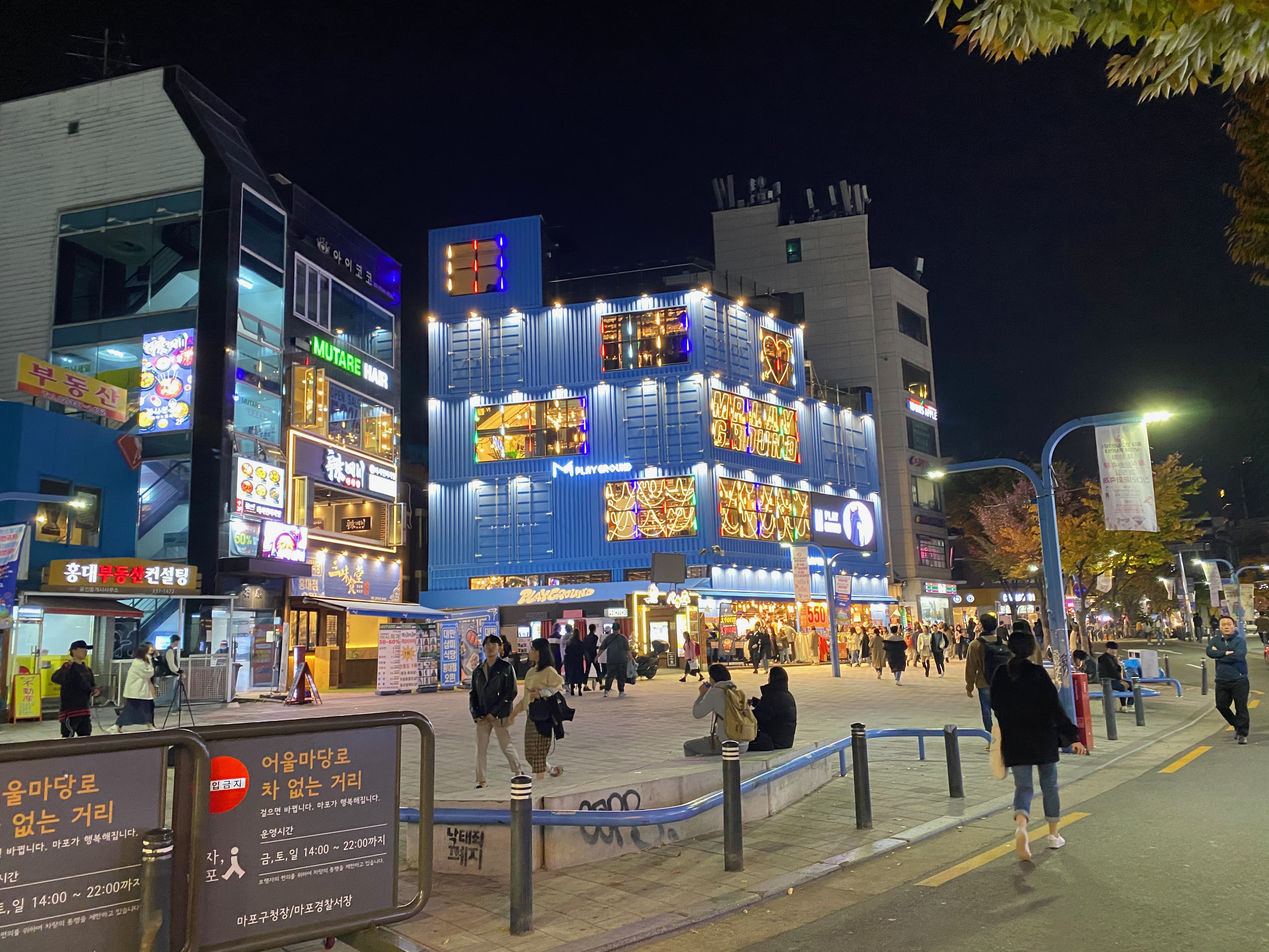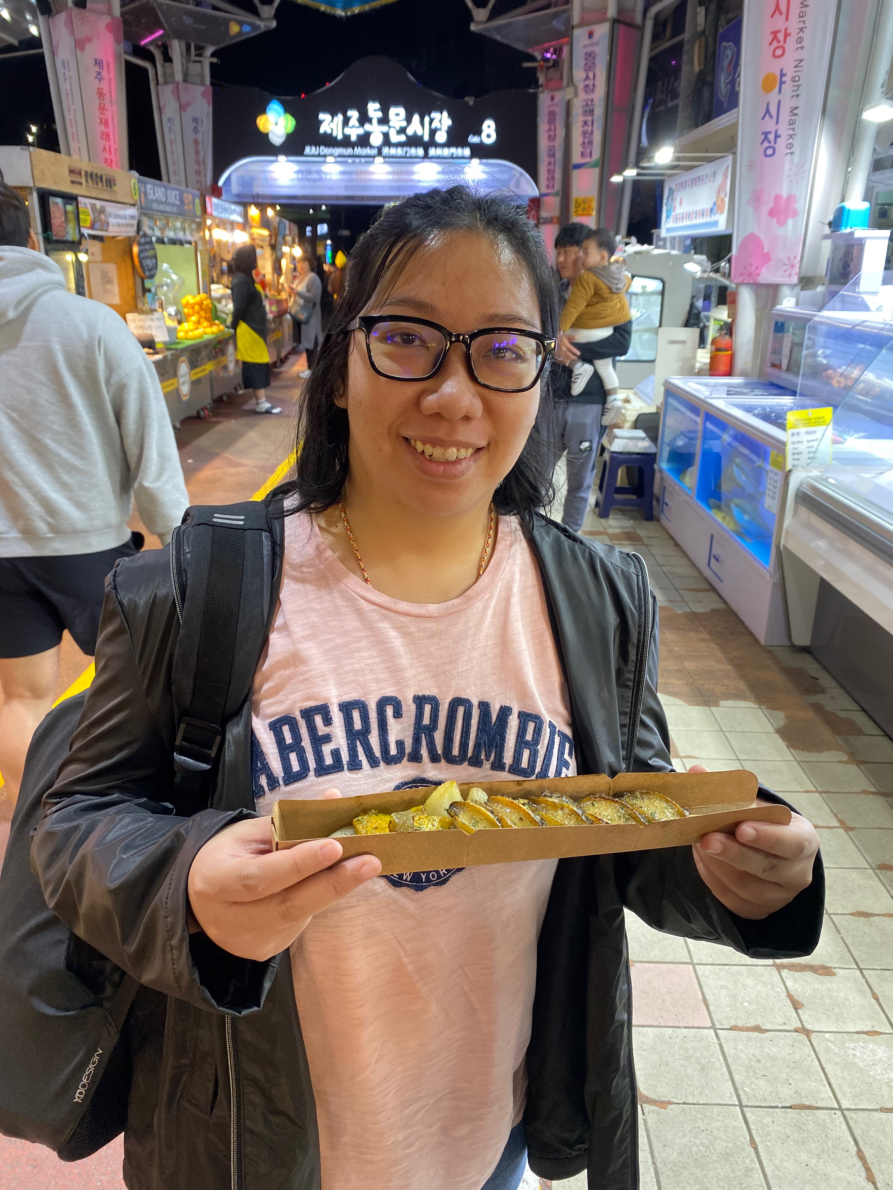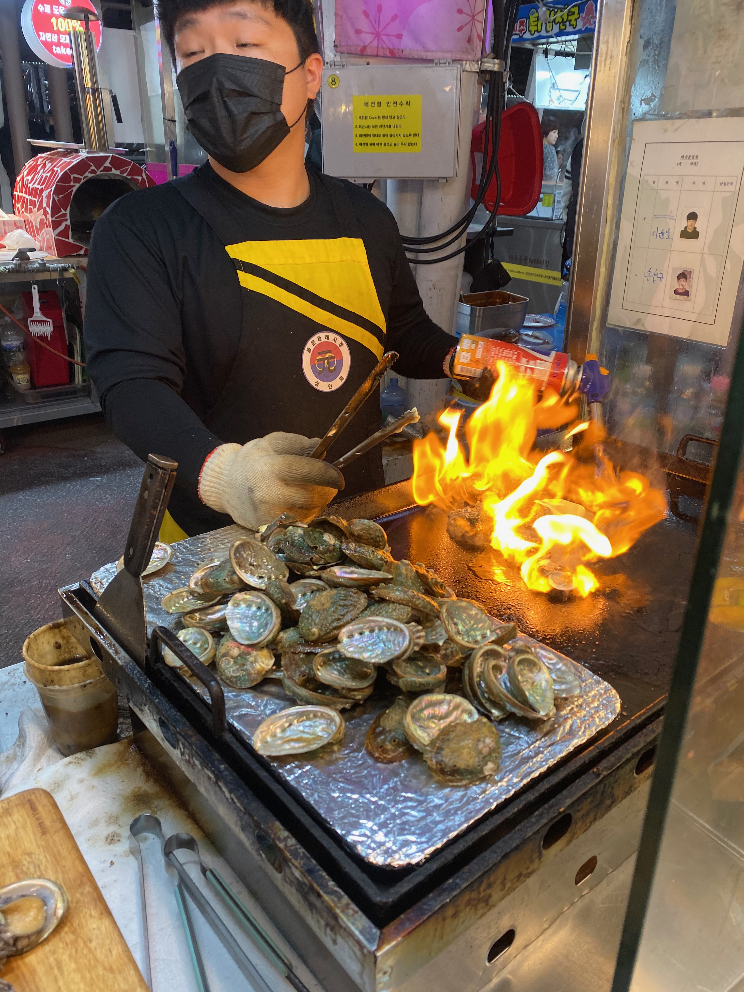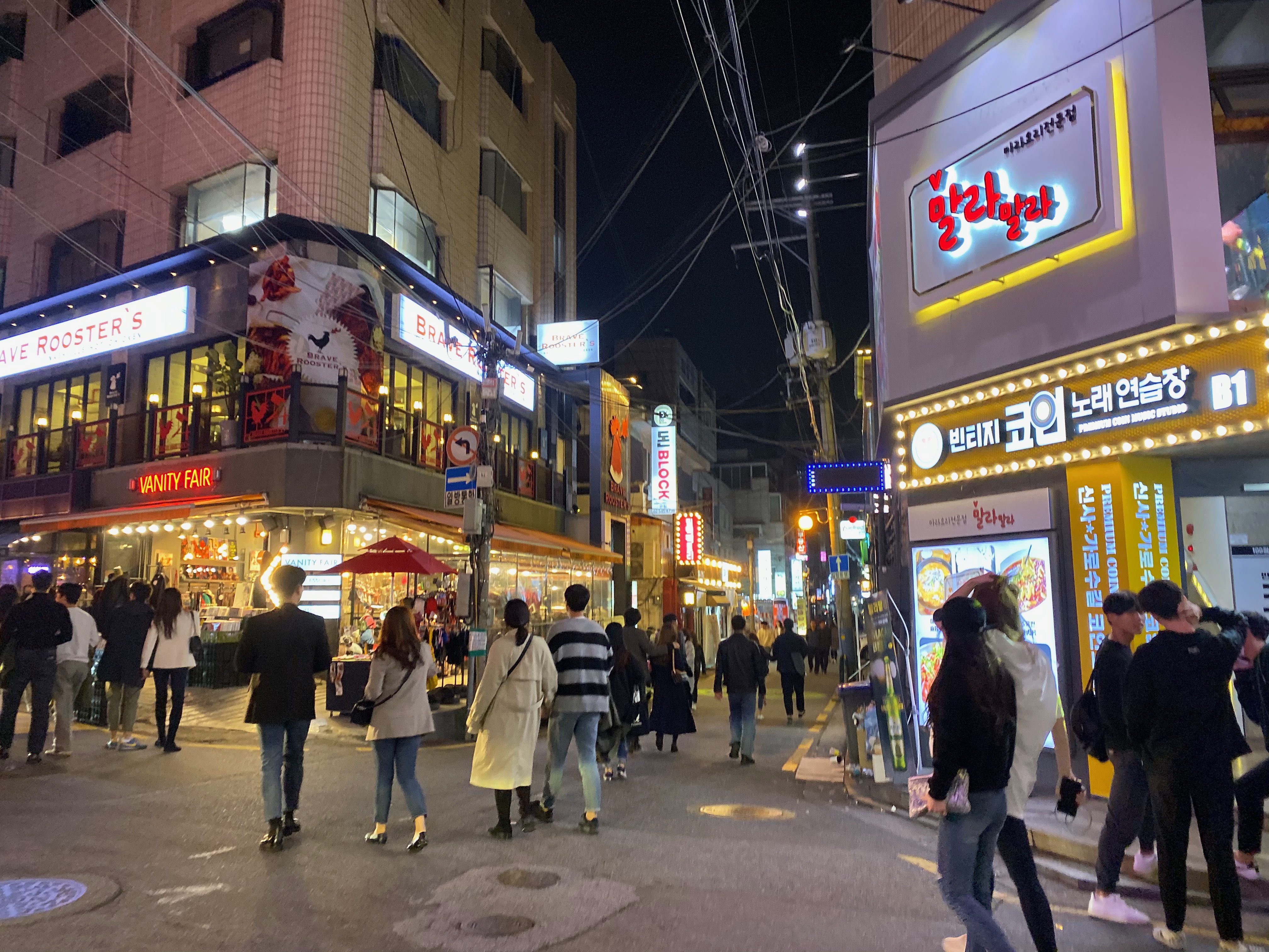 There is a shopping street opposite Suwon Station with push carts selling street food