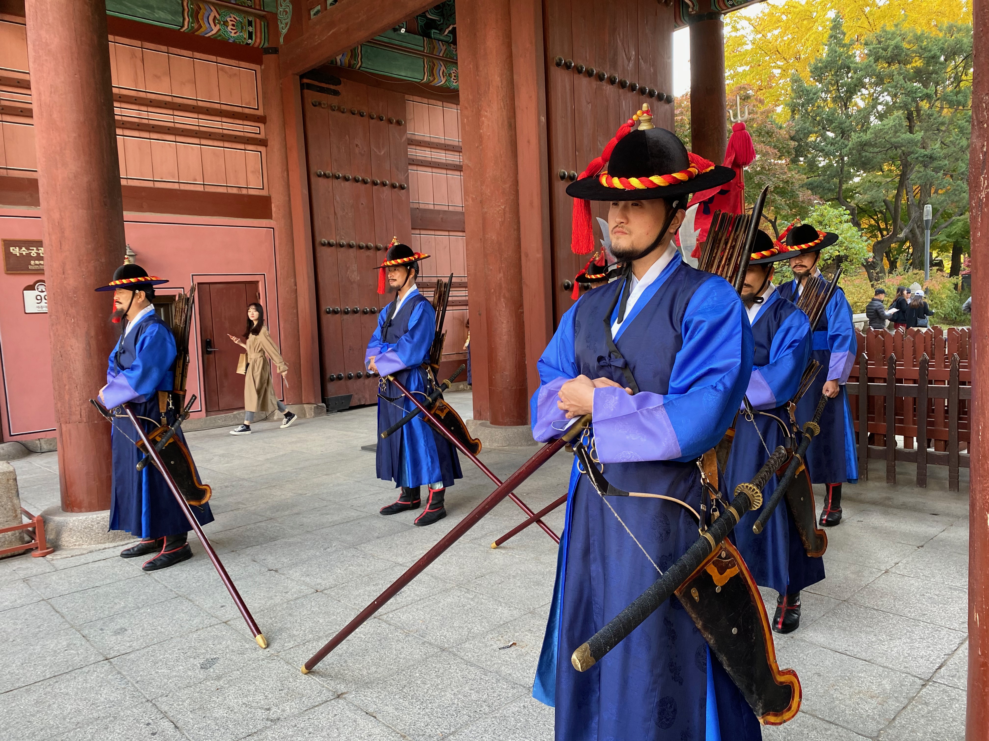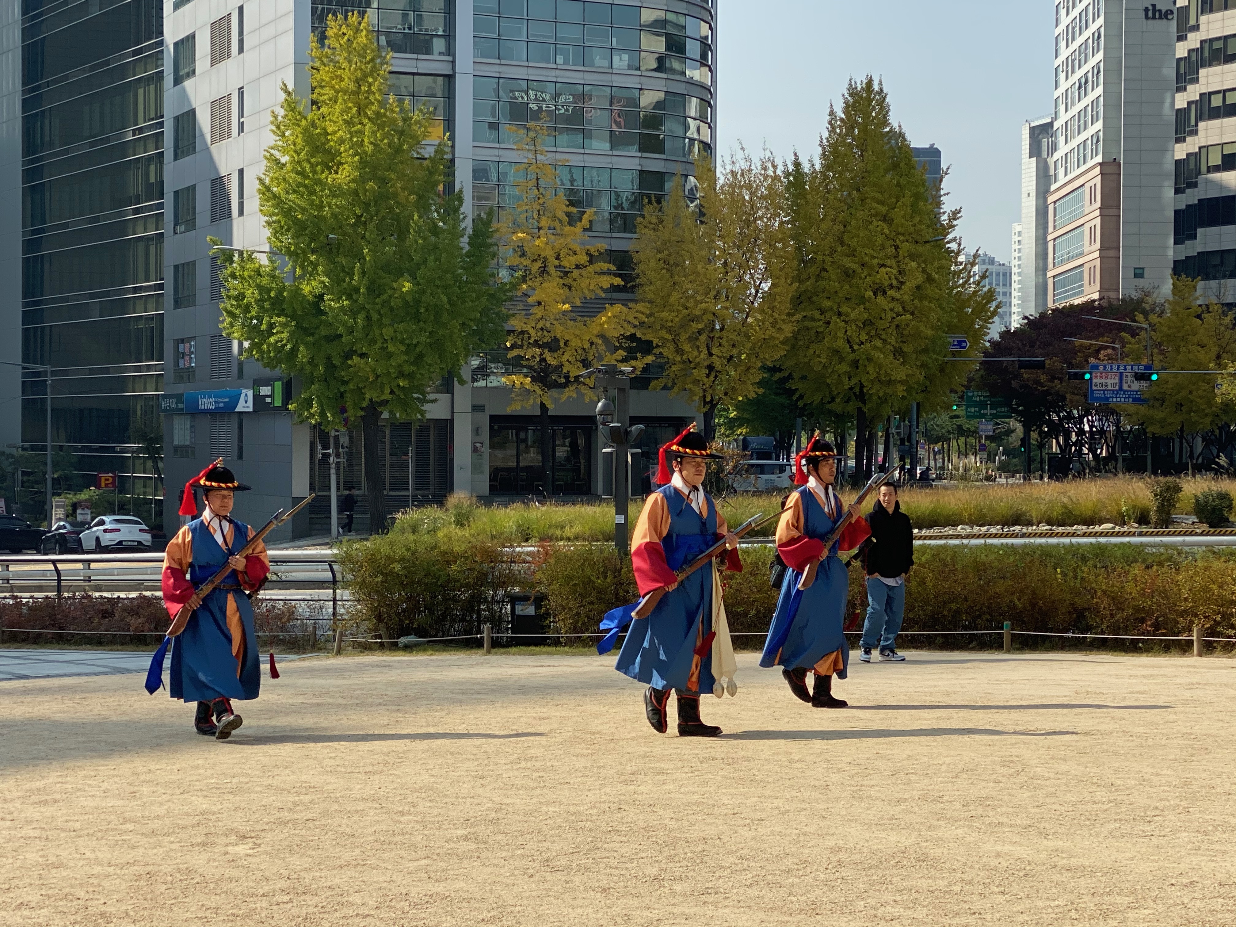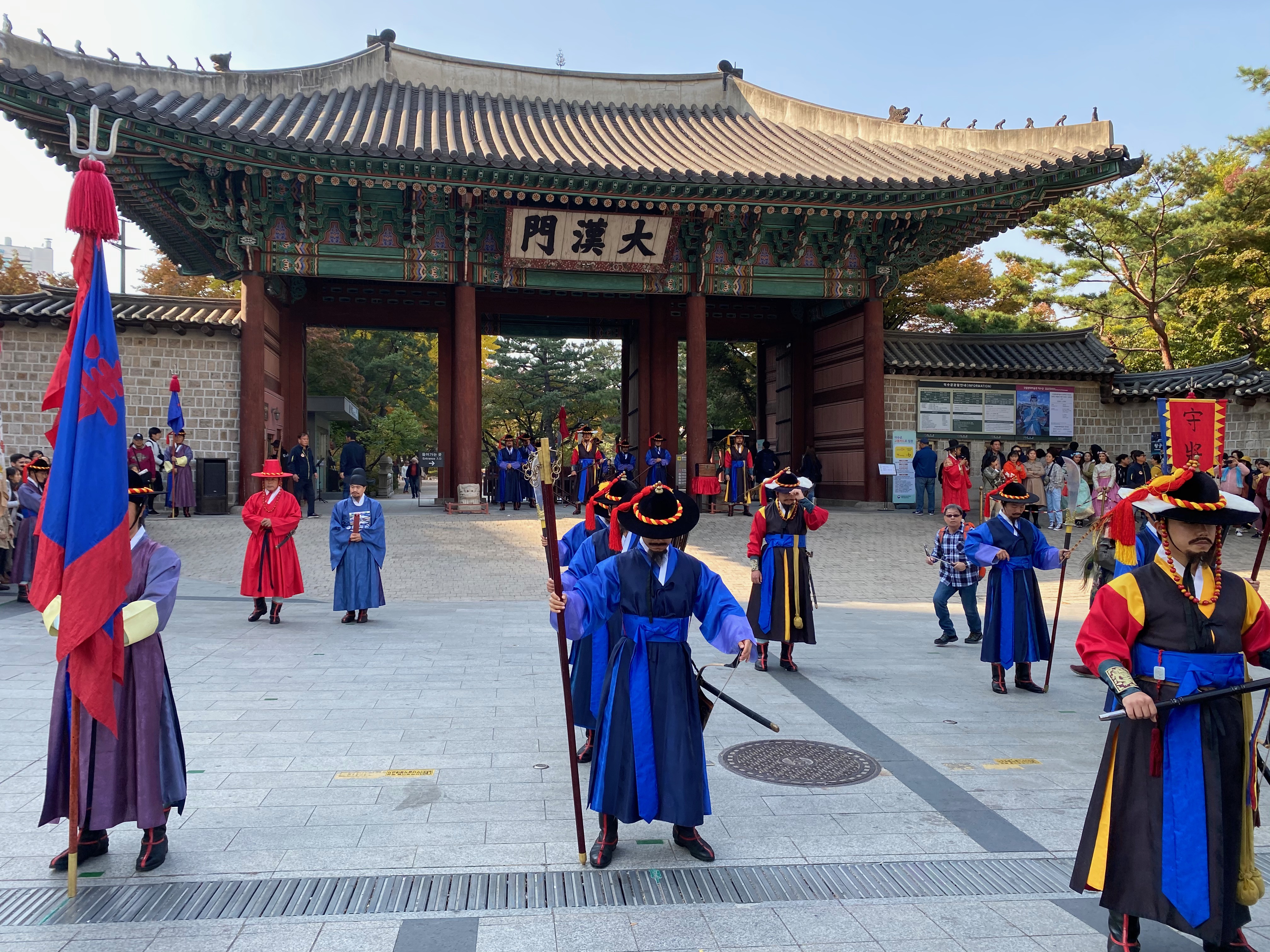 Actors getting ready for the change of guard ceremony at Namdaemun Gate