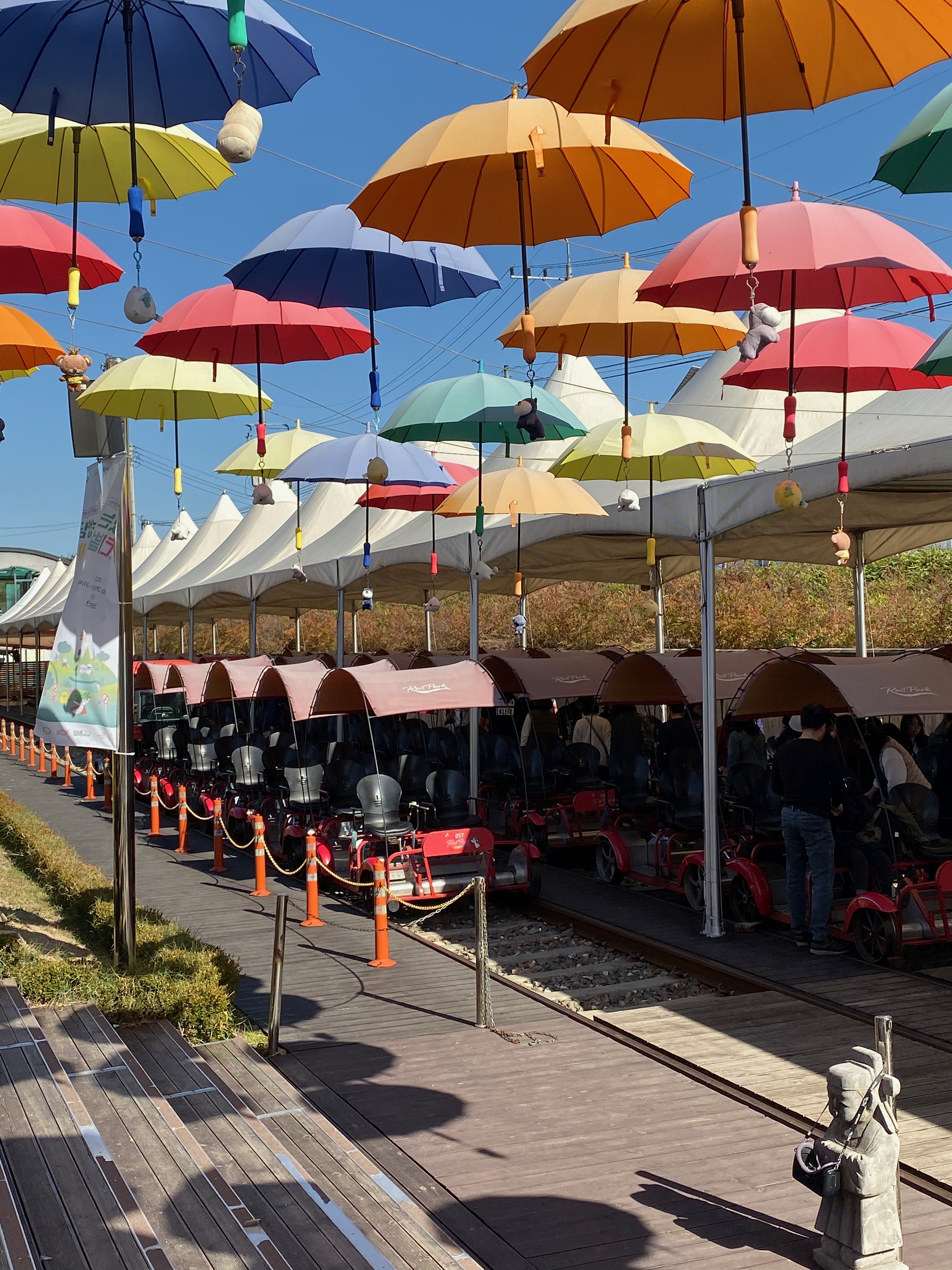 After lunch, we headed to Hwaseong Haenggung, which is the largest temporary palace outside of Seoul, used by the Korean King in Joseon dynasty during war or whenever he visits the tomb of his father. We took a 10 mins bus from outside Suwon Station to Hwaseong Haenggung. The Naver Map app (I can’t recommend this app enough for travels in South Korea, whether one is driving or not) indicated the number of bus stops before we arrive at Hwaseong Haenggung, and I conscientiously counted the number of stops to prevent history from repeating.  The last time my friend and I were here we missed the bus stop and ended up getting lost in Suwon. Three years ago my friend and I did not manage to visit Hwaseong Haenggung as it was about to close when we arrive at the palace. This time around, we ensured that we cater enough time before it closes to visit the palace. Looking at the main entrance, my first impression of Hwaseong Haenggung is that it is a very small palace. The main entrance to the palace is a two-tiered wooden gate that seems inconspicuous with the building around it. It does not command the majesticness that the other palaces in Seoul do. Passing through the main gate, we came into a large empty courtyard surrounded by short walls. This is the largest single space in the entire Hwaseong Haenggung. The sanded courtyard is laid with flags and a couple of cheesy standees of characters from the Korean drama which was shot here at one corner. At the end of the courtyard is set of three wooden doors which led us to a very small second courtyard with another set of wooden doors literally steps away. Passing through the second set of doors, we come to another courtyard, smaller than the first one, with the main audience hall sitting at the end of the courtyard. This audience hall is a small building with a large opening looking out into the courtyard. Inside the audience hall, there is only space for the king’s throne and small tables with four cushions. I can imagine the king’s officials would speak to him from outside the audience hall, after all, Hwaseong Haenggung is not used as a main residence for the king. Hwaseong Haenggung is also used by the king to celebrate his mother’s 60th birthday, in fact, there are displays near the audience hall to give visitors an idea of the food being prepared for the celebration. We went around exploring the different parts of Hwaseong Haenggung, there is a sleeping quarter next to the audience hall where the king and the queen used. The sleeping quarters for guards and servants are located to the front left part of the palace. Each quarter is no large then a pod where the residences used to do other things like sewing and preparing court documents other than using it to sleep.