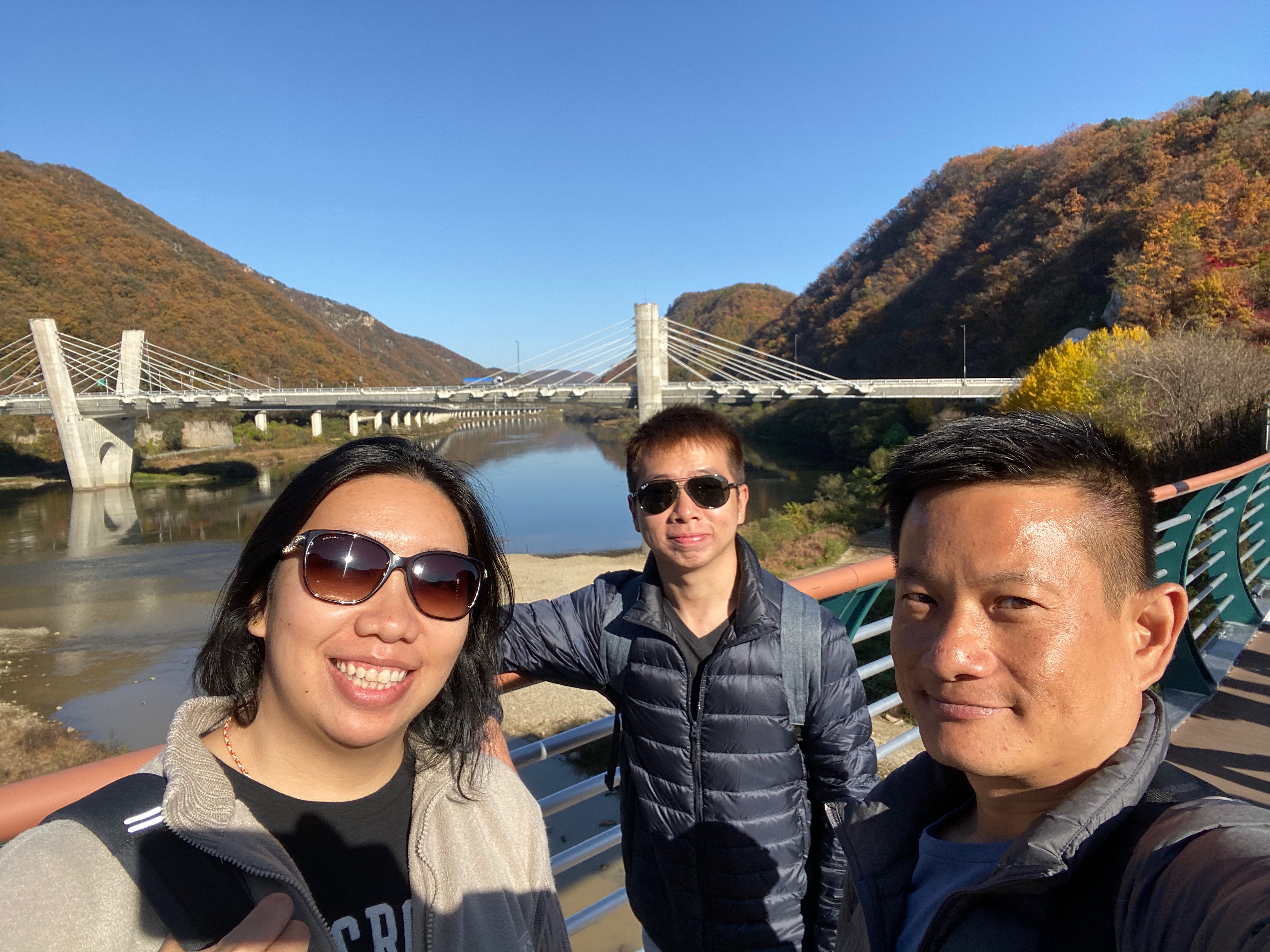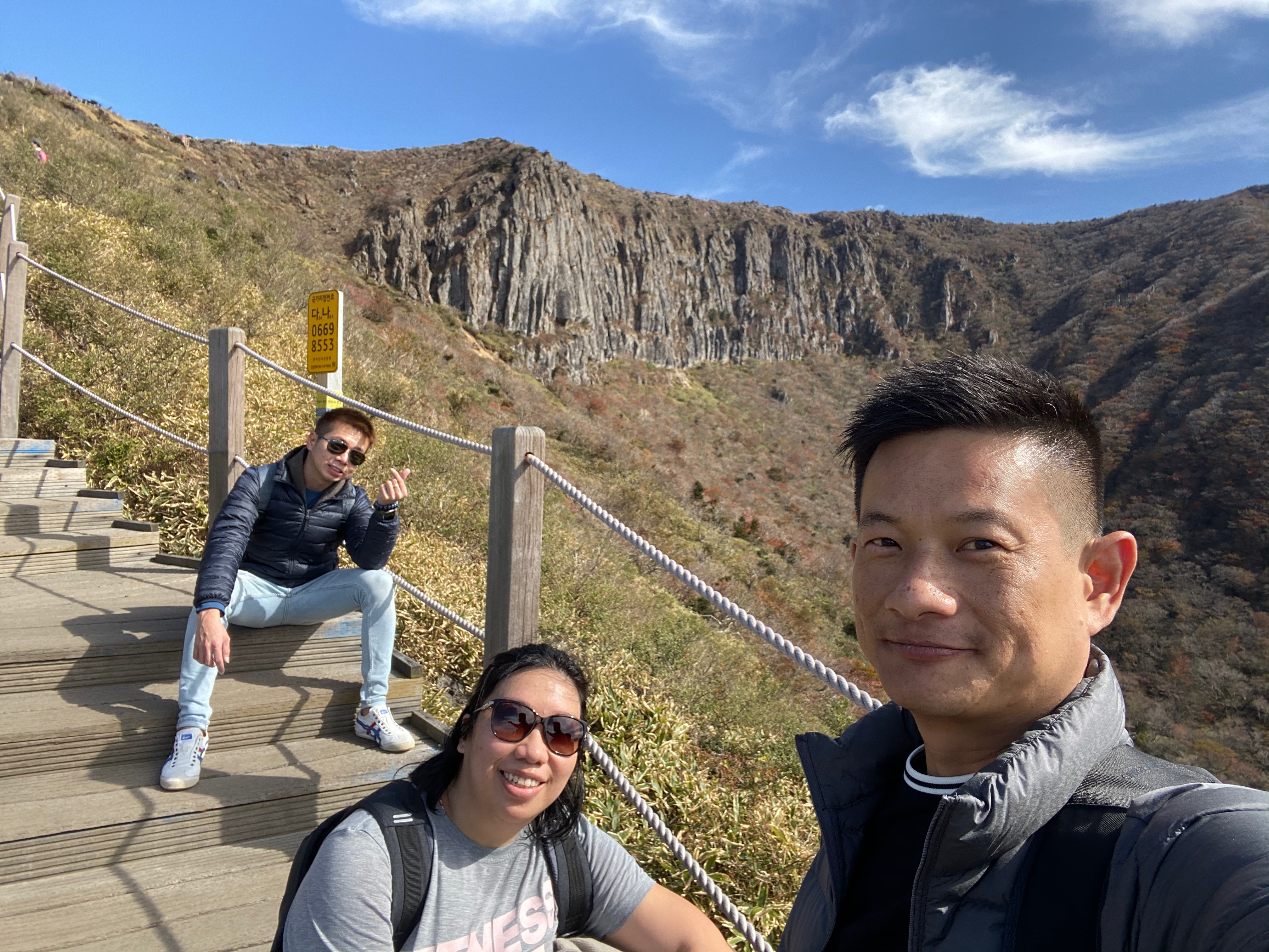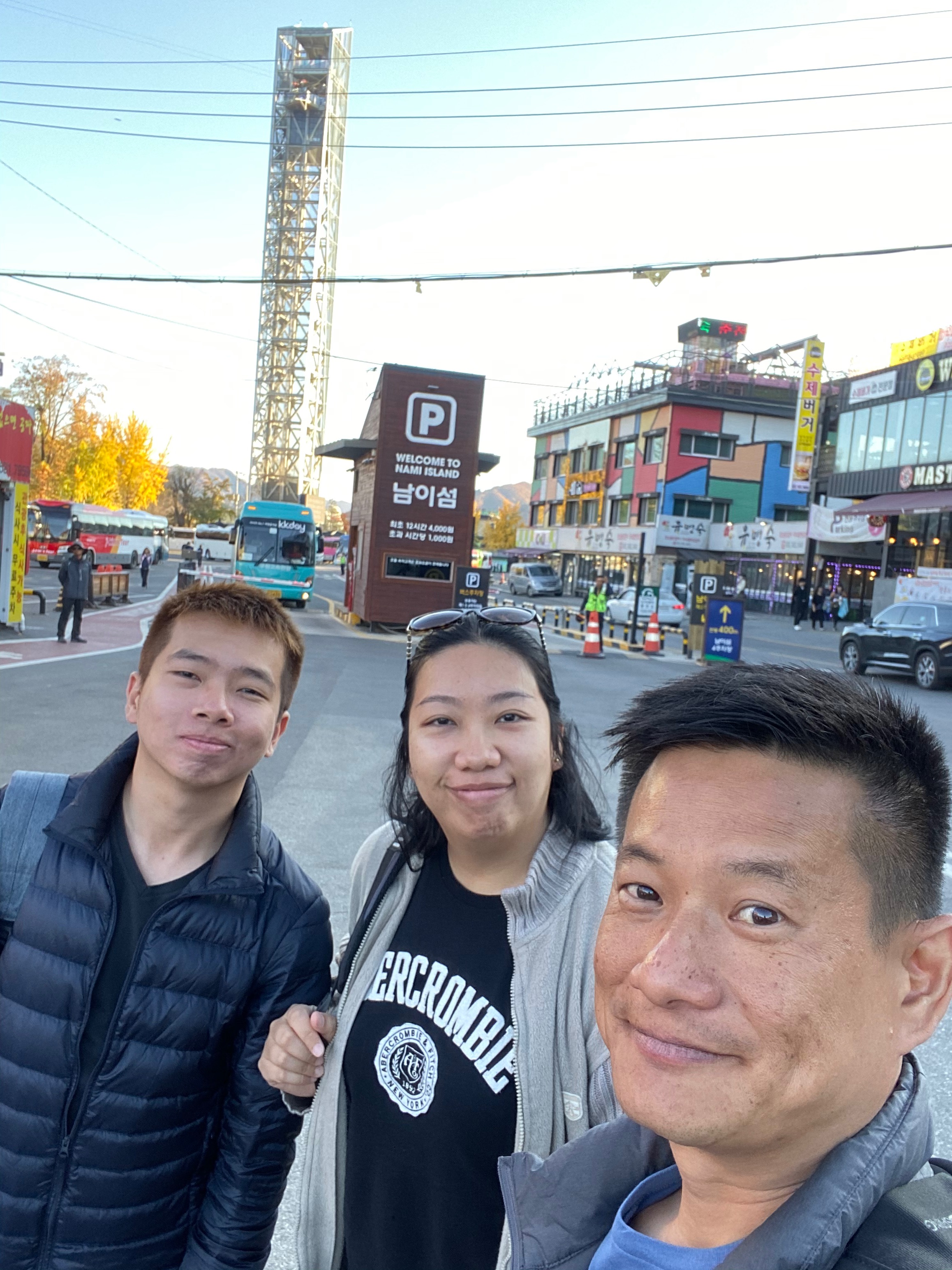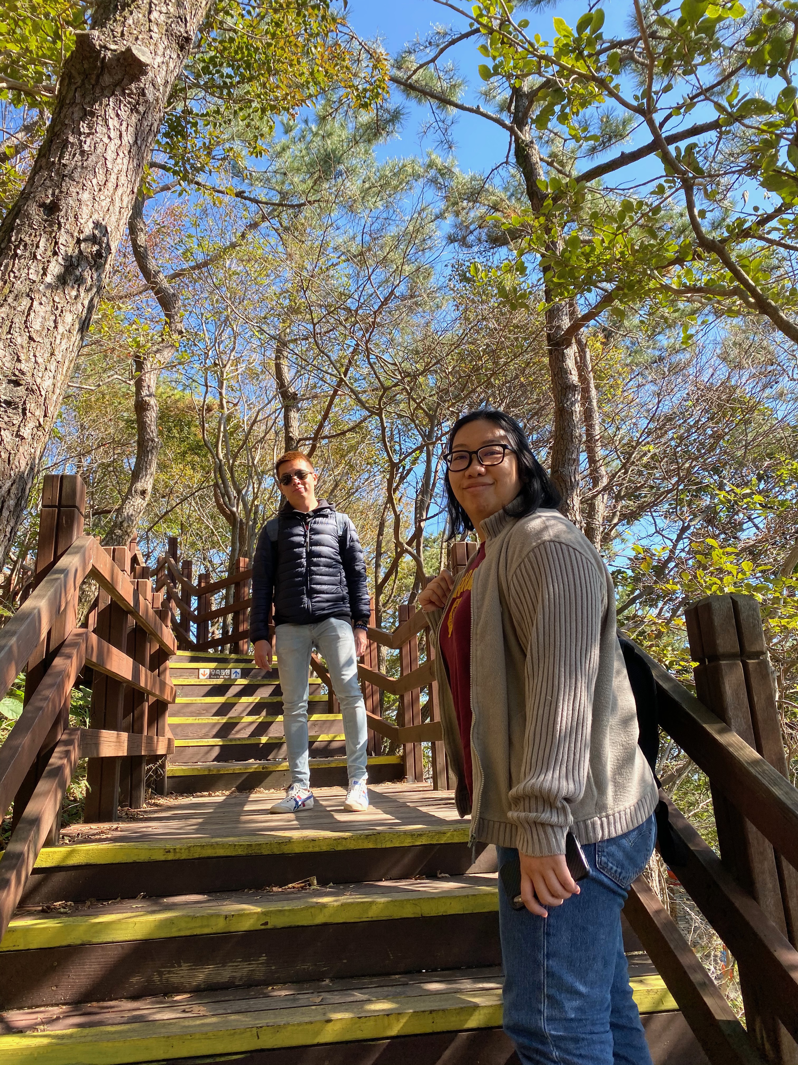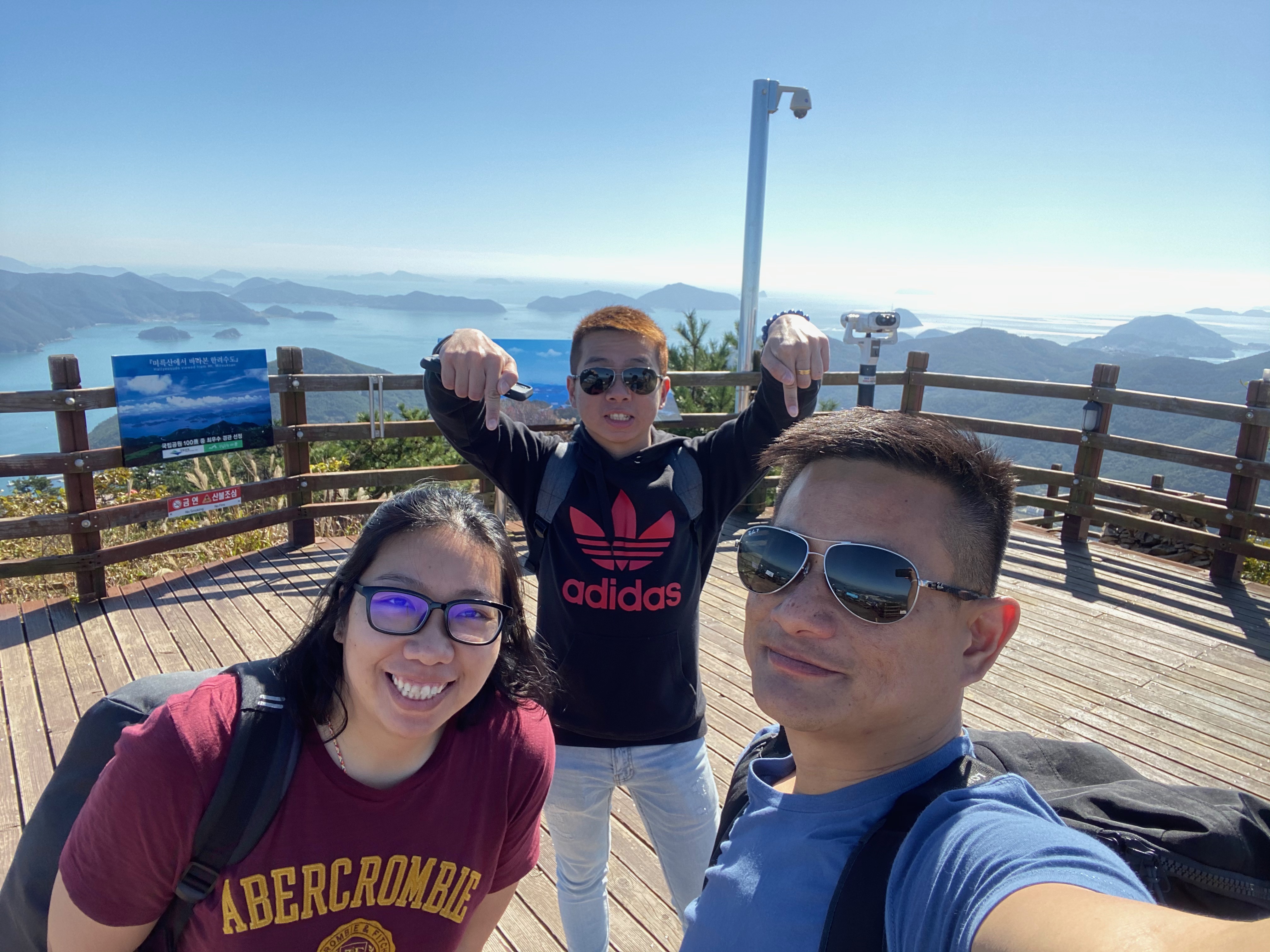 Taking a wefie in the pavilion with Hwaseomun in the background