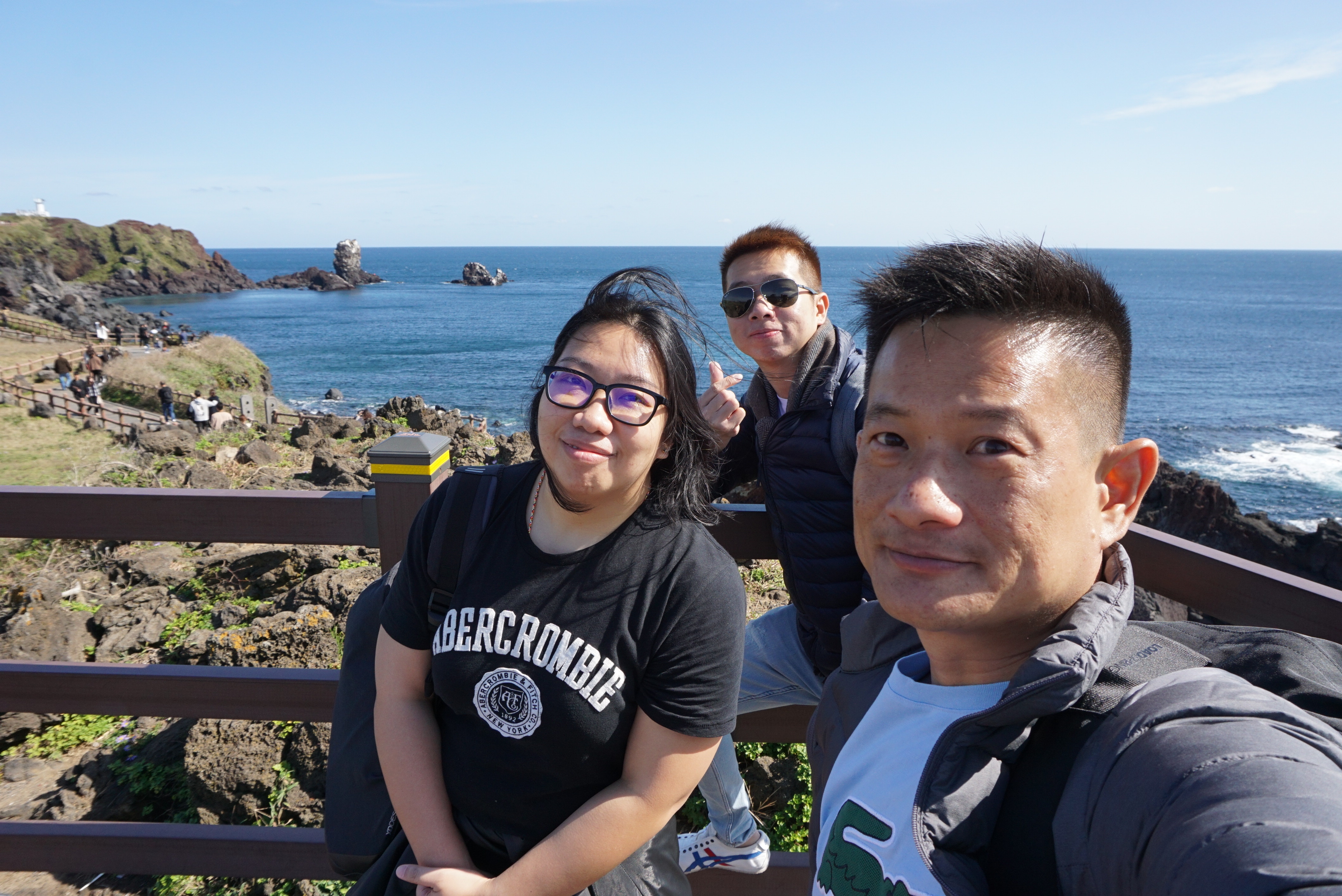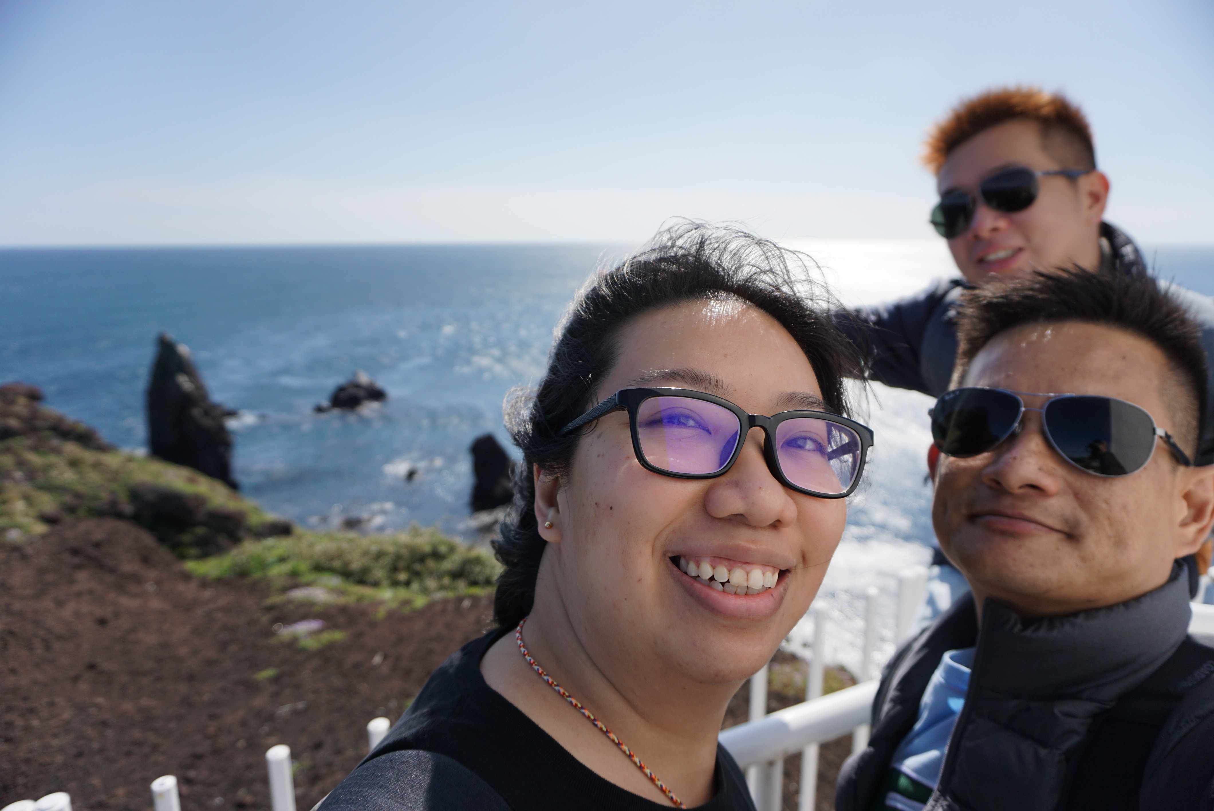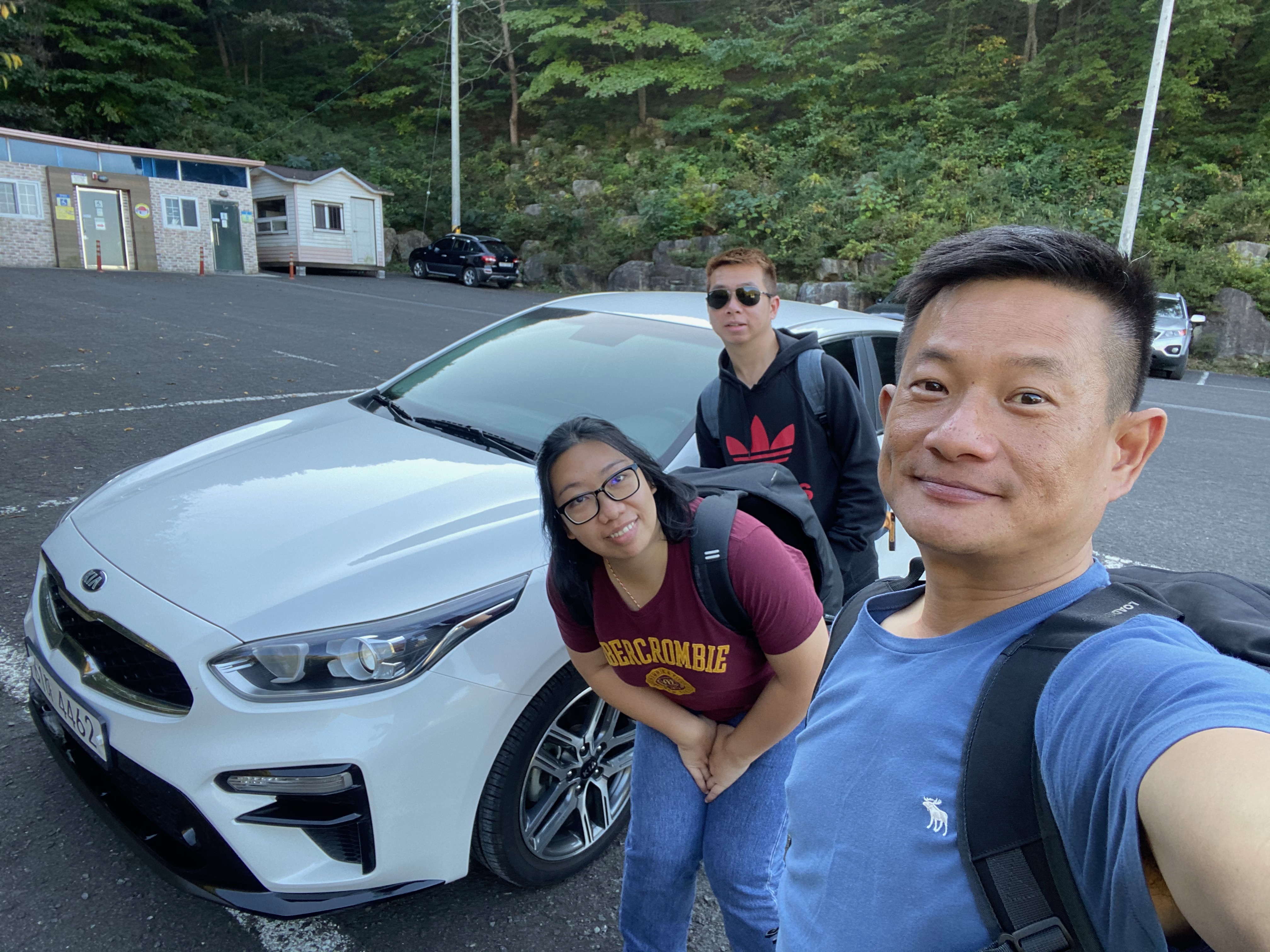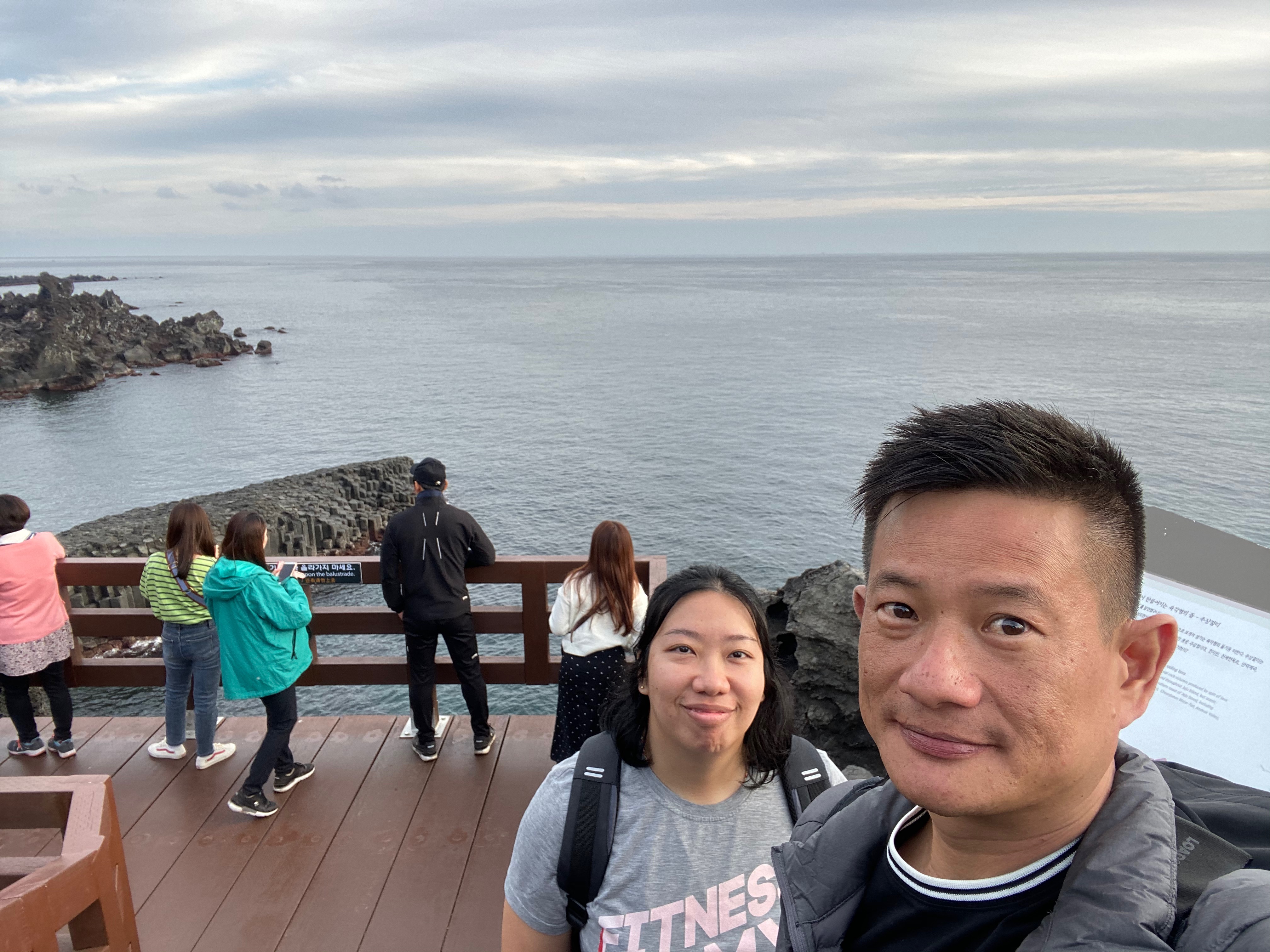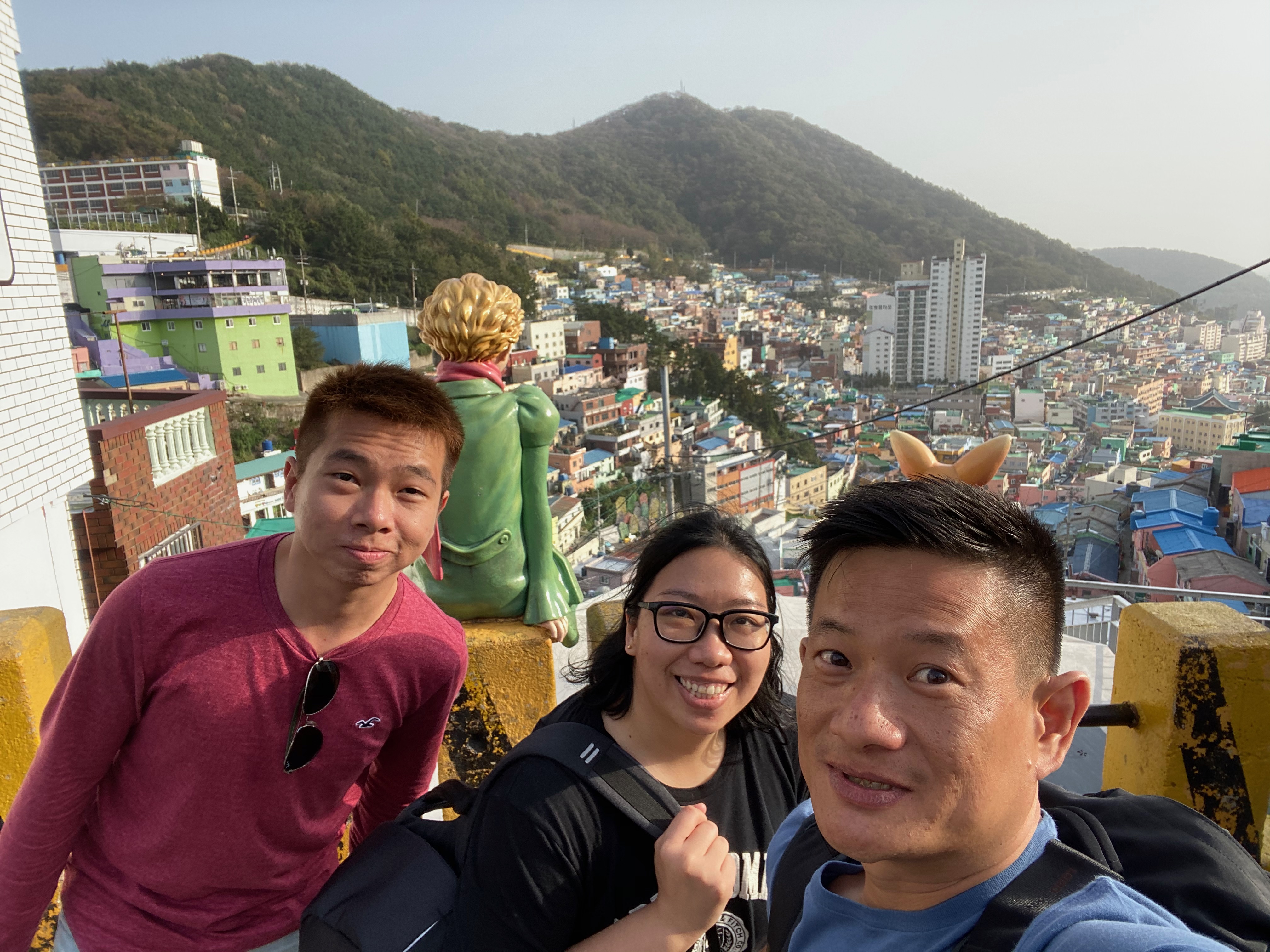 Taking a wefie in the pavilion with Hwaseomun in the background