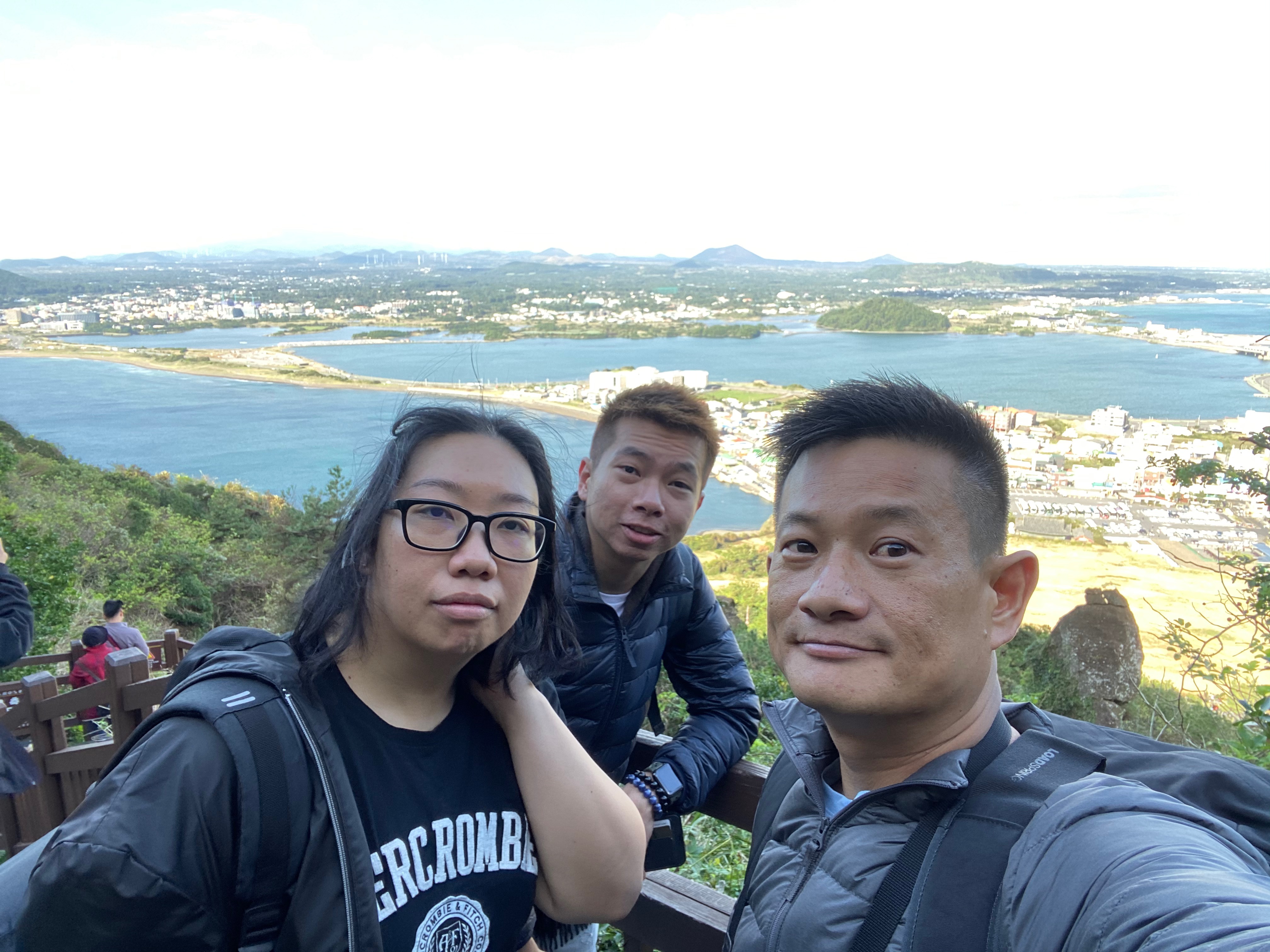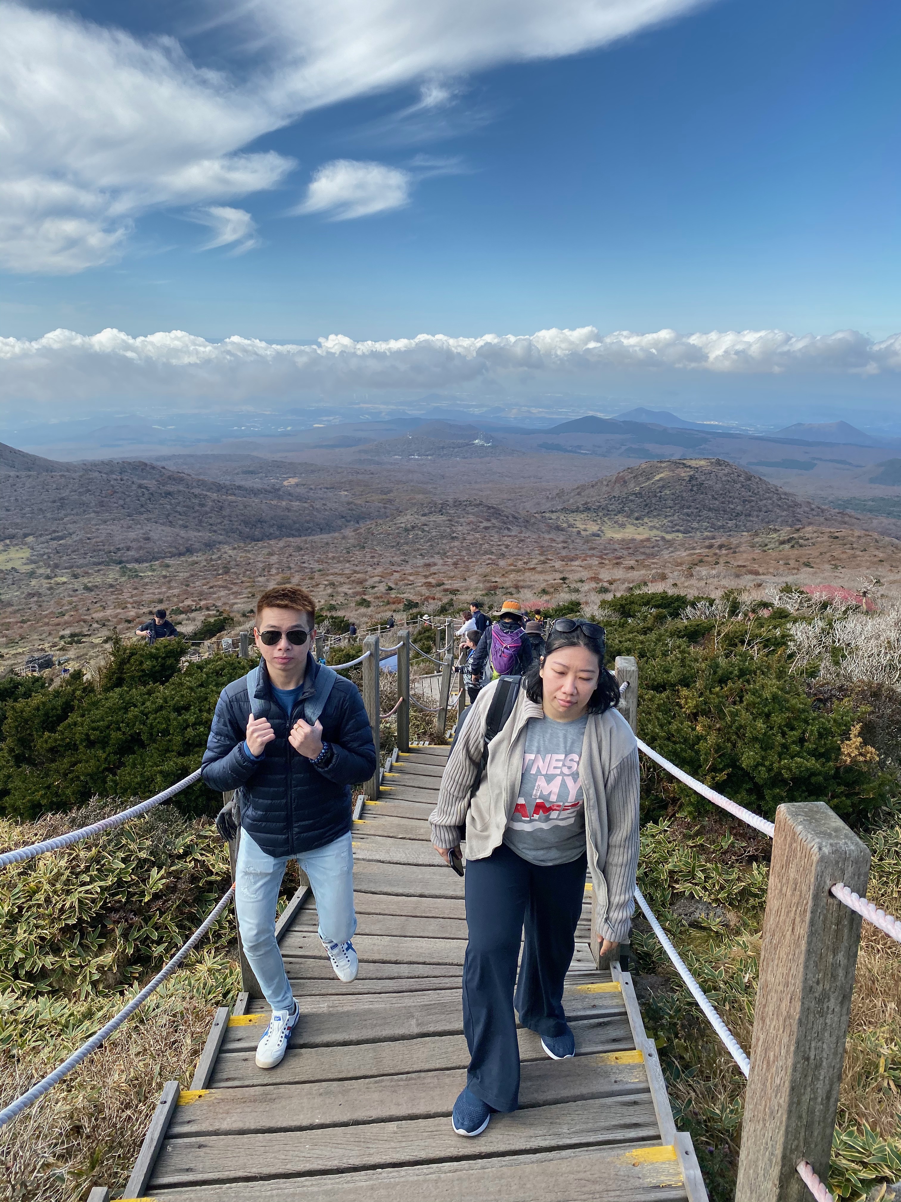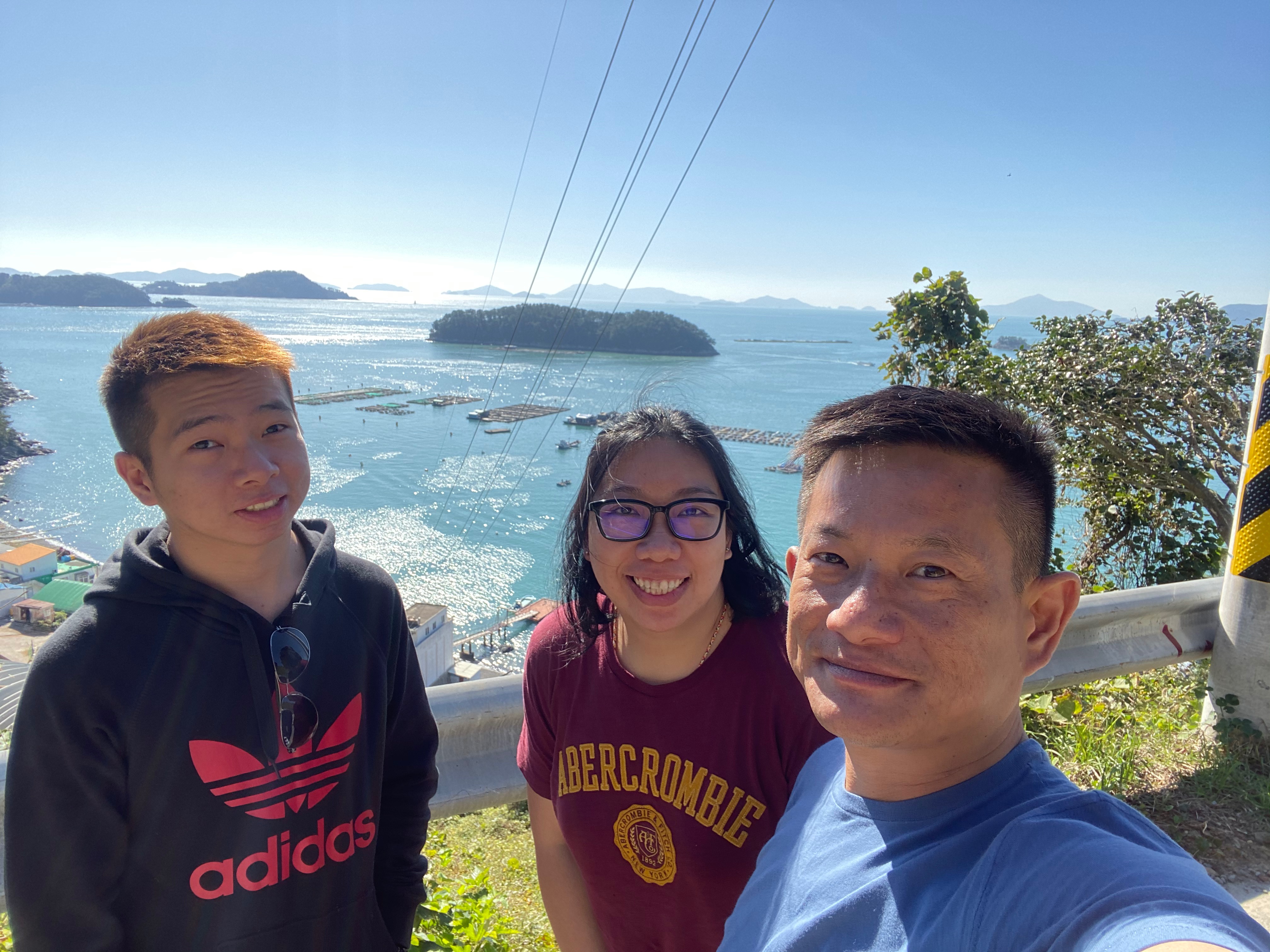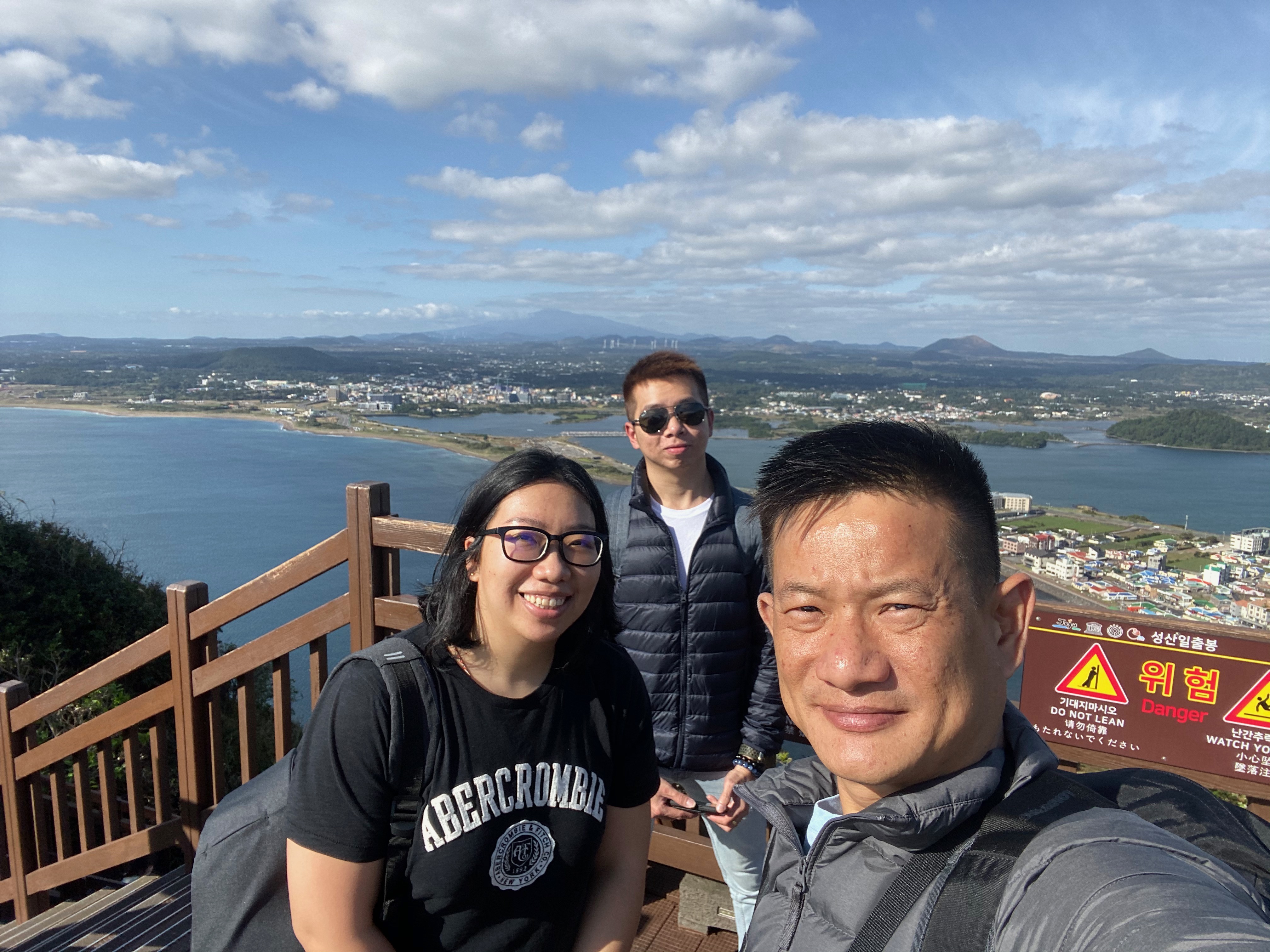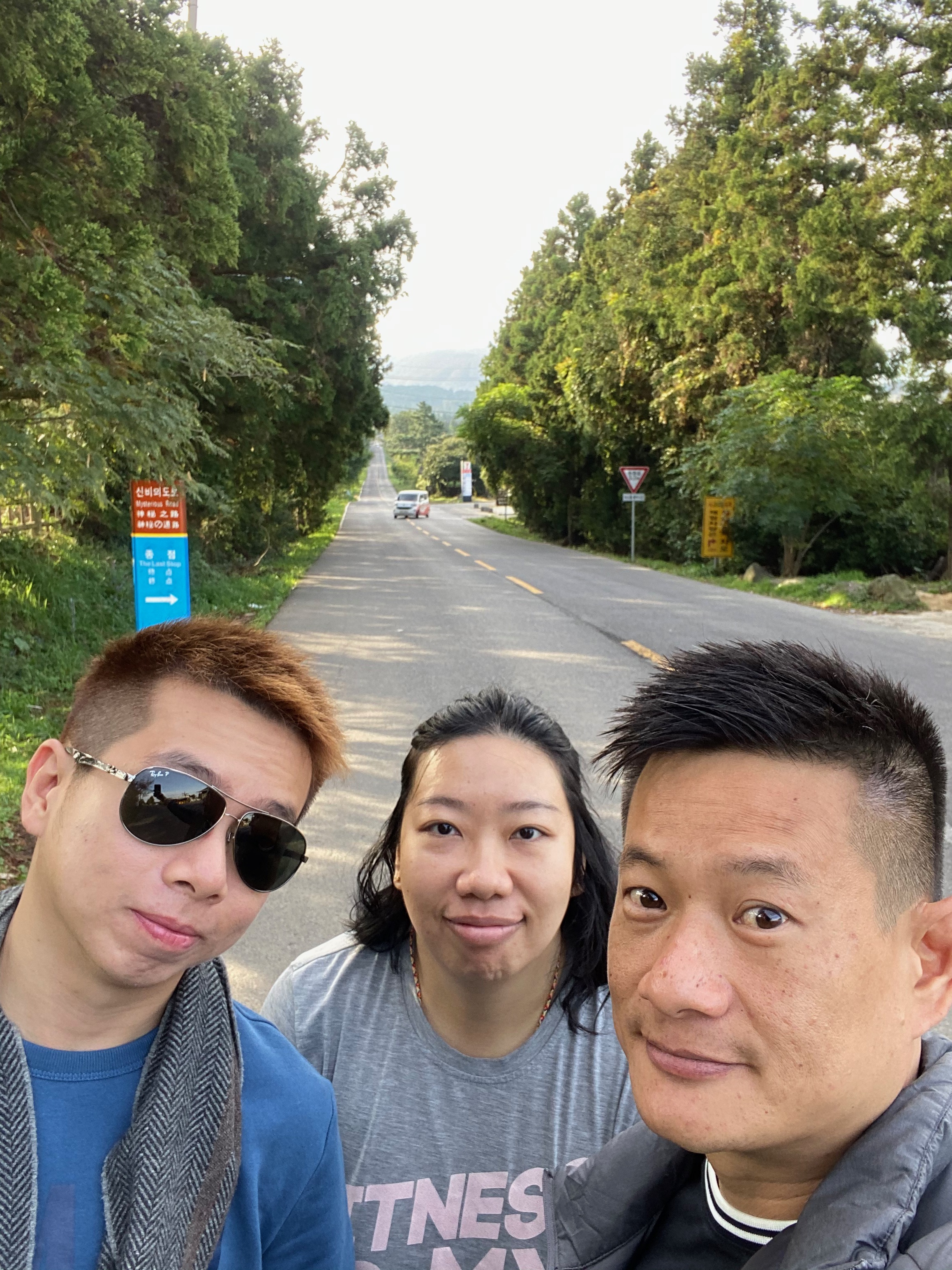 Taking a wefie in the pavilion with Hwaseomun in the background