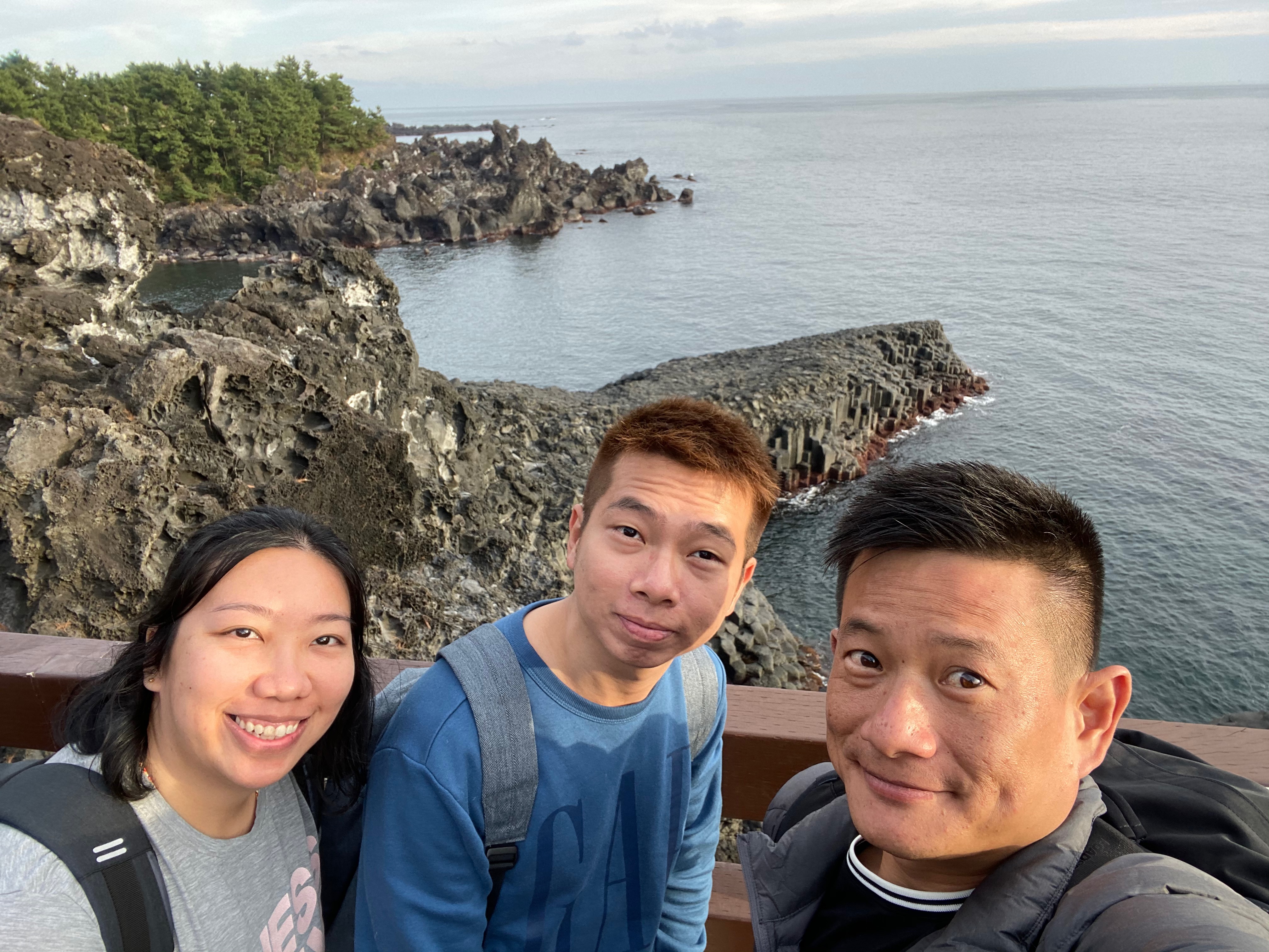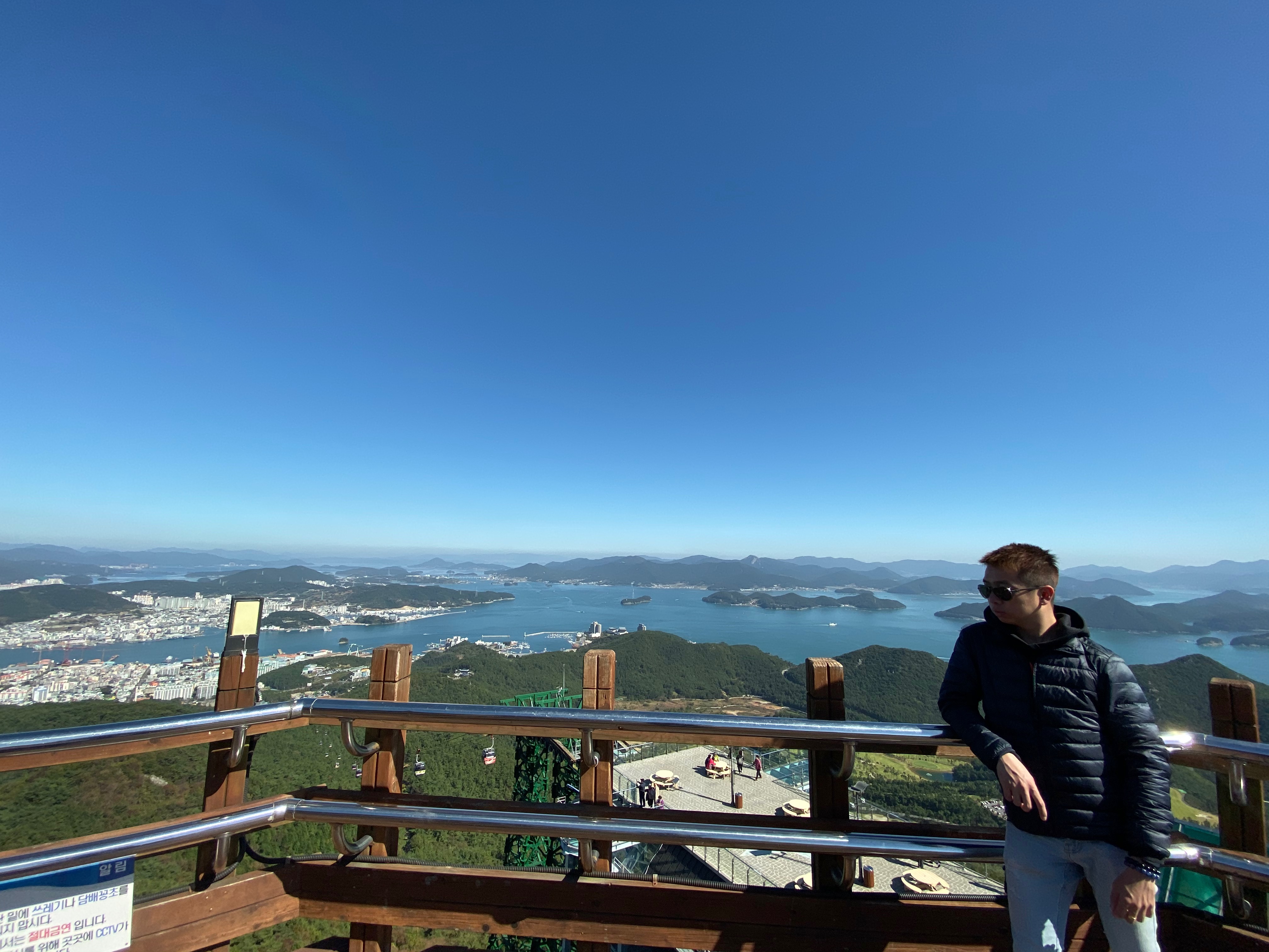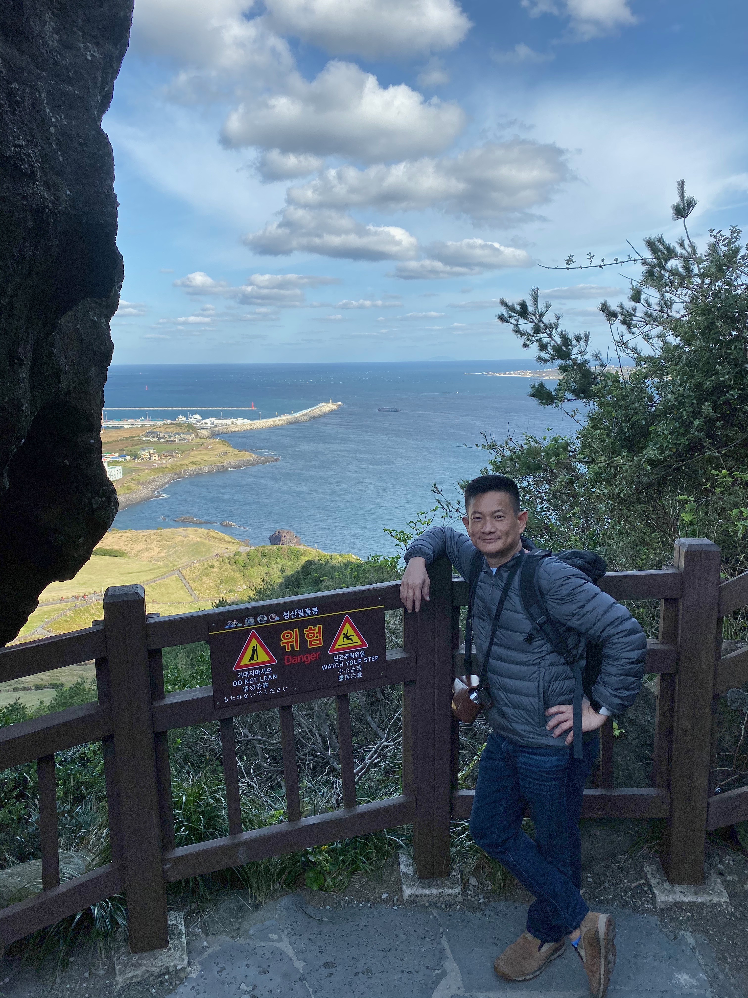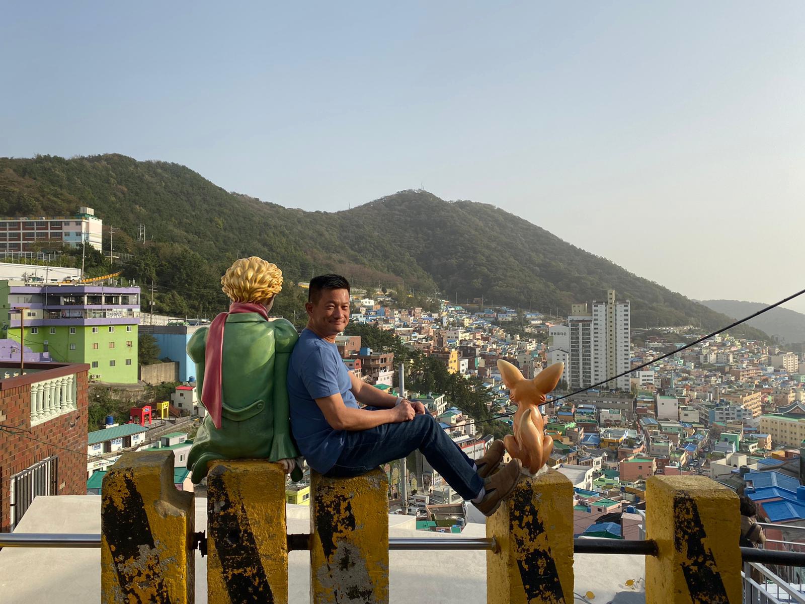 Taking a wefie in the pavilion with Hwaseomun in the background